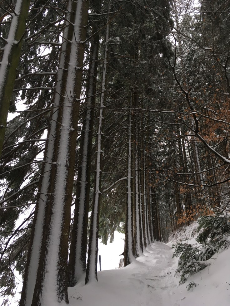 Last weekend in Munich was fairly grey and I longed for real winter so I googled “winter hike” and off we drove to Hausham! I don’t think we actually walked the exact route I found but it was nevertheless fantastic and I got what I wanted: a true Winter Wonderland at Huberspitz – quite a steep little hike to get there! But a pleasant walk down – I only wish we had sleigh – that’s the only thing that was missing 🙂