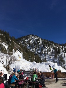 This time we found the starting point to hike Trainsjoch but upon getting to Mariandlalm, it turned out that you need to have snowshoes to go further… Oh well, too bad! Time for Weißbier and Kasspressknödel 😋