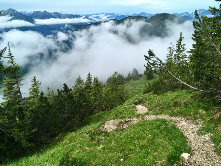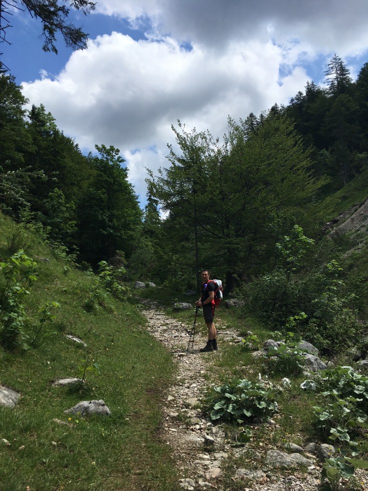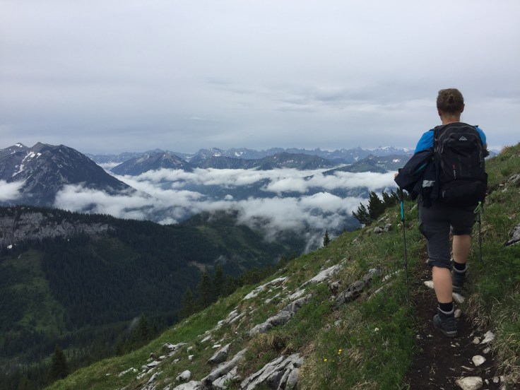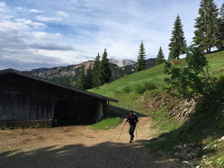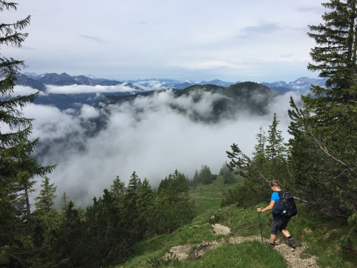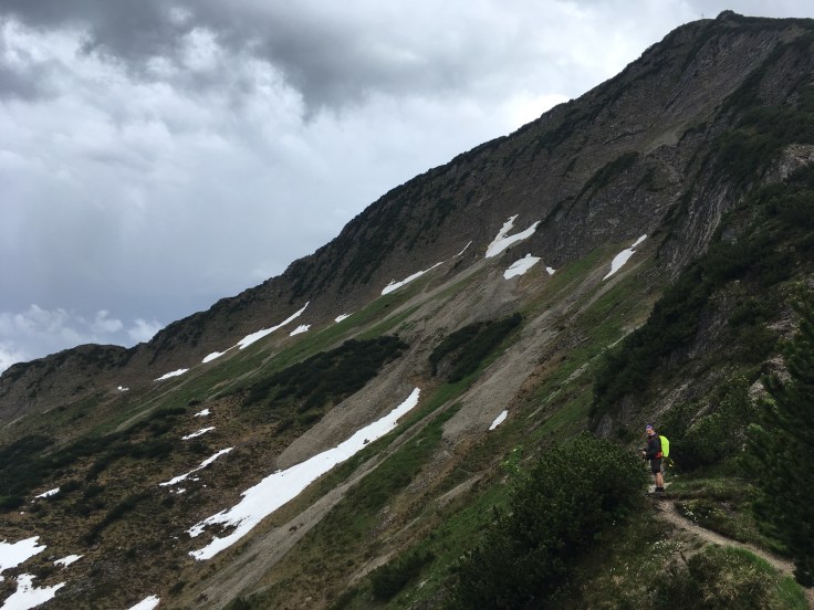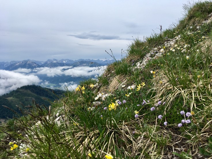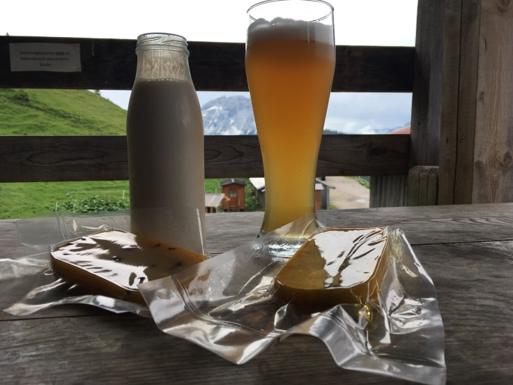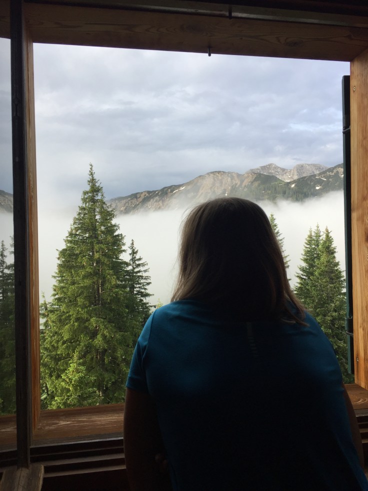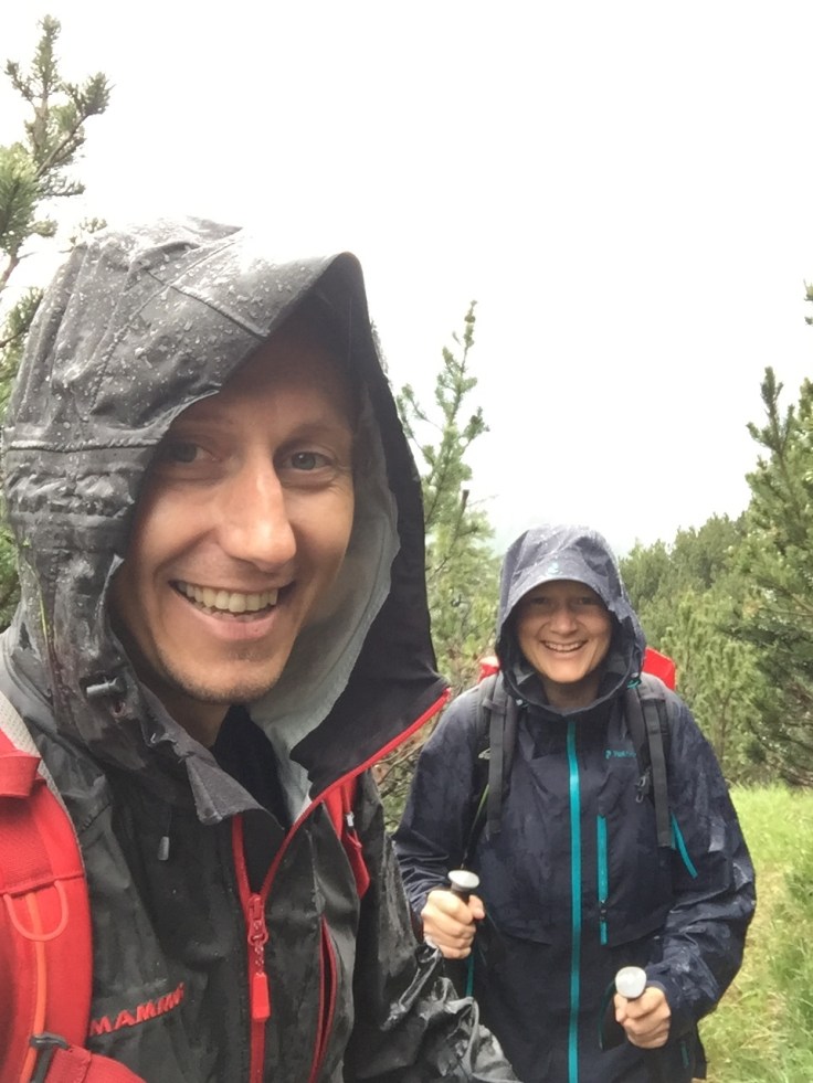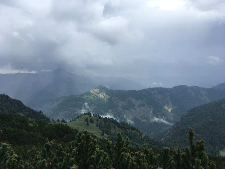 W ramach atrakcji: burza w górach (pierwsza przeczekana w kucki w kosodrzewinie, druga złapała nas w lesie, jak szukaliśmy zagubionej sciezynki do huty), pierwsze spanie w hucie (o 3 w nocy zajrzal nam do pokoju jakiś typ), piękny mglisty poranek, przejście granią do BlaubergAlm (piwo, sery i maślanka!) oraz zejście w Klamm i butowanie wzdłuż drogi do parkingu.
