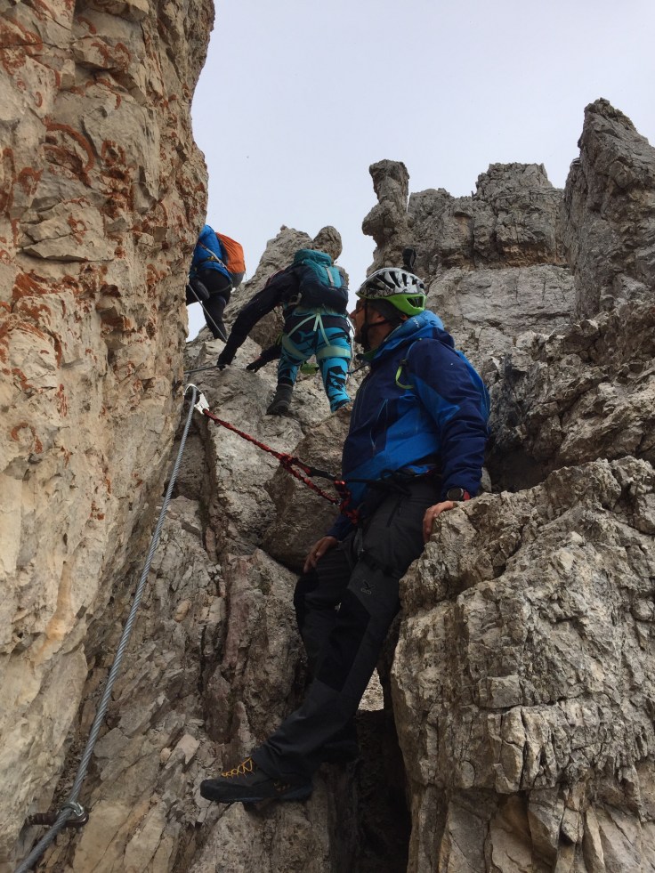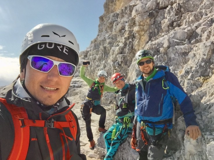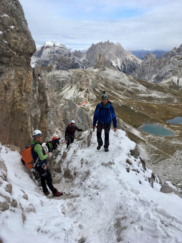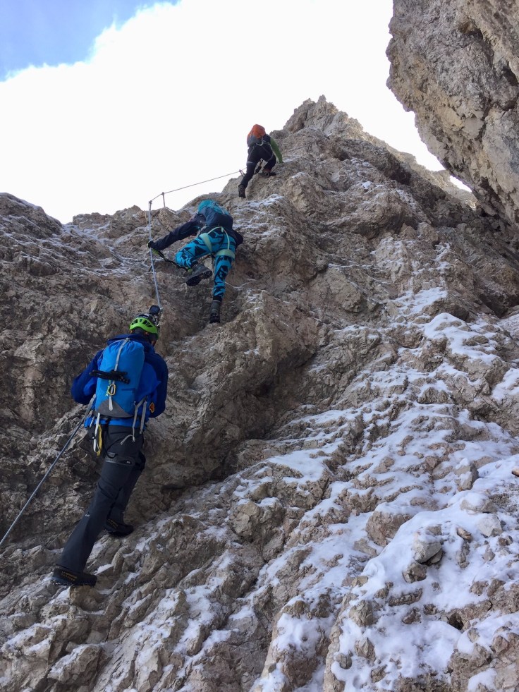Dzień 2: Paternkofel KS, razem z Marysią i Łukaszem. Przetrasa! Nieco oblodzona, ale z takimi towarzyszami nie było stracha 🙂 Widoki zapierają dech, po prostu. Słów brak – mimo tego, że 3 cyny takie opatrzone, to mnie ten widok nigdy się nie znudzi. Sama ferrata też super – i technicznie (w połączeniu z tunelami!) i widokowo. Zatoczyliśmy dłuższa rundę, planując dojść do Büllelejoch Hütte, ale zabrakło czasu i zeszliśmy skrótem – w śnieżycy! Zdążyliśmy w sam raz na powrotny autobus, gdzie wreszcie zrobiło się rozkosznie ciepło ☺️
