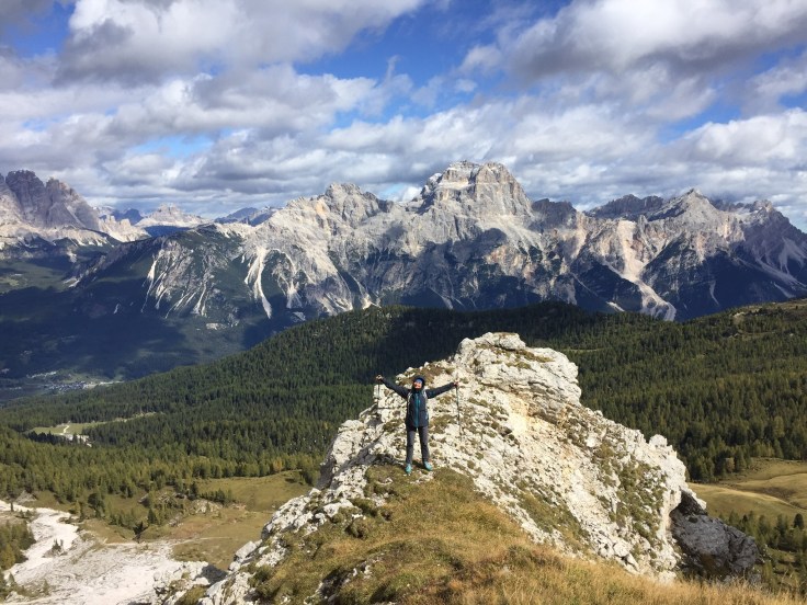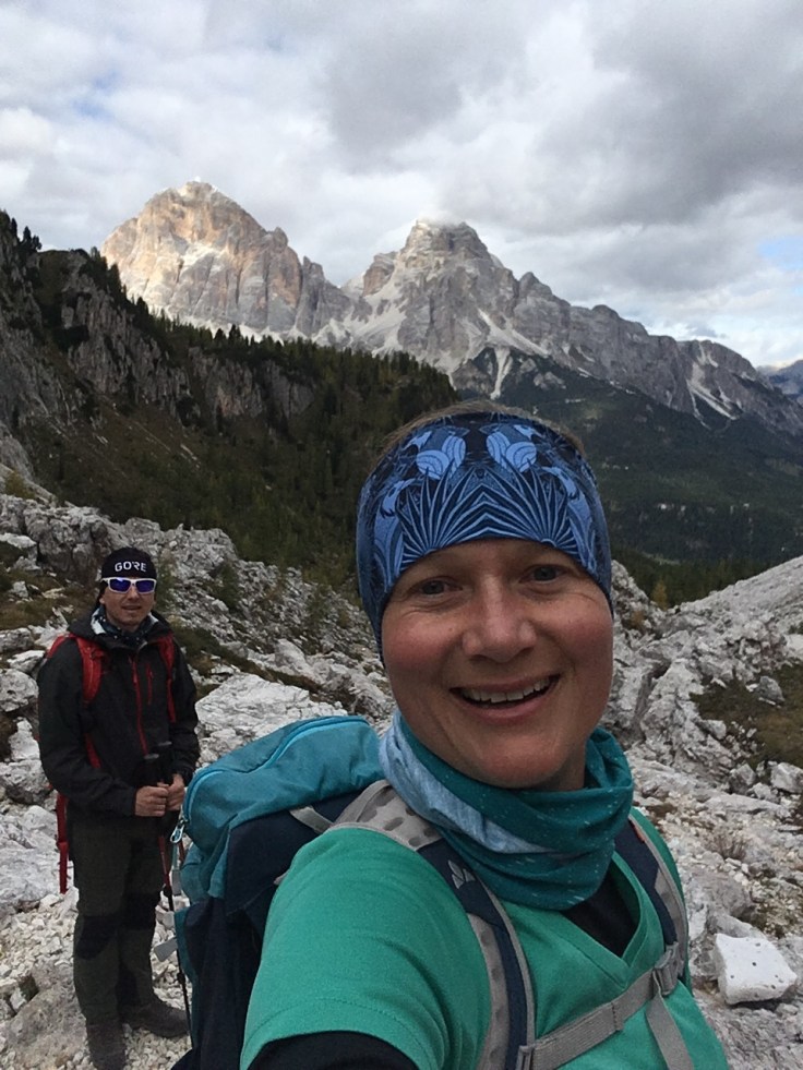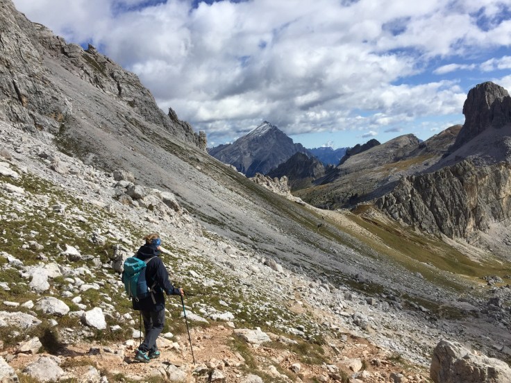 Dzień 3: Croda da Lago, piękna pętla 13km, z przepysznym obiadem w rifugio. Tylko 800hm, więc w sumie odpoczynek po wcześniejszym dniu. Mocno wiało na przełęczy, ale za to piękne obłoki do zdjęć przywiało!