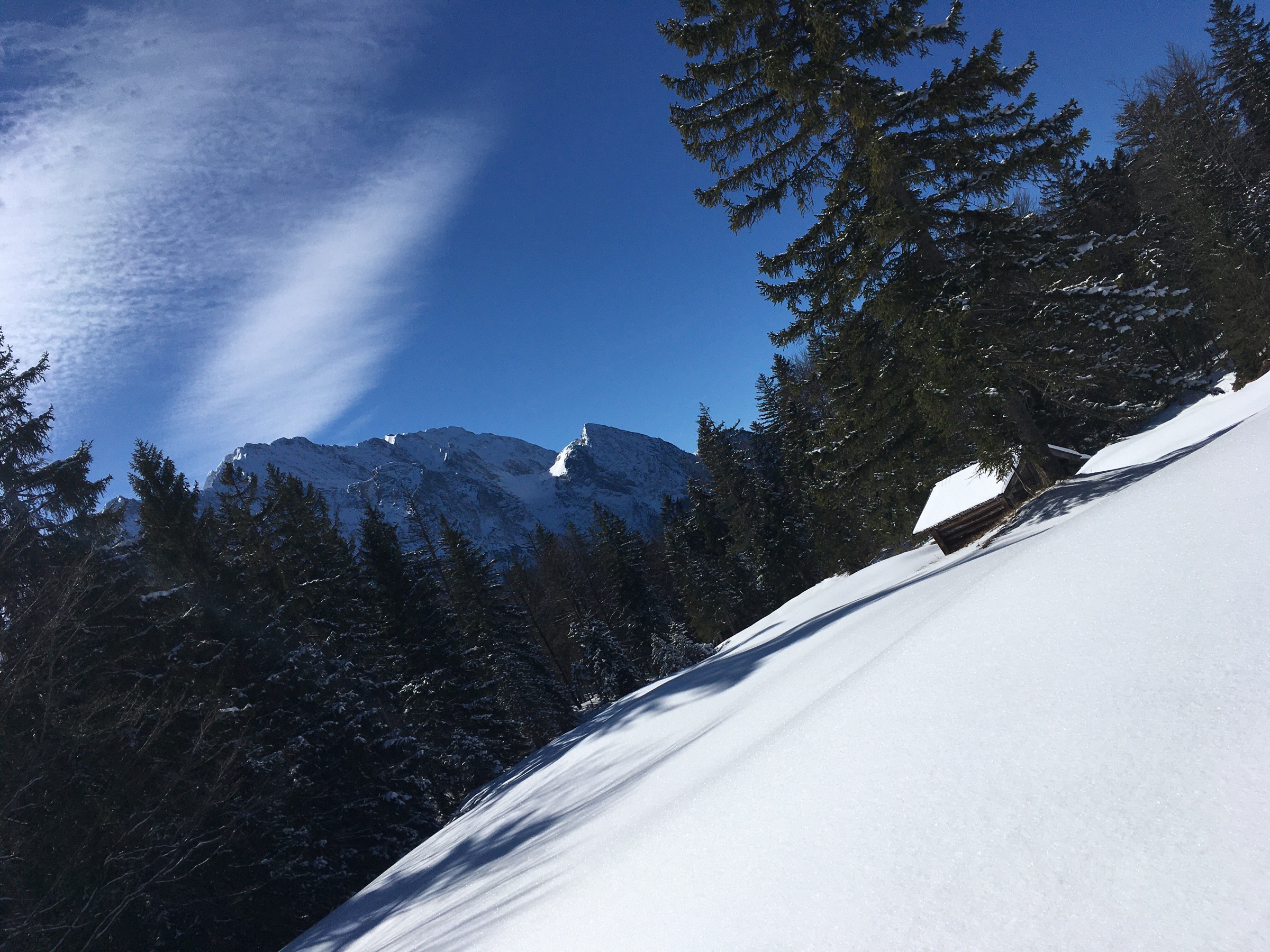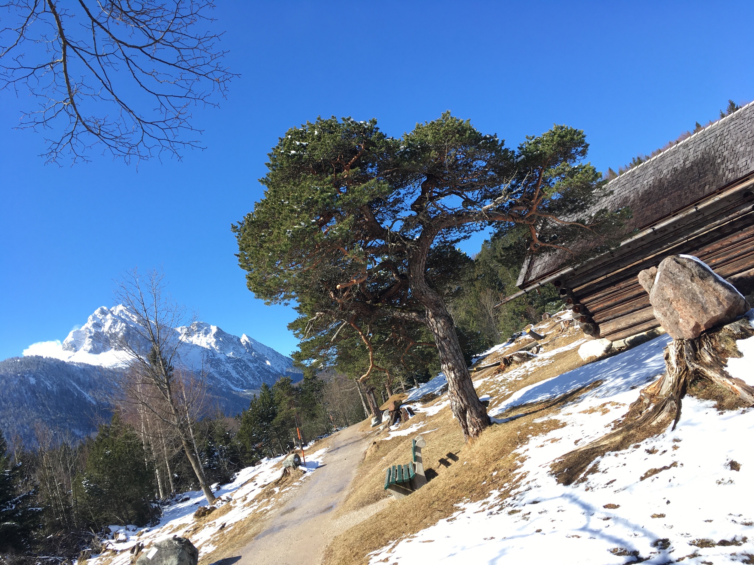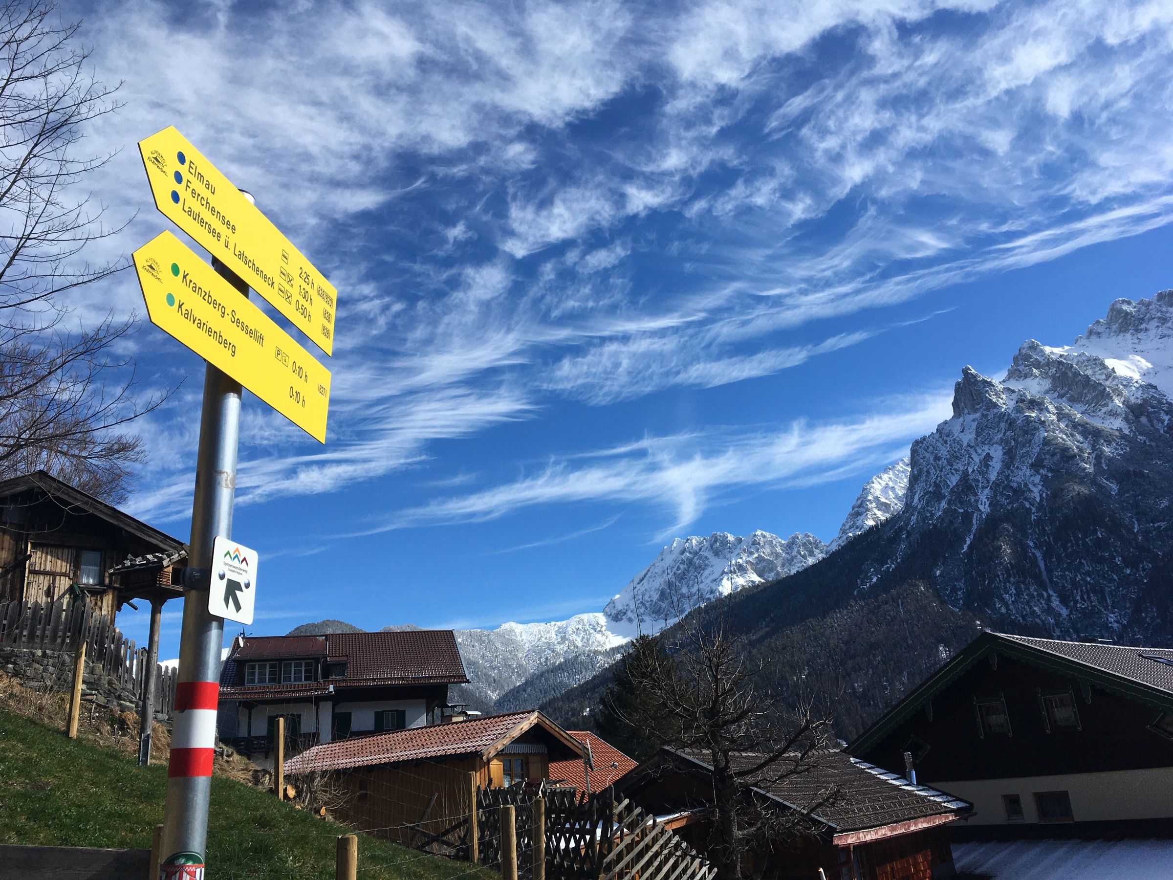 Sunday was forecasted to be a beautiful day – and it turned out to be just that! We drove to Mittenwald – never went there before because usually driving thru GaPa takes ages so we stop before. But, this time: no traffic! We stopped below KranzbergBahn and went: Mittenwald-Lautersee-Kranzberg-Korbinianhütte-Mittenwald. 9km round, 500m ascent, very few people – perfect Sunday walk 😍