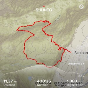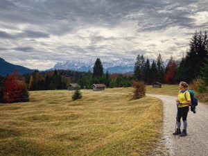 Plany były dużo ambitniejsze, ale że się pogoda z sb na nd mocny obsunęła, to trzeba było modyfikować. I padło na małą szybką górkę, co ją mam w odwodzie w razie w: Schafkopf! Jedyne 2h i ładny widok na Zugspitze i resztę. A po drodze w dół z Giessenbachsattel gdzieś przegapiłyśmy ścieżkę i wylądowałysmy na pięknej fotogenicznej polance. Trza będzie tam wrócić z M. i rowerami i wybrać się na Brünnstelskopf – dziś odpuściłyśmy, coby zdążyć przed deszczem – i wyszło idealnie!