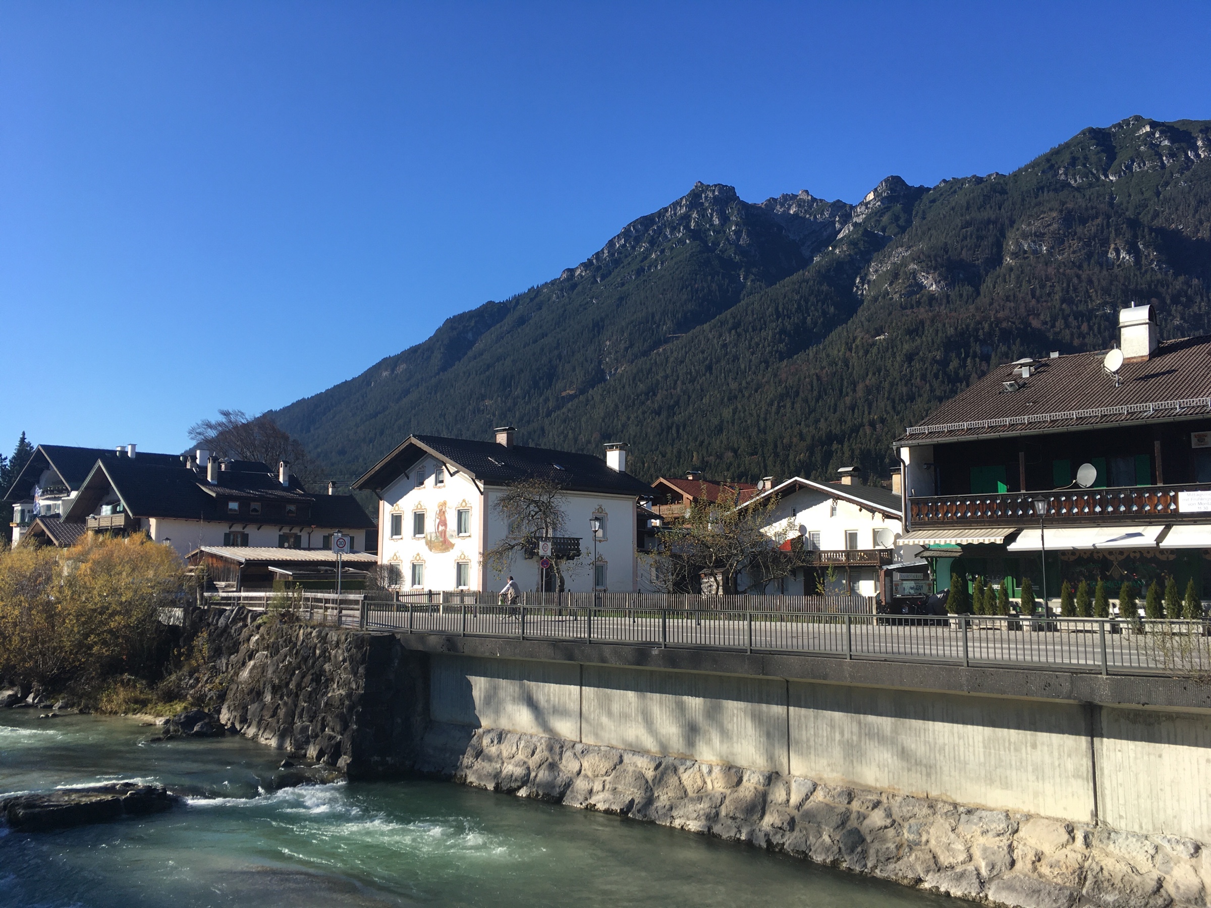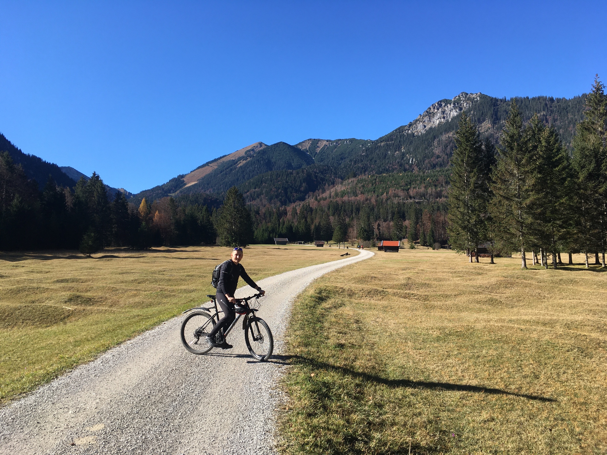 Dalsze plany trasy pokrzyżował mi fakt, że po Kramer Plateau jeżdżenie rowerem zabronione! Więc, zjechaliśmy do GaPa i stamtąd śliczną dróżką wzdłuż Loisach (piknik!) z powrotem w pośpiechu – gdyż wieczorem do Kubów 😉