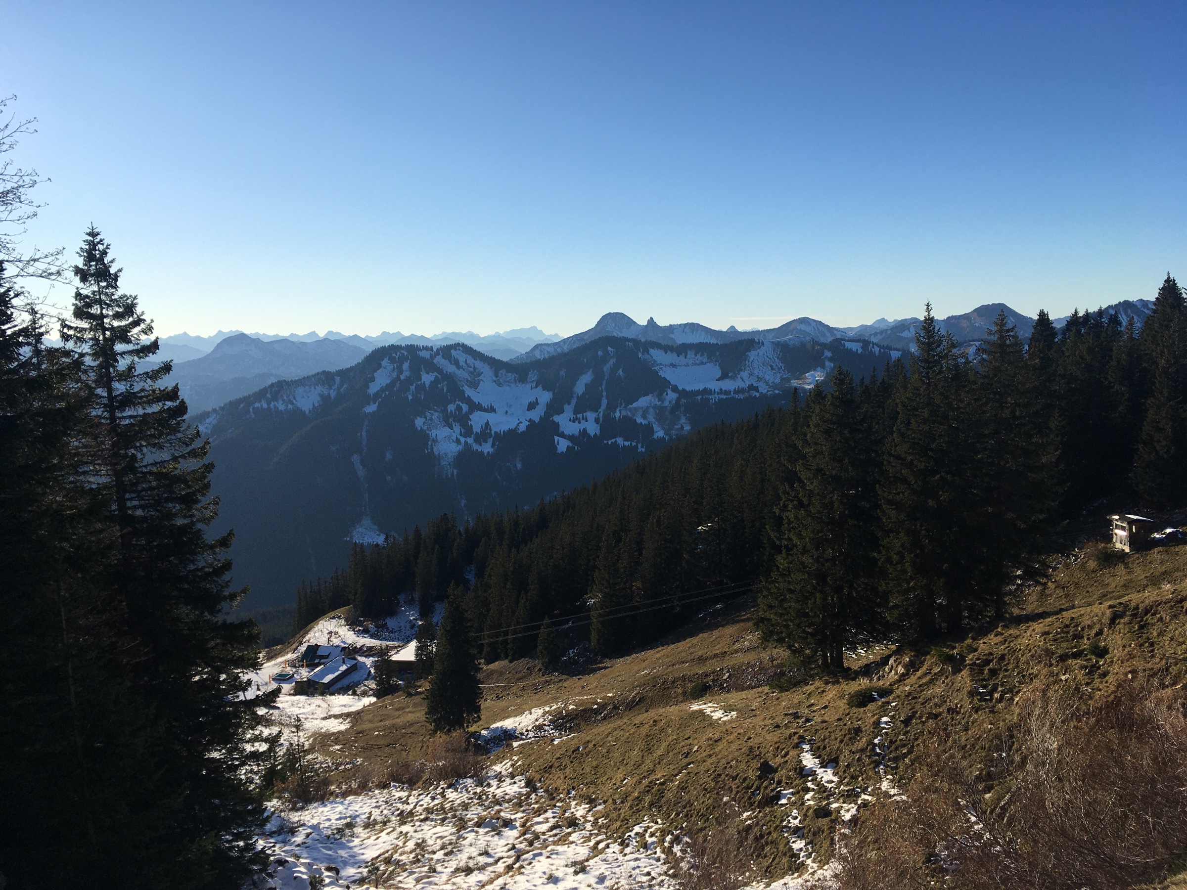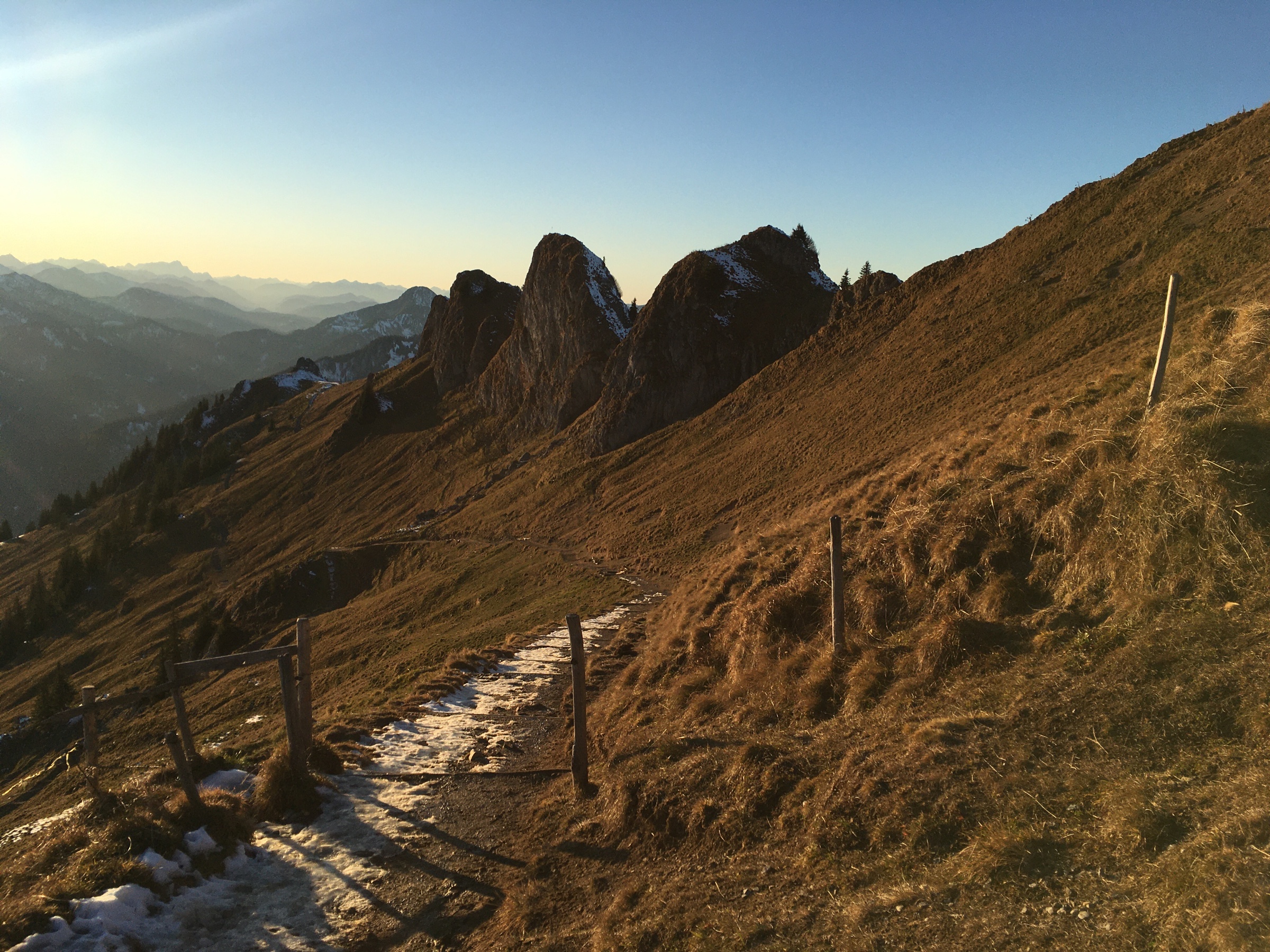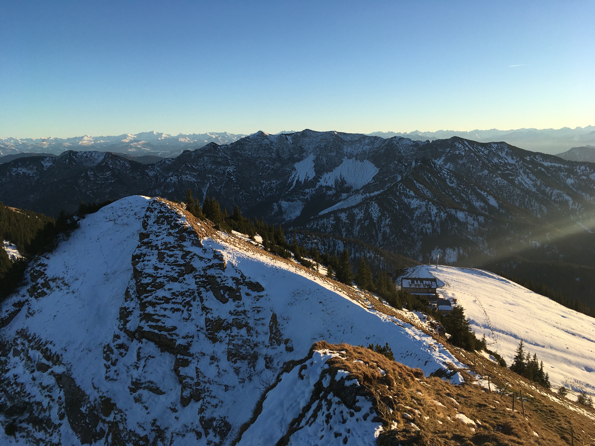 Achhhh, wolny piątunio! a listopadowa pogoda w górach, jak marzenie, zatem wreszcie idziemy na zachód słońca. Coby nie kombinować na powrocie, wybieram Rotwand, bo stamtąd łatwy powrót asfaltem – ale na górę ruszamy przez Taubenstein, coby się ponapawać pięknem trochę dłużej. Już prawie się rozsiedliśmy przy Obere Maxlraineralm, bo widok taki, że tylko się czekać na zachód słońca, ale zamknięte było, więc jednak poszliśmy dalej 😉