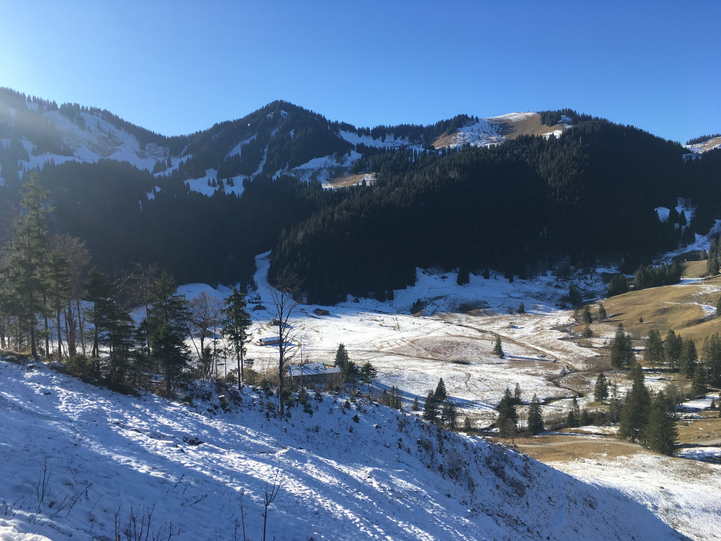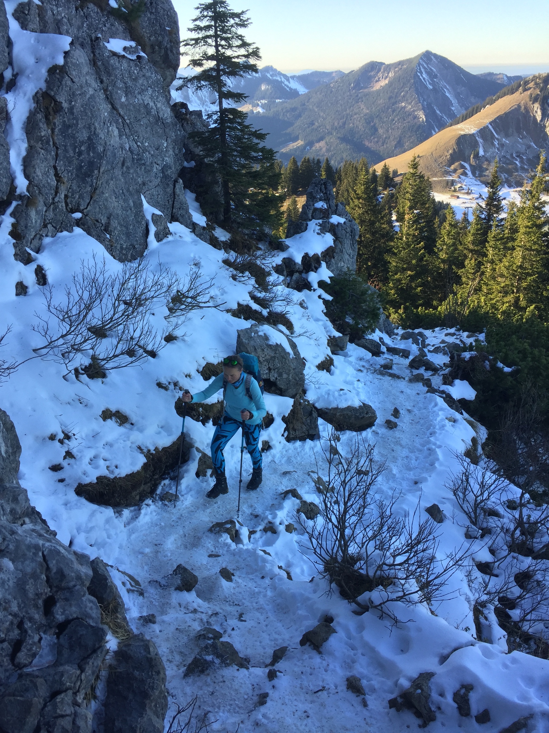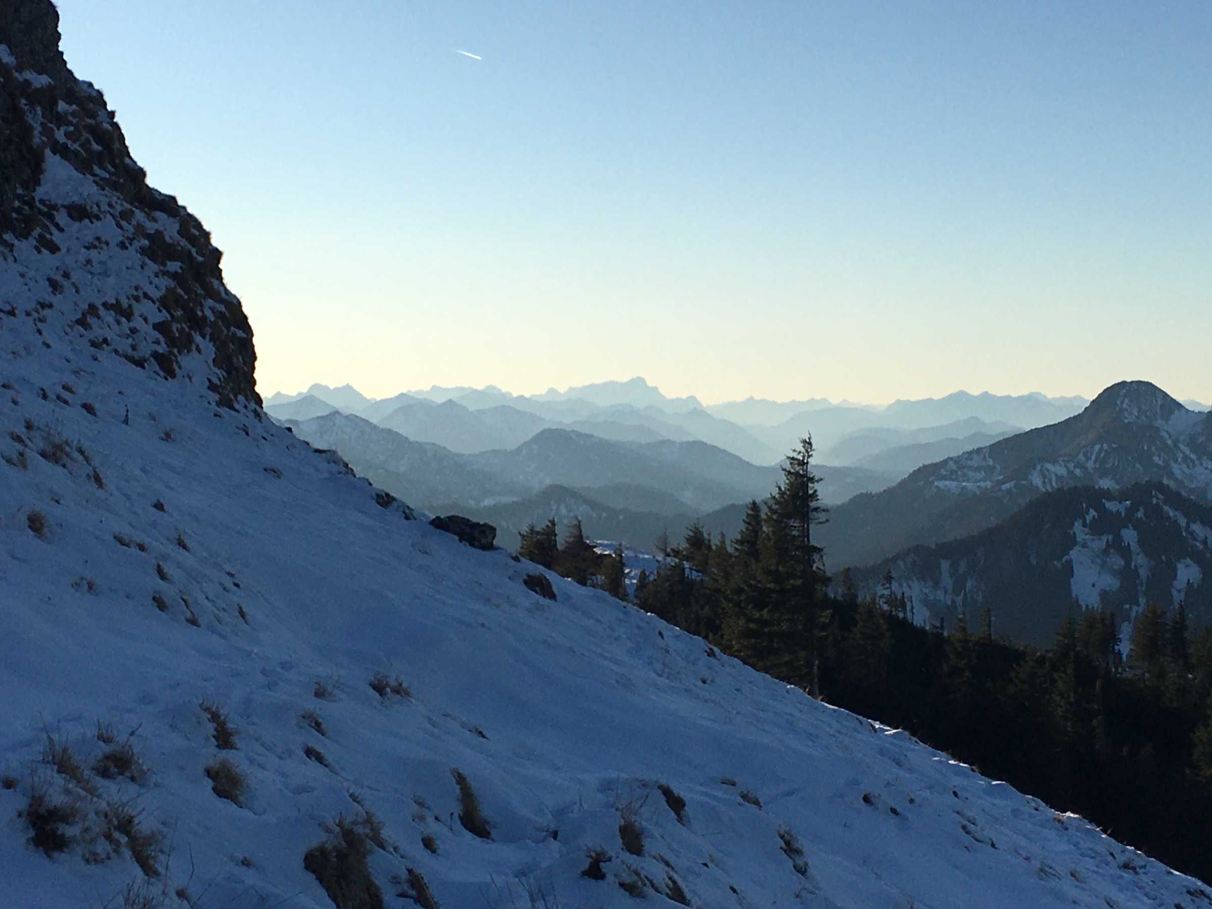 Achhhh, wolny piątunio! a listopadowa pogoda w górach, jak marzenie, zatem wreszcie idziemy na zachód słońca. Coby nie kombinować na powrocie, wybieram Rotwand, bo stamtąd łatwy powrót asfaltem – ale na górę ruszamy przez Taubenstein, coby się ponapawać pięknem trochę dłużej. Już prawie się rozsiedliśmy przy Obere Maxlraineralm, bo widok taki, że tylko się czekać na zachód słońca, ale zamknięte było, więc jednak poszliśmy dalej 😉