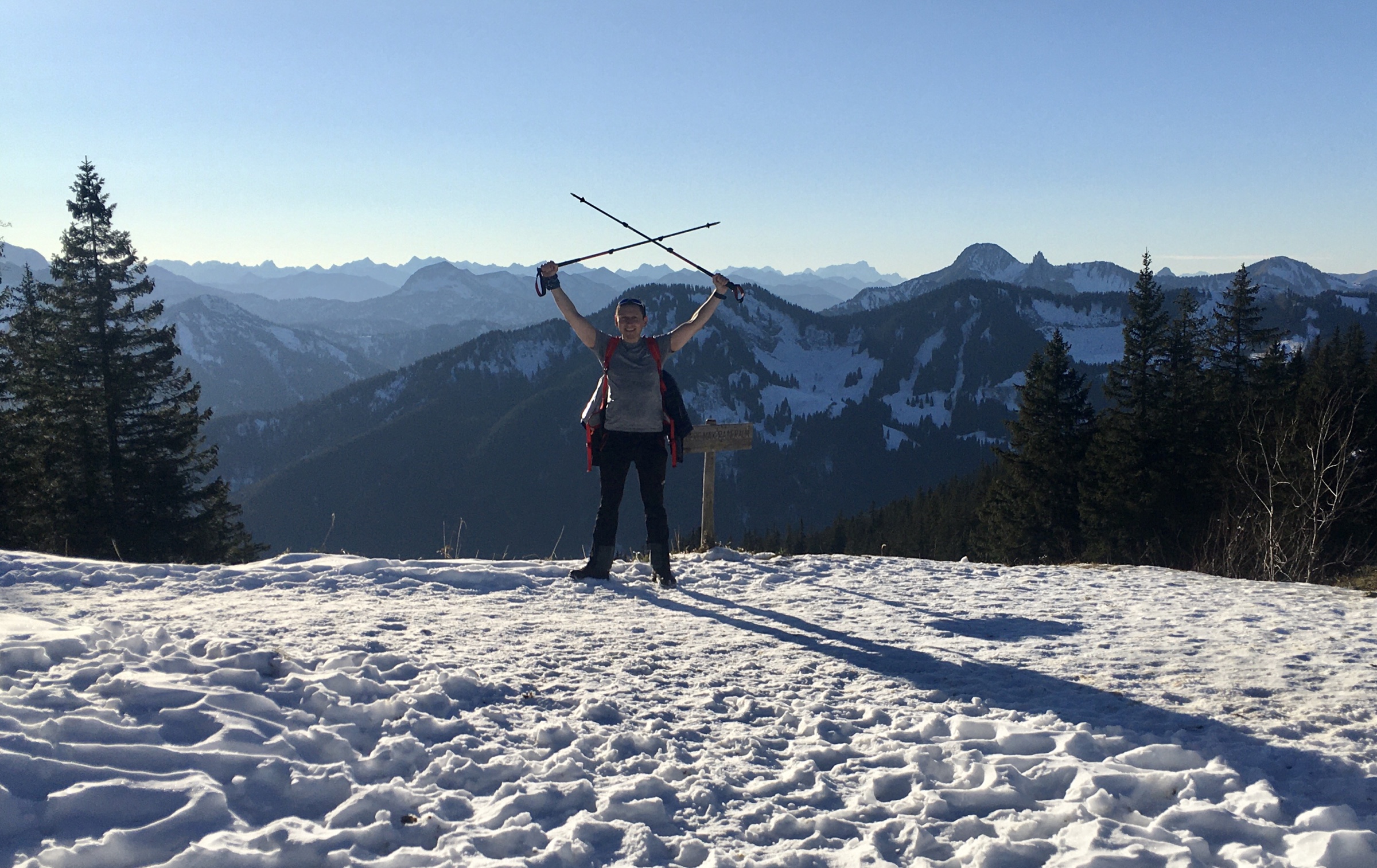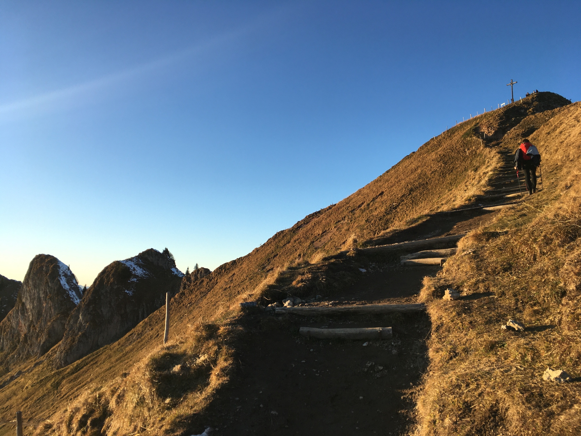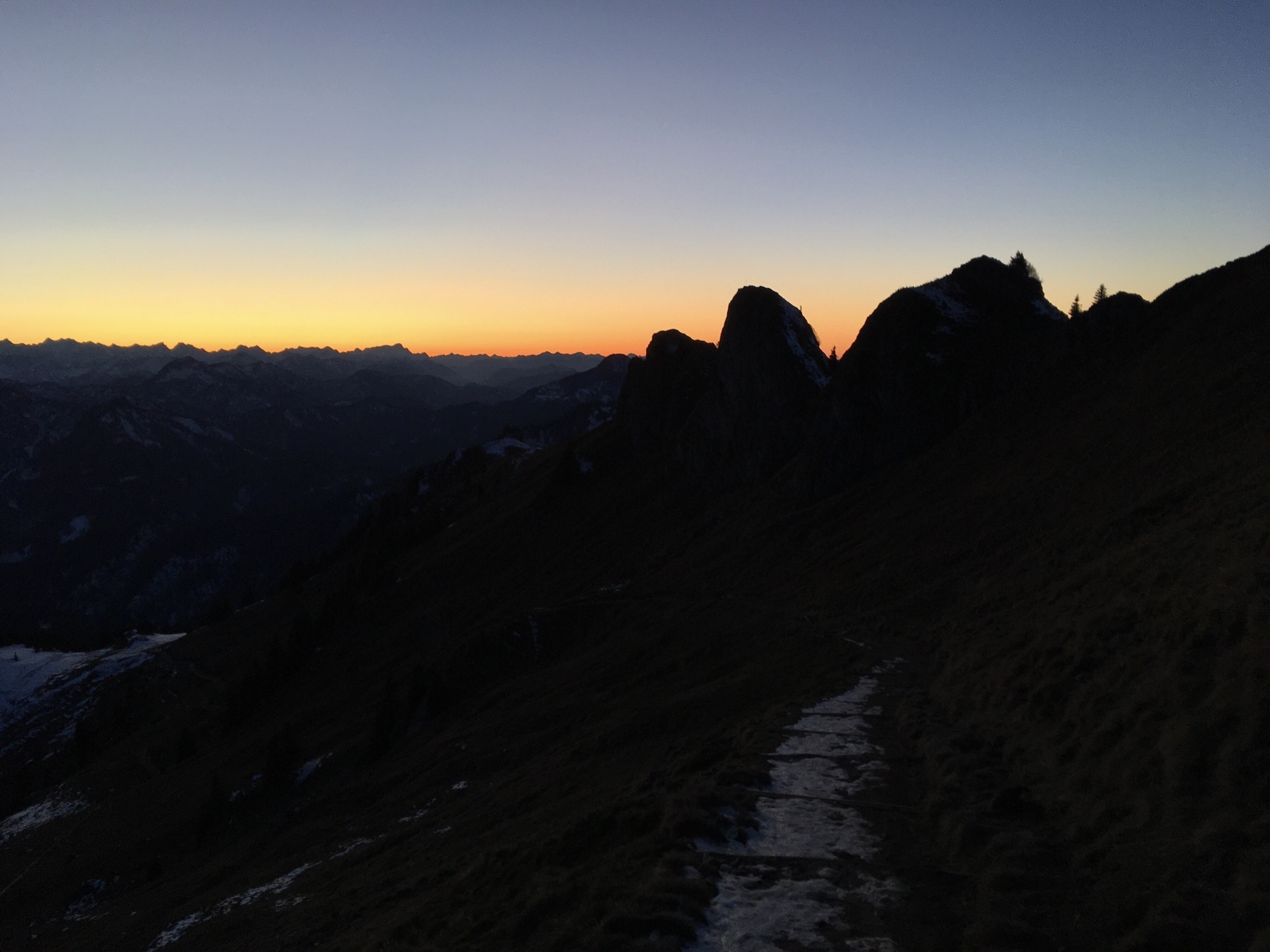 Trasa na Rotwand piękna jest, 3 lata temu tu byliśmy i nie miałam w pamięci, że taki mega widok i po drodze, i z góry! Szaleństwo. Po drodze ciepło bardzo, ale na szczycie, jak tylko zaczęło zachodzić słońce, zaraz powiało chłodem… Ale, mieli ubranka, oraz grzane wino, więc chłód niestraszny! Na szczycie przez chwile byliśmy tylko w 3 i ta cisza i kolory zapierają dech w piersiach, zachód słońca to magiczny spektakl jednak.
