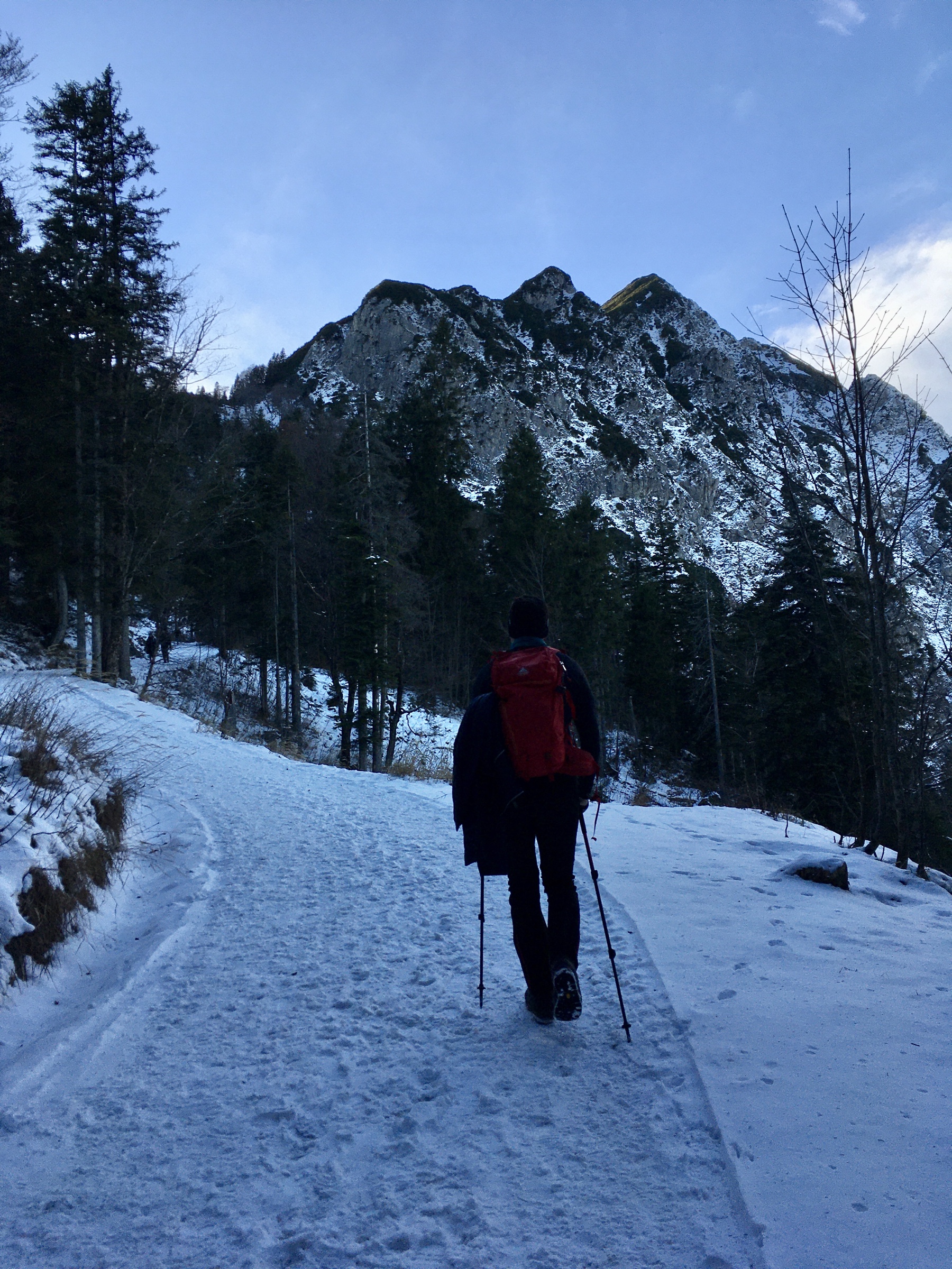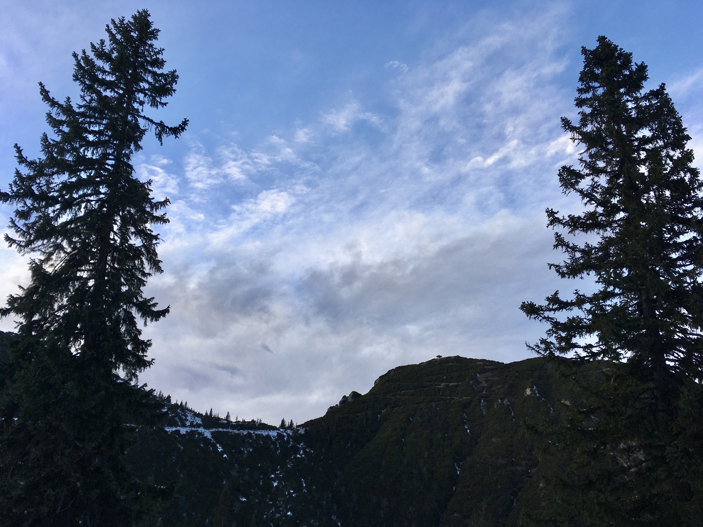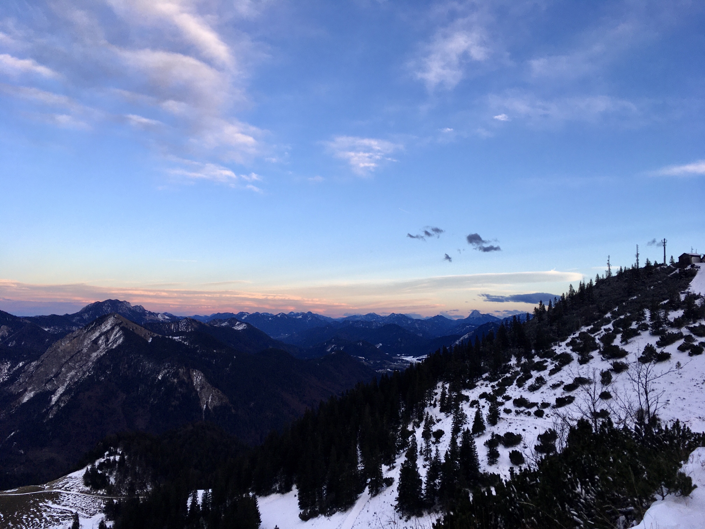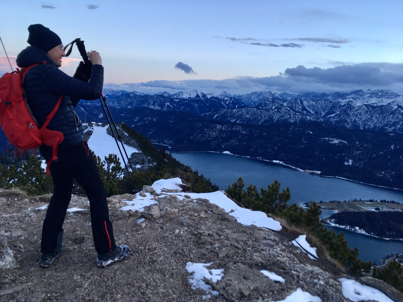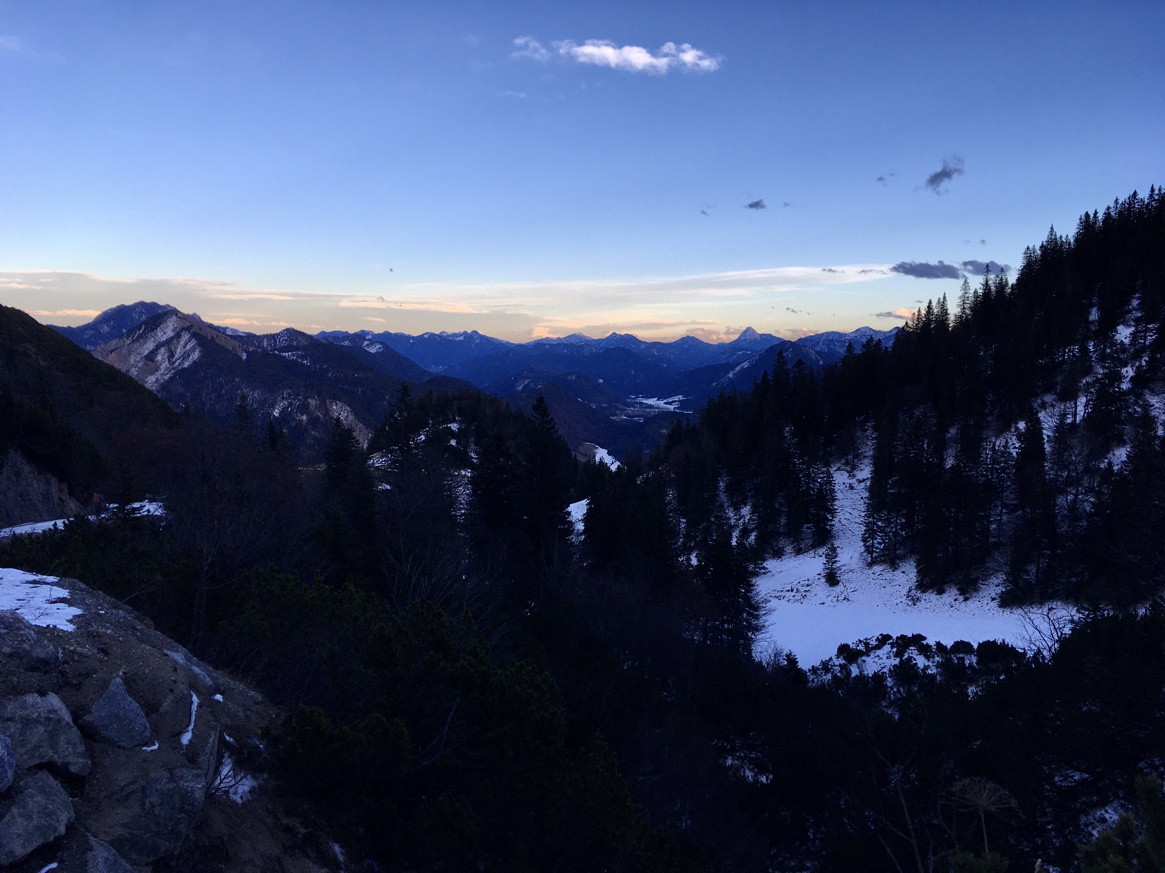 It’s Friday again! And last week the sunset tour was such a fantastic experience, we decide to repeat it. But, this is a working Friday so we’re leaving late and it’s already 14.15 when we set off from Kesselberg towards Herzogstand. Parking is full – and on the way up a lot of people pass us on their way down. Weather is great: sunny, no wind, bit of snow, pleasant warm – a dream. There’s 2 very steep moments but otherwise it’s a nice way up, with pretty views here and there. But, the weather changes quite abruptly: once we get close to Herzogstandhaus, it’s already quite windy. We decide to skip Herzogstand but go to Martinskopf at least – and the wind gets stronger. On the top it’s a little hurricane already and we can forget the sunset views because the sun is hidden behind clouds already. The mountains look spectacular anyway but couple of quick photos and we go back down before we’re blown off 😉 Another quick stop by the Herzogstand for a Glühwein we brought with us and we set off on our way back. And boy, is it windy! Crazy, the sudden blows – defo a different kind of adventure then last week 😉 But, it was great fun anyway! I take a moment to watch the stars as they shine so bright when there’s no city lights and then, after 4h in the great outdoors, we get back home.