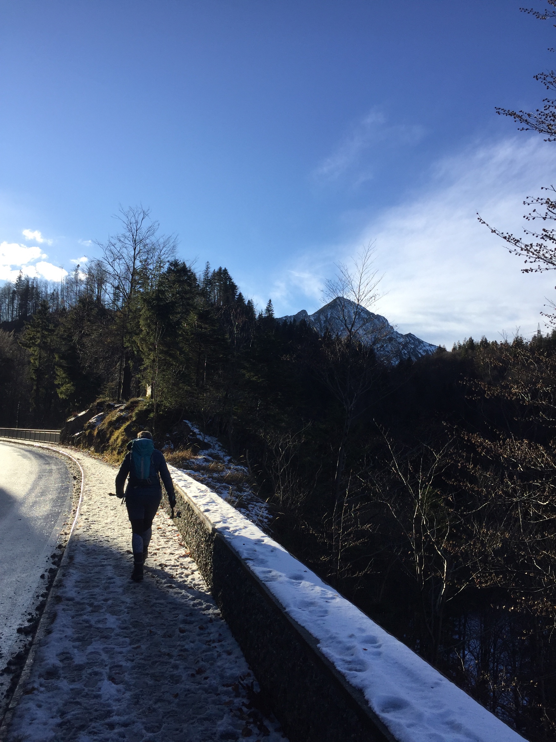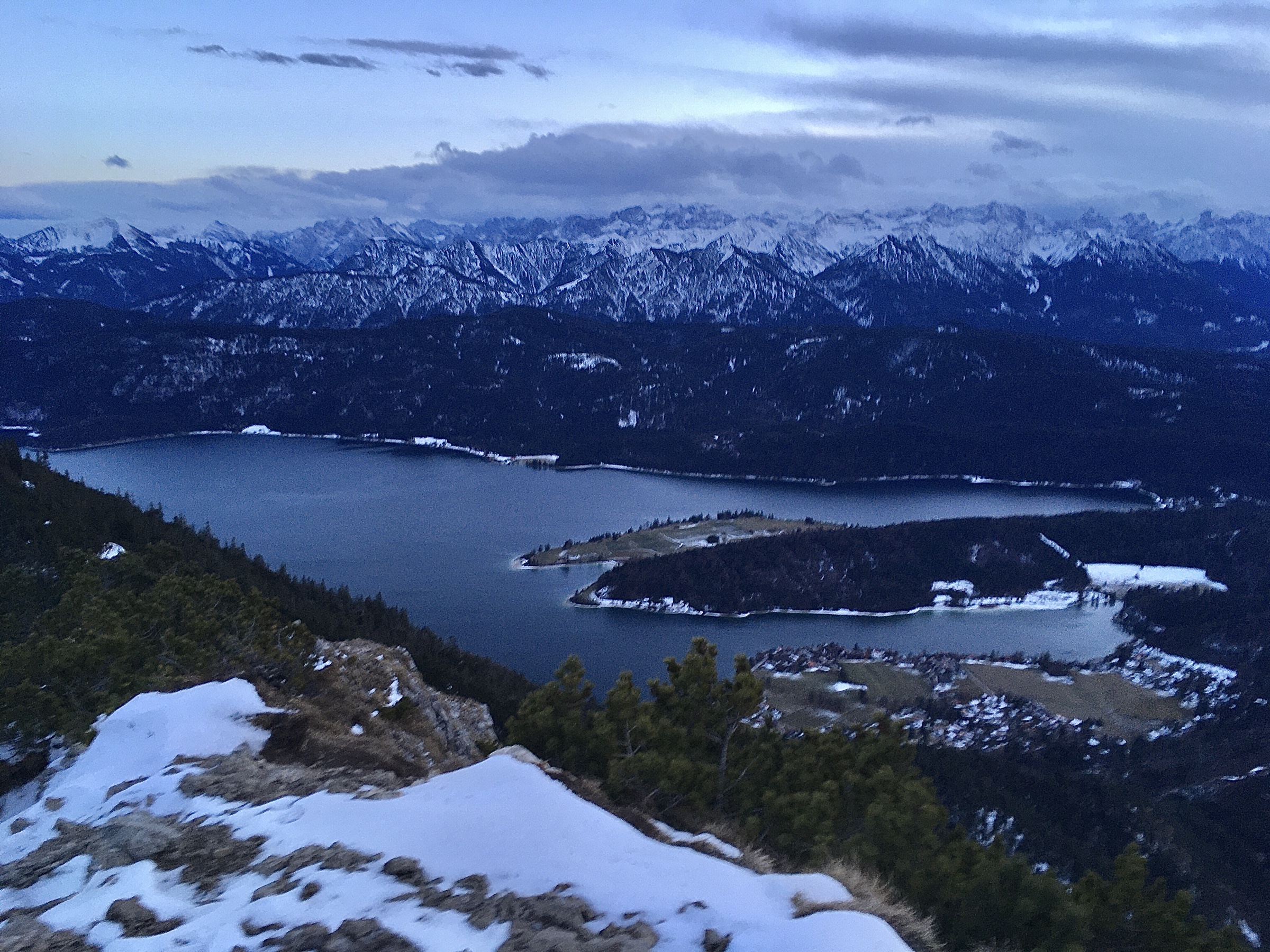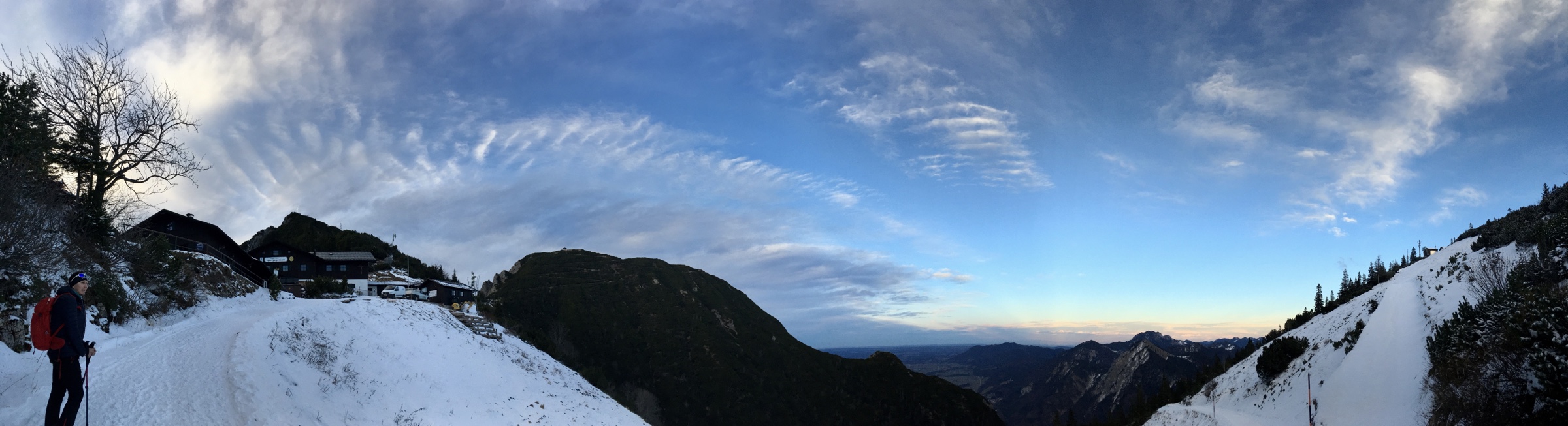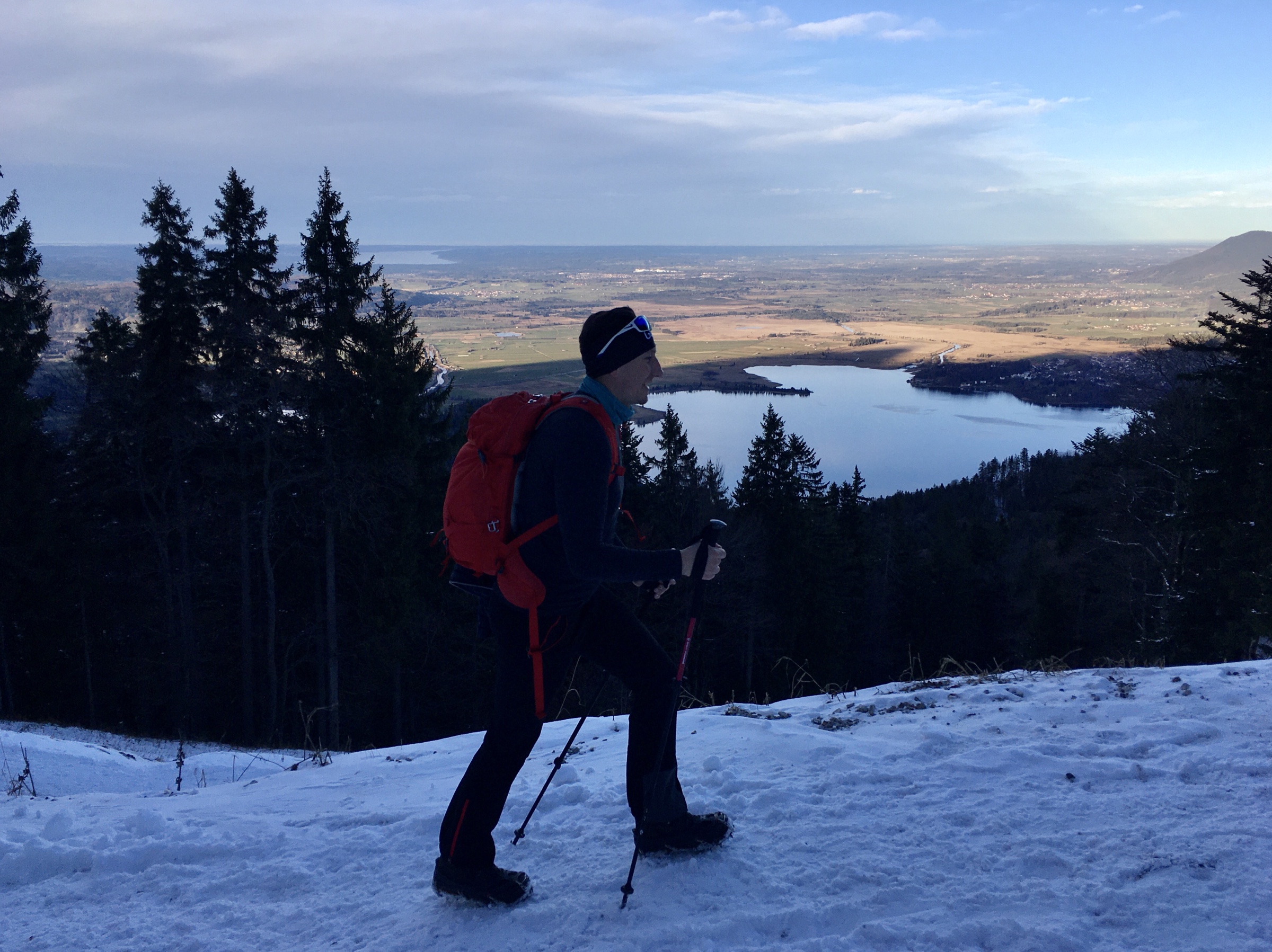It’s Friday again! And last week the sunset tour was such a fantastic experience, we decide to repeat it. But, this is a working Friday so we’re leaving late and it’s already 14.15 when we set off from Kesselberg towards Herzogstand. Parking is full – and on the way up a lot of people pass us on their way down. Weather is great: sunny, no wind, bit of snow, pleasant warm – a dream. There’s 2 very steep moments but otherwise it’s a nice way up, with pretty views here and there. But, the weather changes quite abruptly: once we get close to Herzogstandhaus, it’s already quite windy. We decide to skip Herzogstand but go to Martinskopf at least – and the wind gets stronger. On the top it’s a little hurricane already and we can forget the sunset views because the sun is hidden behind clouds already. The mountains look spectacular anyway but couple of quick photos and we go back down before we’re blown off 😉 Another quick stop by the Herzogstand for a Glühwein we brought with us and we set off on our way back. And boy, is it windy! Crazy, the sudden blows – defo a different kind of adventure then last week 😉 But, it was great fun anyway! I take a moment to watch the stars as they shine so bright when there’s no city lights and then, after 4h in the great outdoors, we get back home.