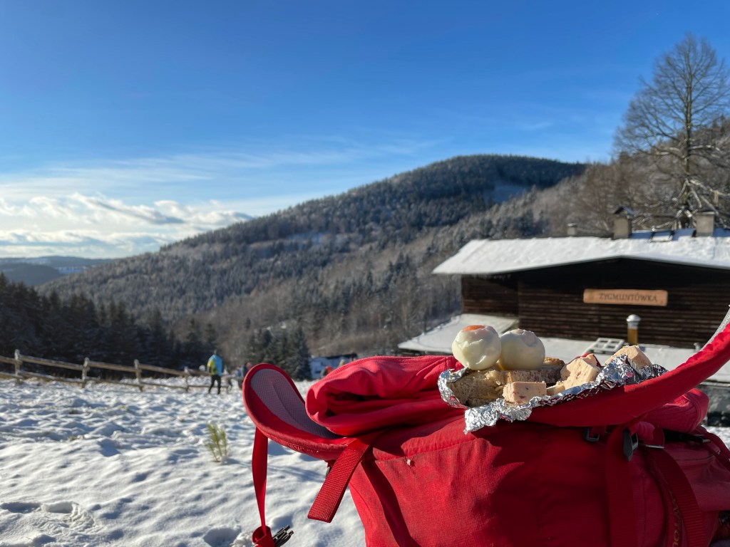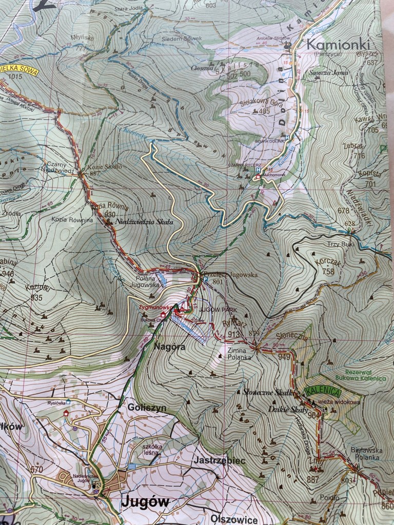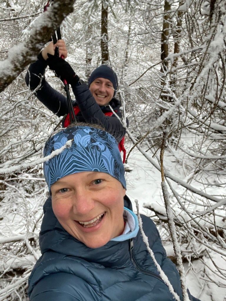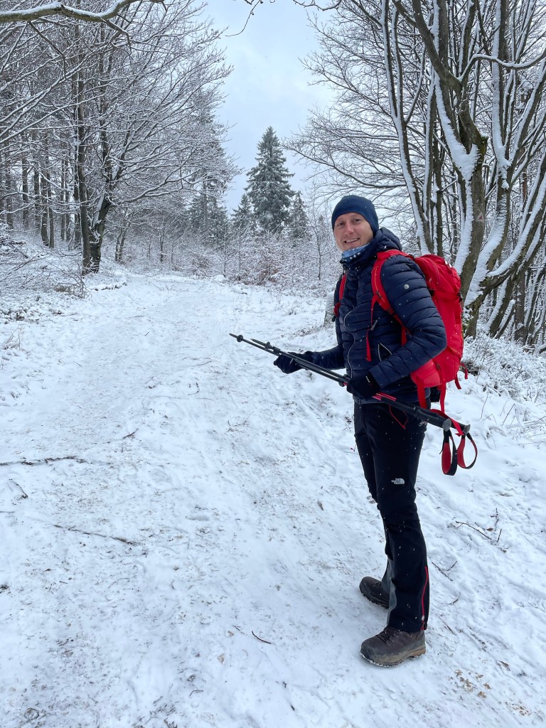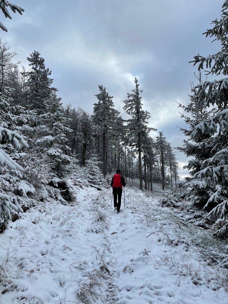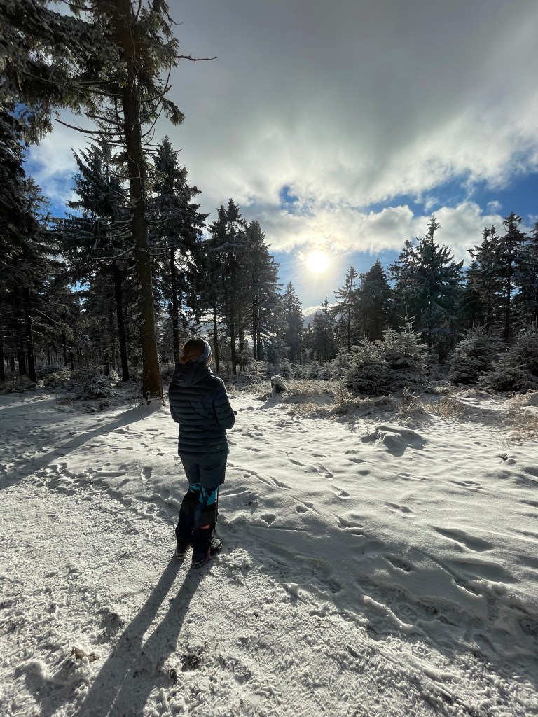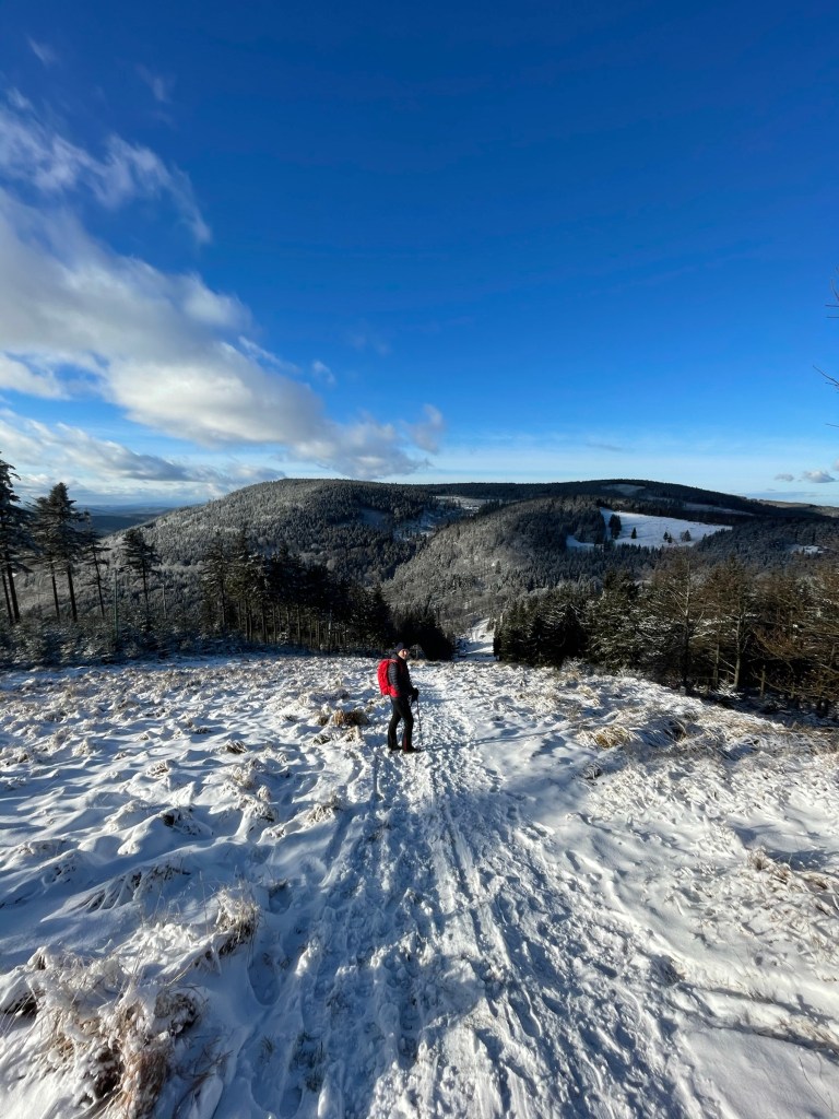 Czas się wreszcie ruszyć w góry, bo wreszcie spadł śnieg! Miała być Kalenica z Leśnego Dworku, ale M chciał uniknąć przewyższenia, po wczorajszych biegach przełajowych, więc Tata podpowiedział bardzo fajną pętlę z Jugowskiej (a ja łasa na pętelki!). Wyruszyliśmy z przełęczy po godz.10 i wtedy jeszcze nie było problemu z parkingiem – na powrocie po 14, sprawa wyglądała już zupełnie inaczej: pełne oblężenie! Rzeczka jeszcze gorzej. Ale, jak zwykle wybiegam za bardzo do przodu, zatem wracając do clue programu: trasa przez Rymarz i cudownie nieuczęszczaną Drogą Husarską na Żmij i Kalenicę, super 💙 Bardzo ładny szlak, z widokami na Szczeliniec i Śnieżkę nawet oraz podobnież SkyTowera – tego jednak nie zdołaliśmy dostrzec, bo trzeba było zmykać z Kalenicowej wieży przed wrzaskunami. Powrót nieużytkiem będącym niegdyś stokiem Rymarza przez pięknie zadbaną i użytkowaną Zygmuntowkę, aż miło spojrzeć! Świetne miejsce się zrobiło. Cichaczem zjedliśmy naszą wałóweczkę, pod czujnym okiem goprowskiej kamery 😉 I myk do auta, a stamtąd do Rzeczki na spotkanie z resztą rodzinki. Piękna świąteczna sobotka!