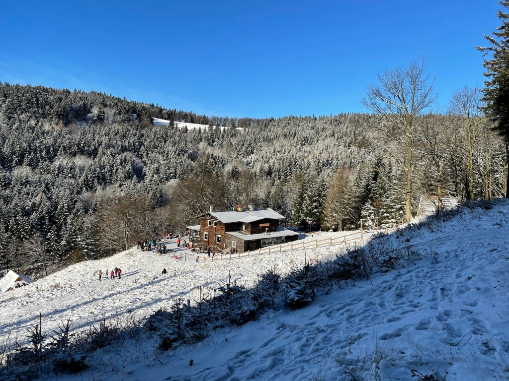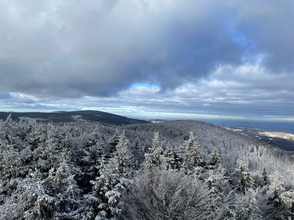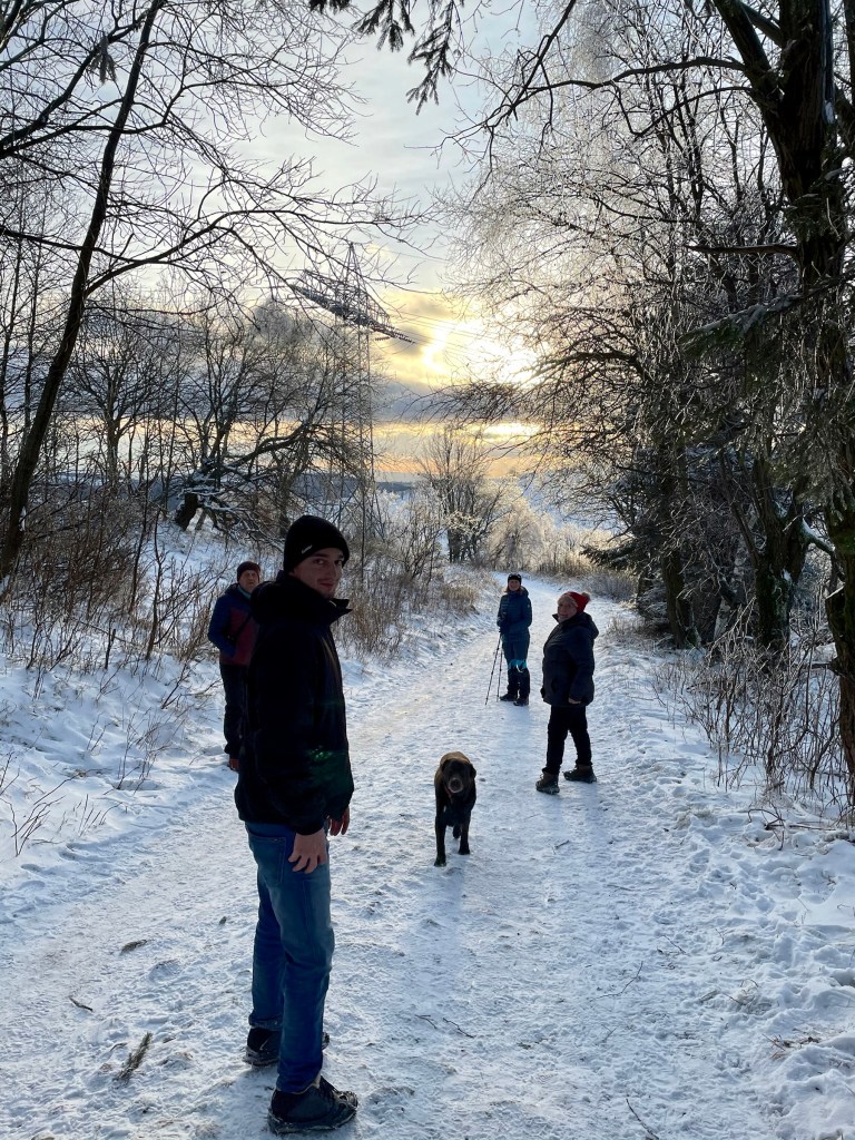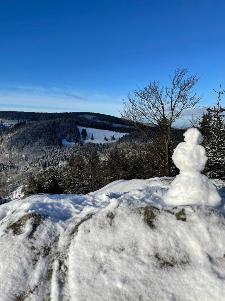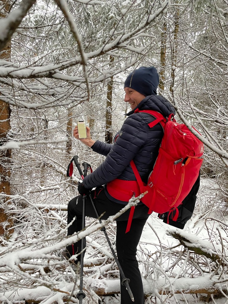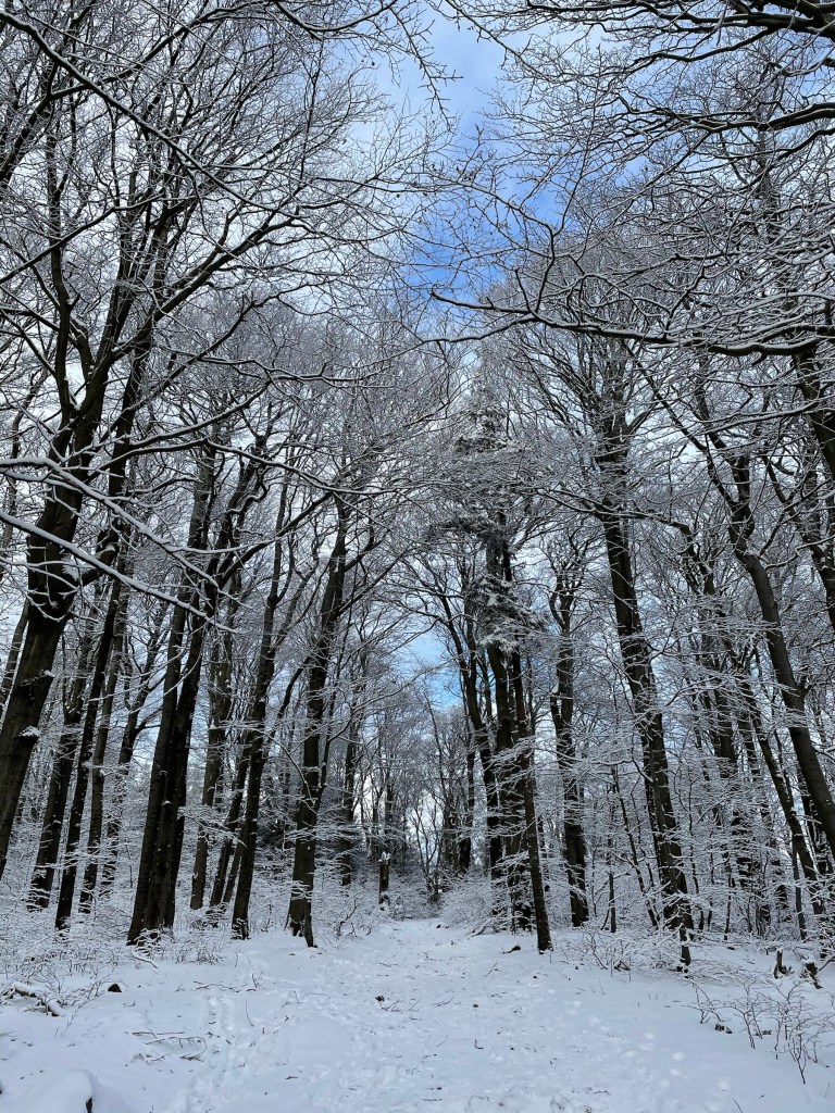 Czas się wreszcie ruszyć w góry, bo wreszcie spadł śnieg! Miała być Kalenica z Leśnego Dworku, ale M chciał uniknąć przewyższenia, po wczorajszych biegach przełajowych, więc Tata podpowiedział bardzo fajną pętlę z Jugowskiej (a ja łasa na pętelki!). Wyruszyliśmy z przełęczy po godz.10 i wtedy jeszcze nie było problemu z parkingiem – na powrocie po 14, sprawa wyglądała już zupełnie inaczej: pełne oblężenie! Rzeczka jeszcze gorzej. Ale, jak zwykle wybiegam za bardzo do przodu, zatem wracając do clue programu: trasa przez Rymarz i cudownie nieuczęszczaną Drogą Husarską na Żmij i Kalenicę, super 💙 Bardzo ładny szlak, z widokami na Szczeliniec i Śnieżkę nawet oraz podobnież SkyTowera – tego jednak nie zdołaliśmy dostrzec, bo trzeba było zmykać z Kalenicowej wieży przed wrzaskunami. Powrót nieużytkiem będącym niegdyś stokiem Rymarza przez pięknie zadbaną i użytkowaną Zygmuntowkę, aż miło spojrzeć! Świetne miejsce się zrobiło. Cichaczem zjedliśmy naszą wałóweczkę, pod czujnym okiem goprowskiej kamery 😉 I myk do auta, a stamtąd do Rzeczki na spotkanie z resztą rodzinki. Piękna świąteczna sobotka!