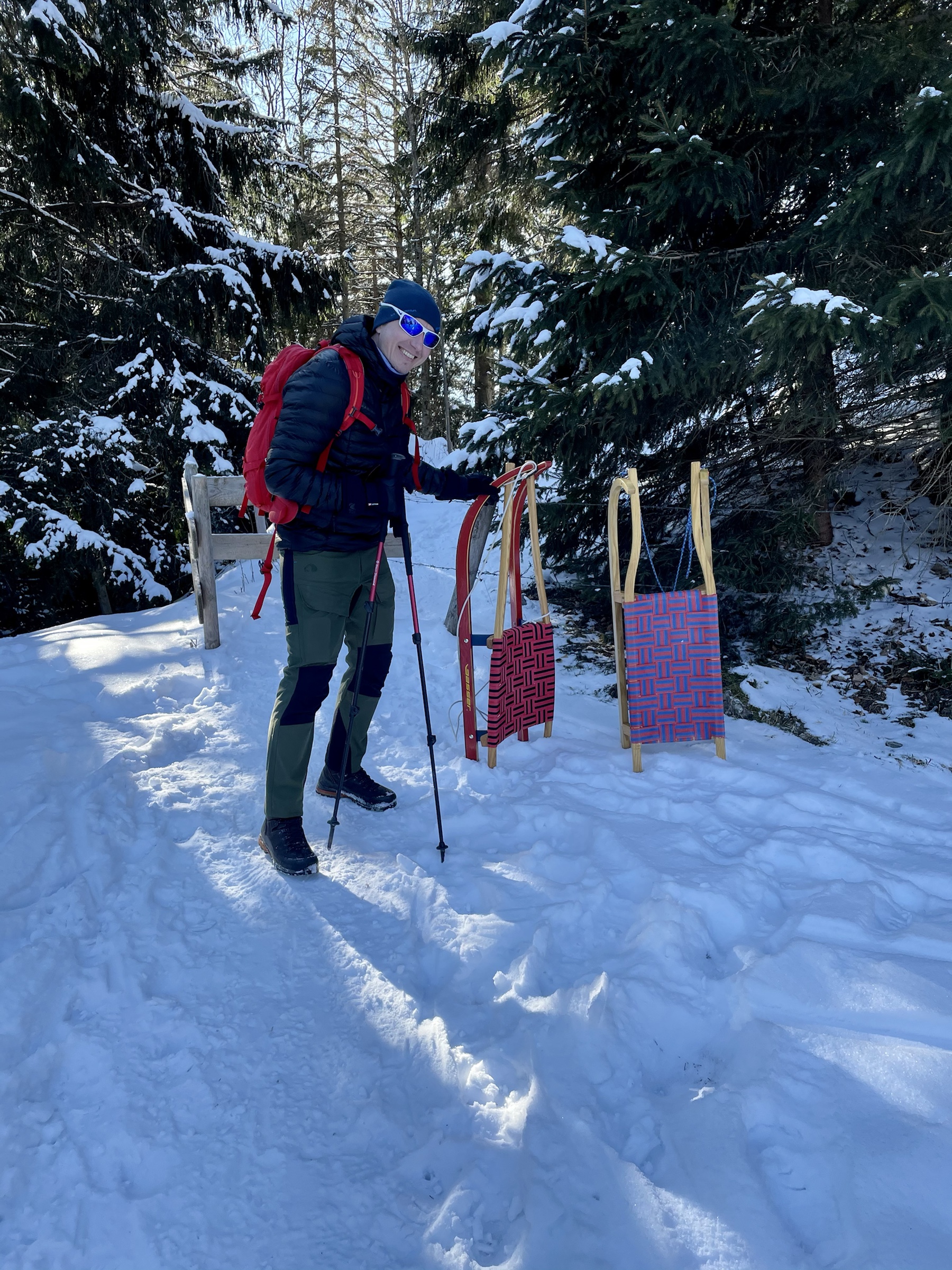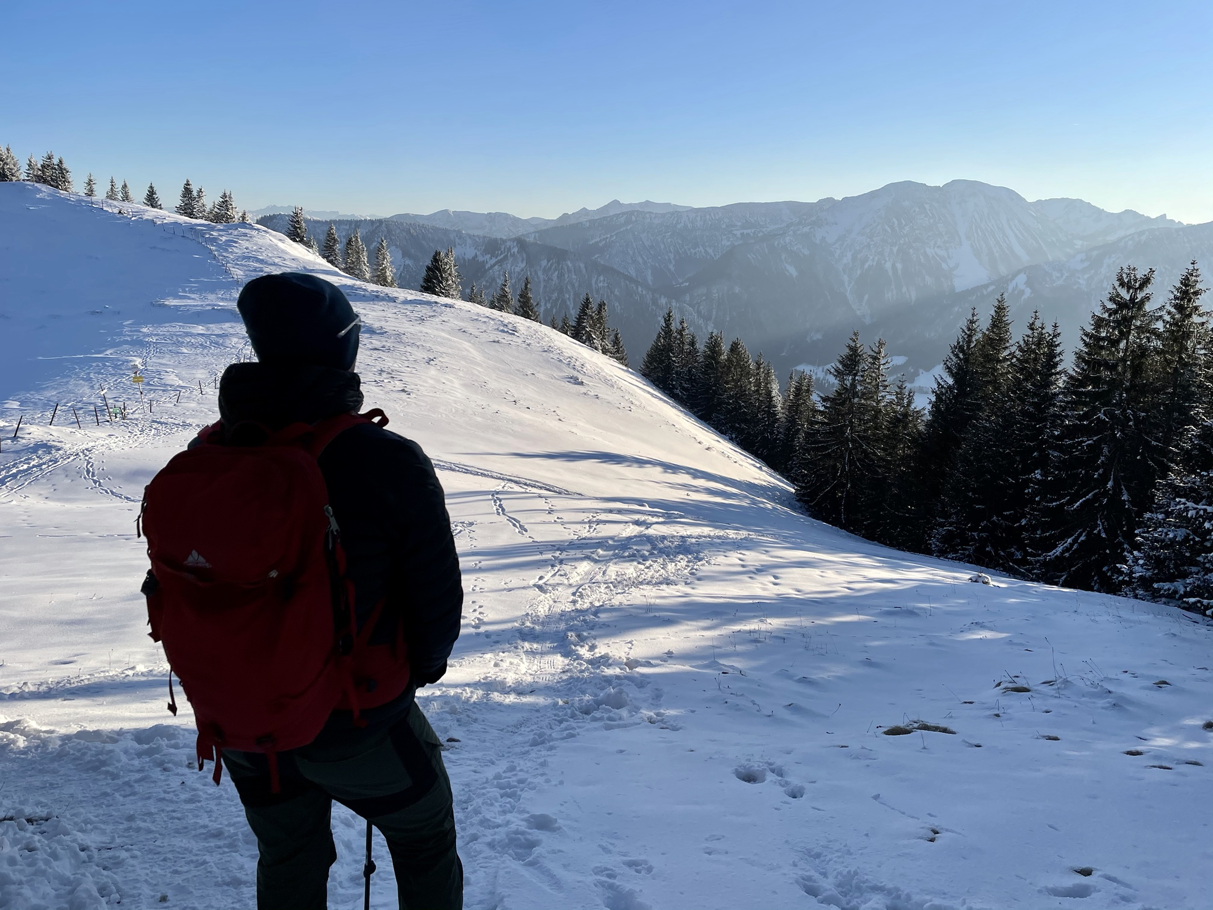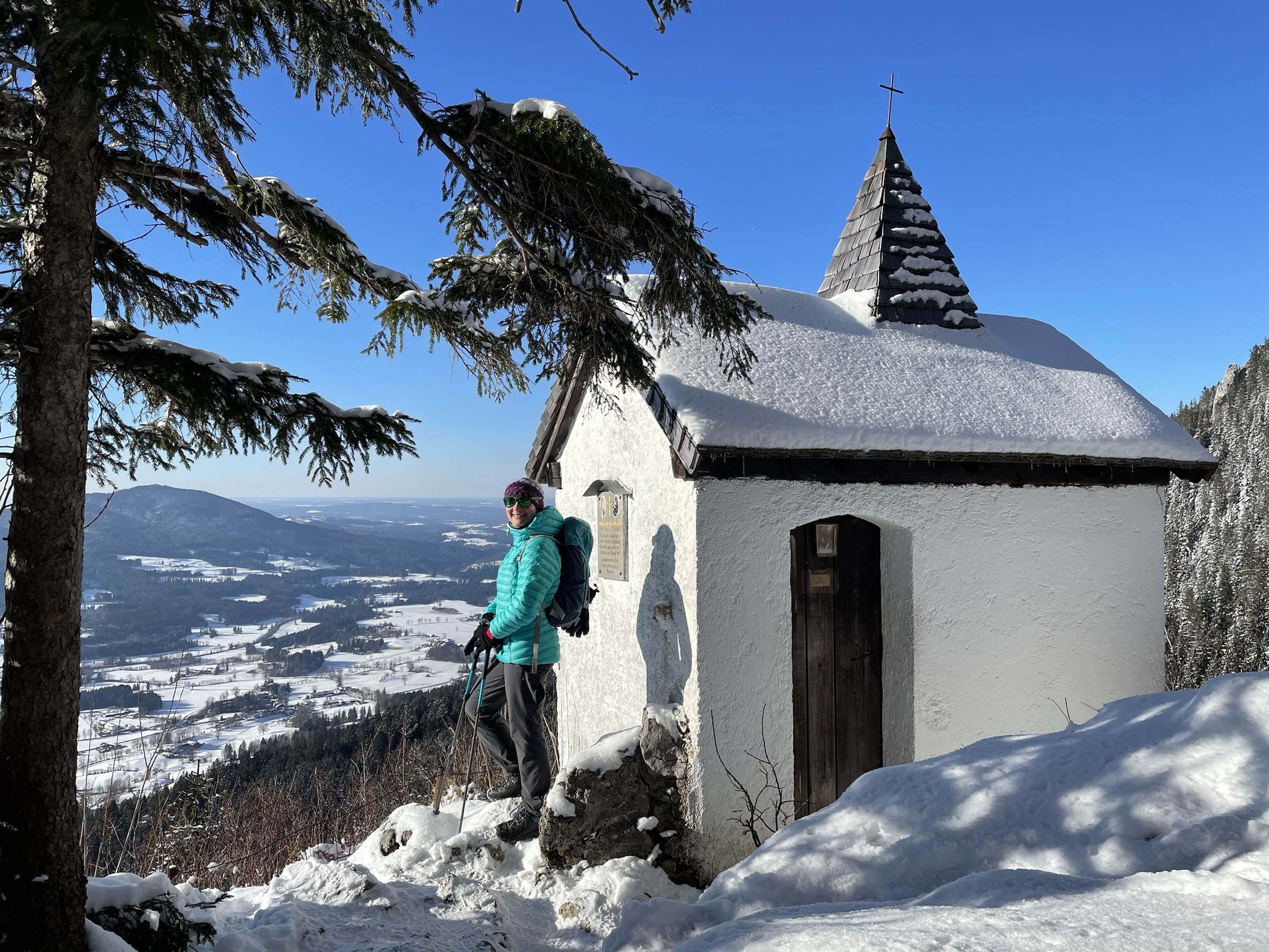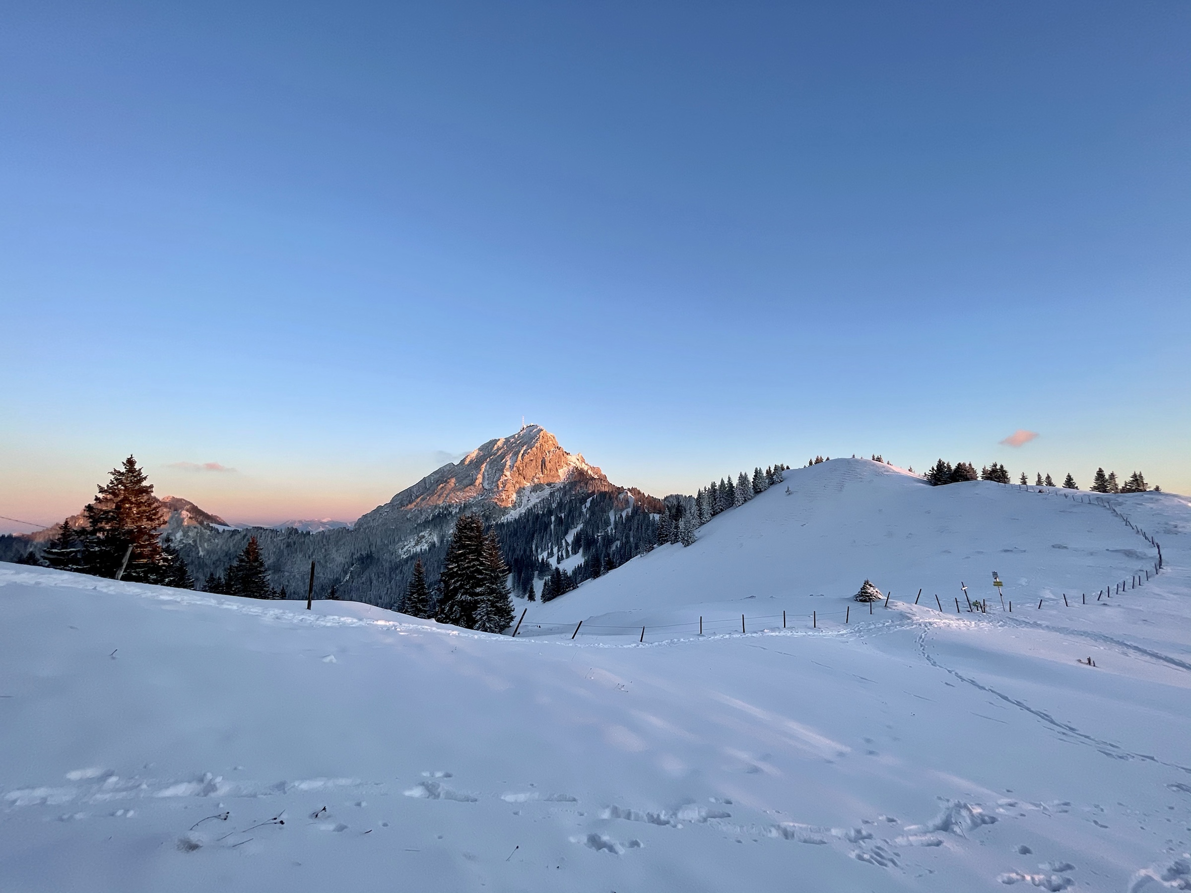 Przy Kesselalm odbiliśmy zerknąć na małą kapliczkę z widokiem – uroczo bardzo. I potem dalej, aż do skrzyżowania, gdzie krzyżują się szlaki na Breitenstein, Wendelstein i Schweinsberg – chciałam podejść na świńską górkę od strony Wendelsteina właśnie, ale wiało tak okrutnie przeszywającym zimnem, że cofnęliśmy się do szlaku i poszliśmy przez Kotalm – spędzając dłuższą chwilę na tarasie tej uroczej huty: codzienne widoki na zachód słońca z własnego salonu, bezcenne! Z huty już tylko 40min na szczyt, poszło rachu ciachu i radocha, gdyż na szczycie nikogo poza nami i jak się zejdzie 2 kroki niżej, to nie wieje! Tyle wygrać 😍 Urocze przed-walentynki ❤️