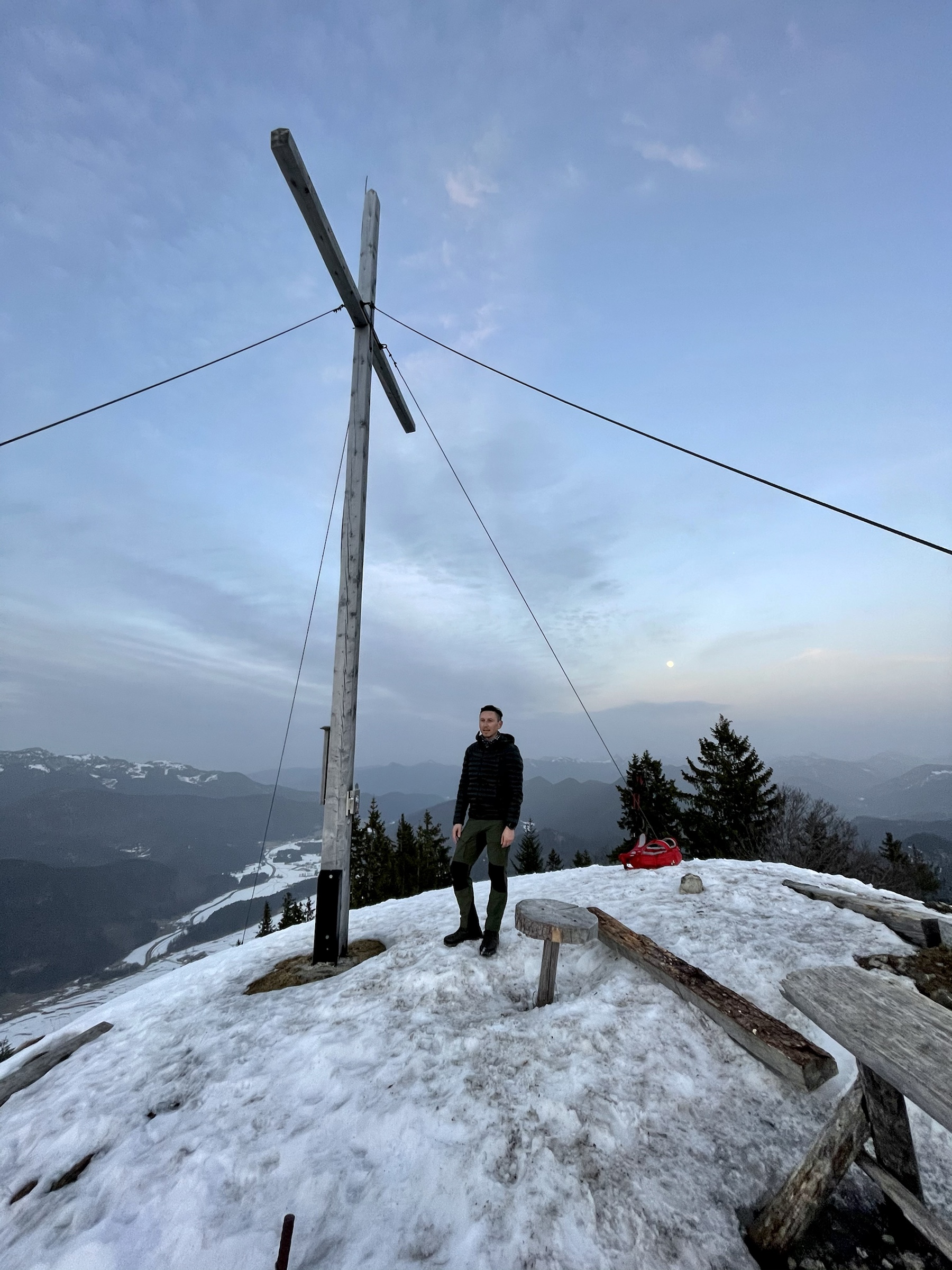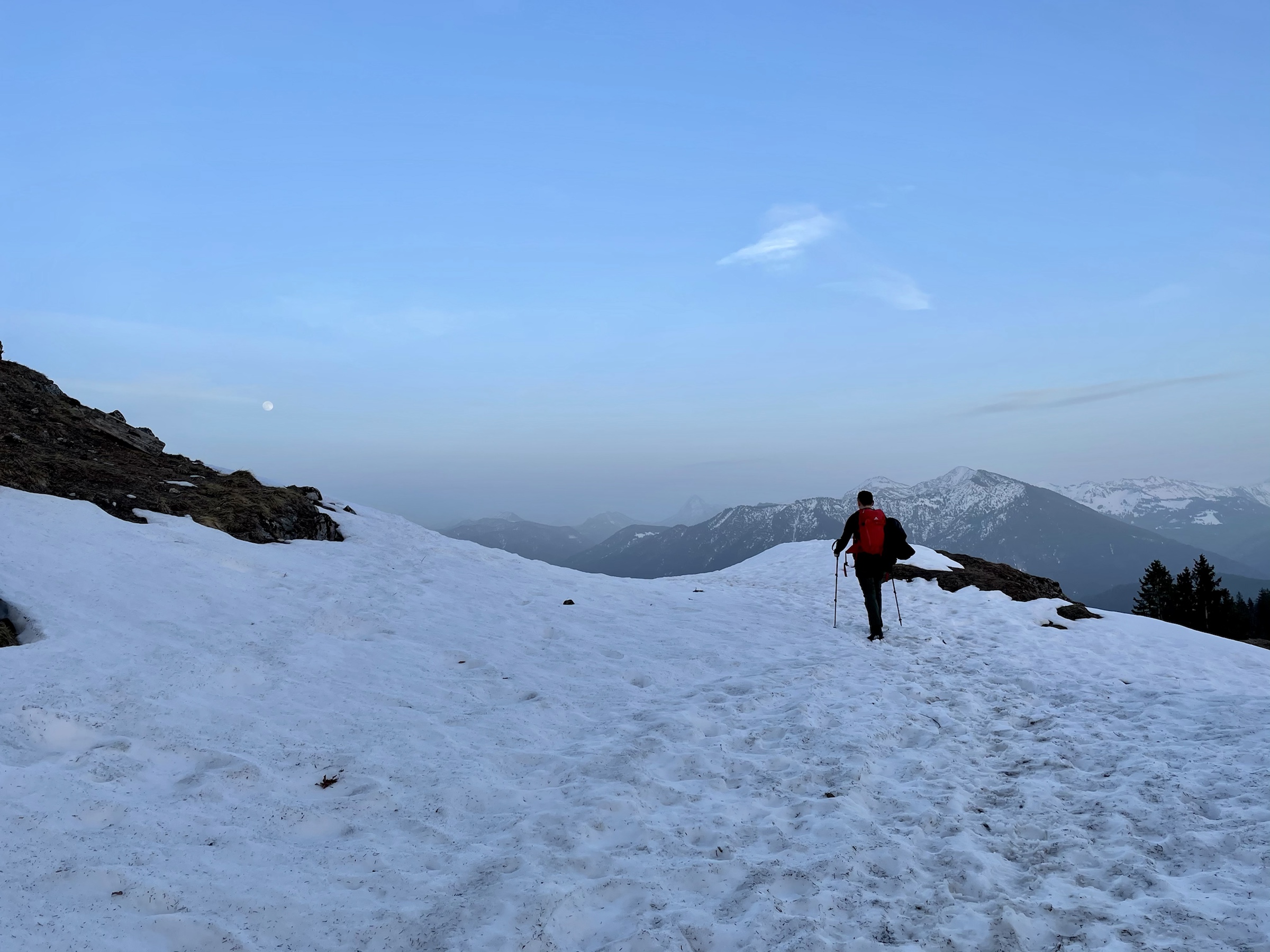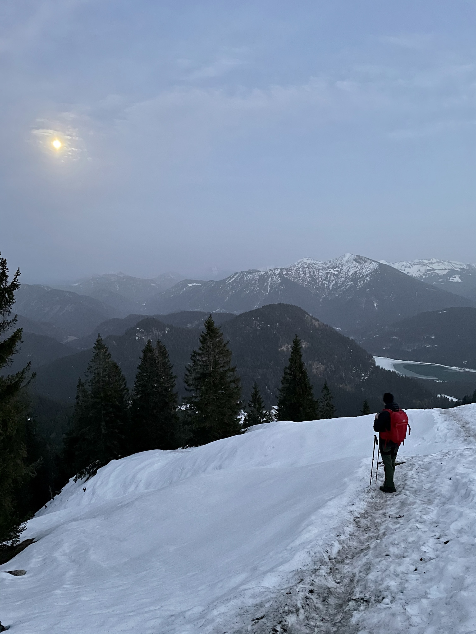 Yay! Another Friday sunset tour done 💪 And it’s been badly needed as today was a very stressful day at work. We left at 2.20 and barely made it up in time for a sunset! The sun decided to hide behind the clouds way before the actual sunset but we managed to get a few decent photos, met no one all the way, only had company on the top, had some snow to slide on the way down, full moon lighting the way and the owl accompanying us down making it ooohooo sounds 🦉 Lovely tour, done exactly as described here https://www.hoehenrausch.de/berge/staffel/