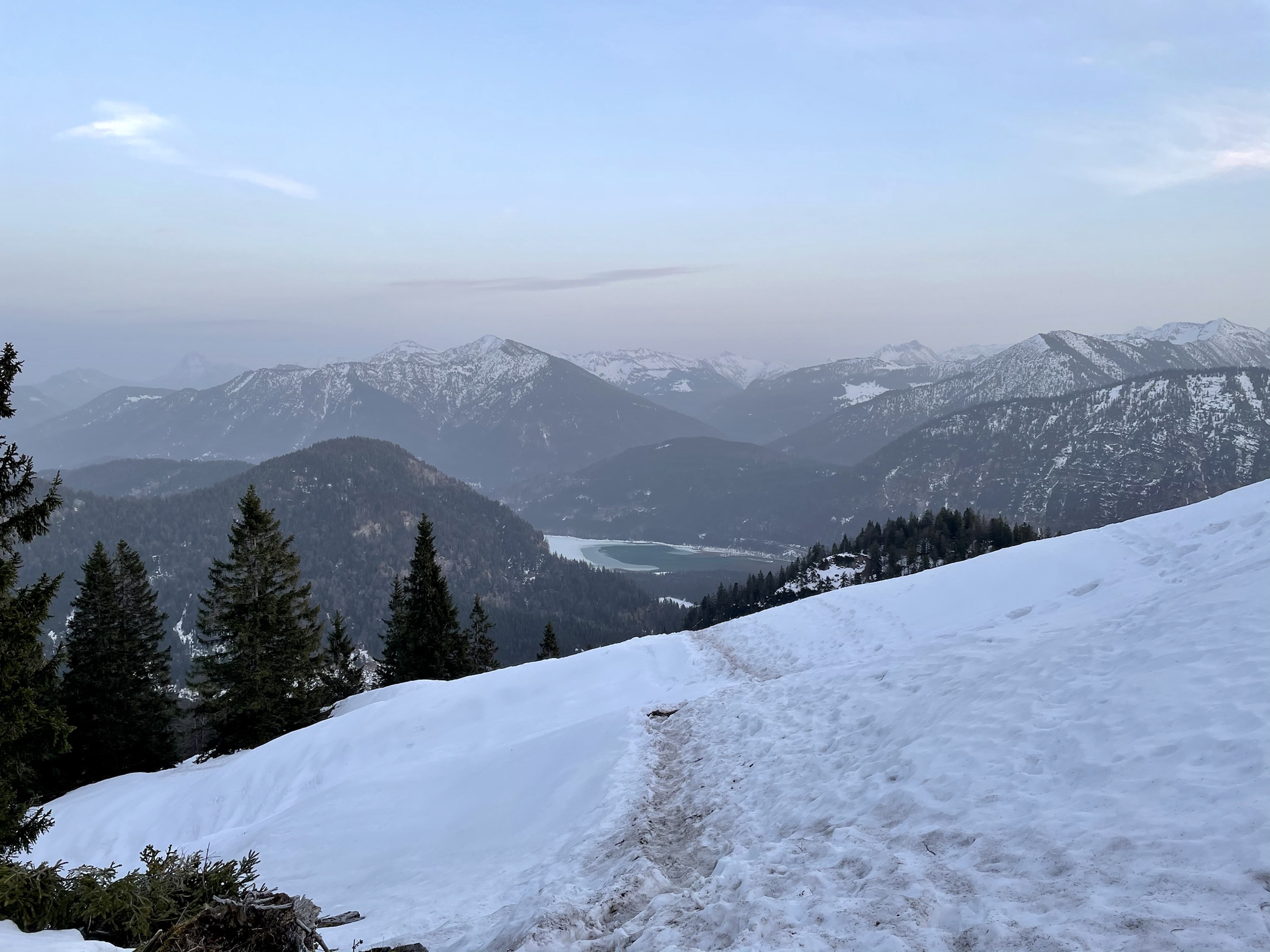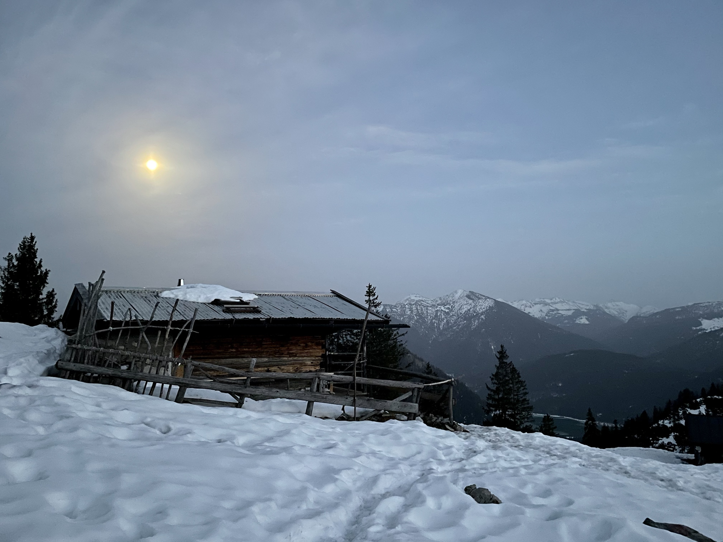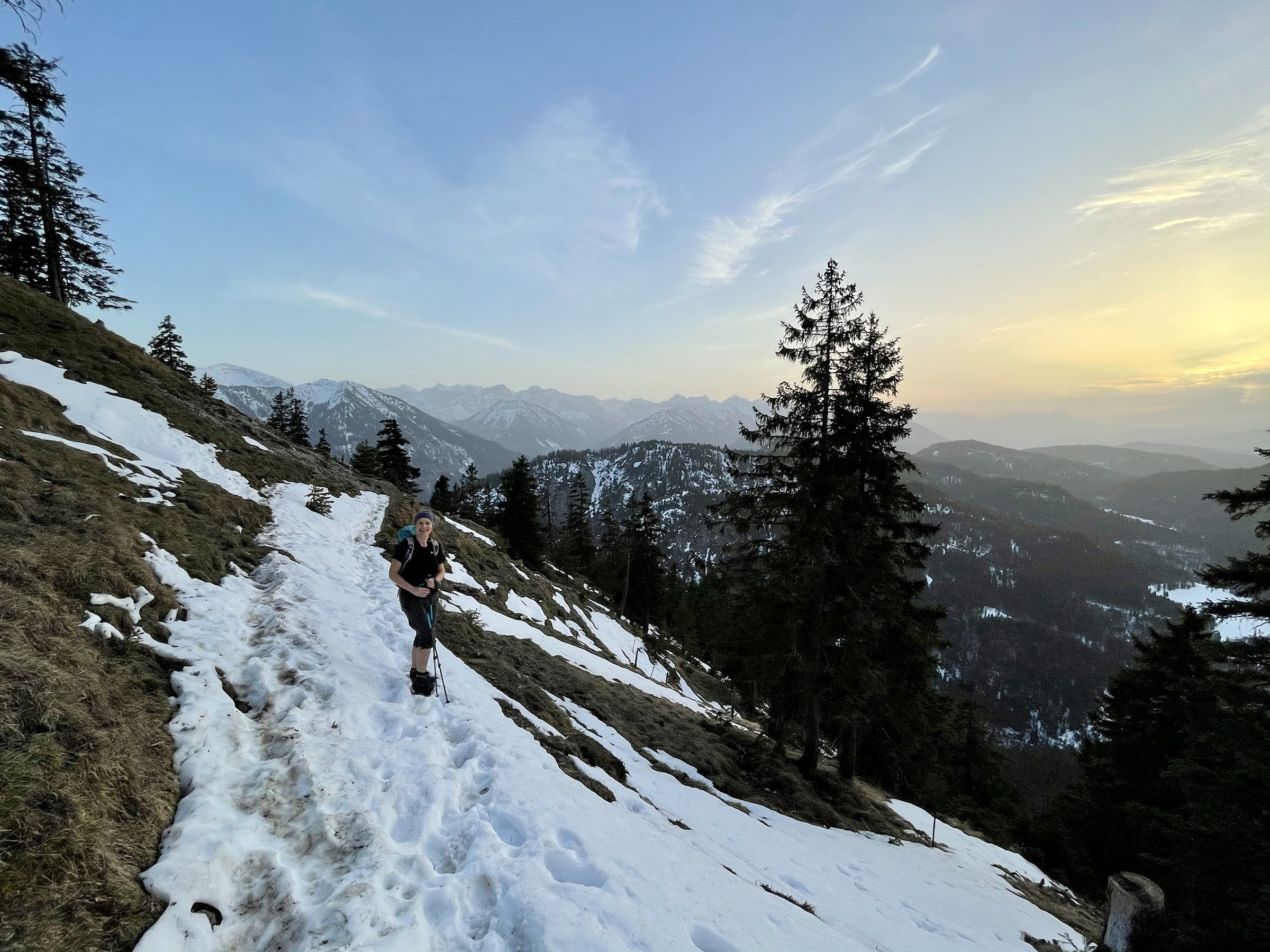 Yay! Another Friday sunset tour done 💪 And it’s been badly needed as today was a very stressful day at work. We left at 2.20 and barely made it up in time for a sunset! The sun decided to hide behind the clouds way before the actual sunset but we managed to get a few decent photos, met no one all the way, only had company on the top, had some snow to slide on the way down, full moon lighting the way and the owl accompanying us down making it ooohooo sounds 🦉 Lovely tour, done exactly as described here https://www.hoehenrausch.de/berge/staffel/