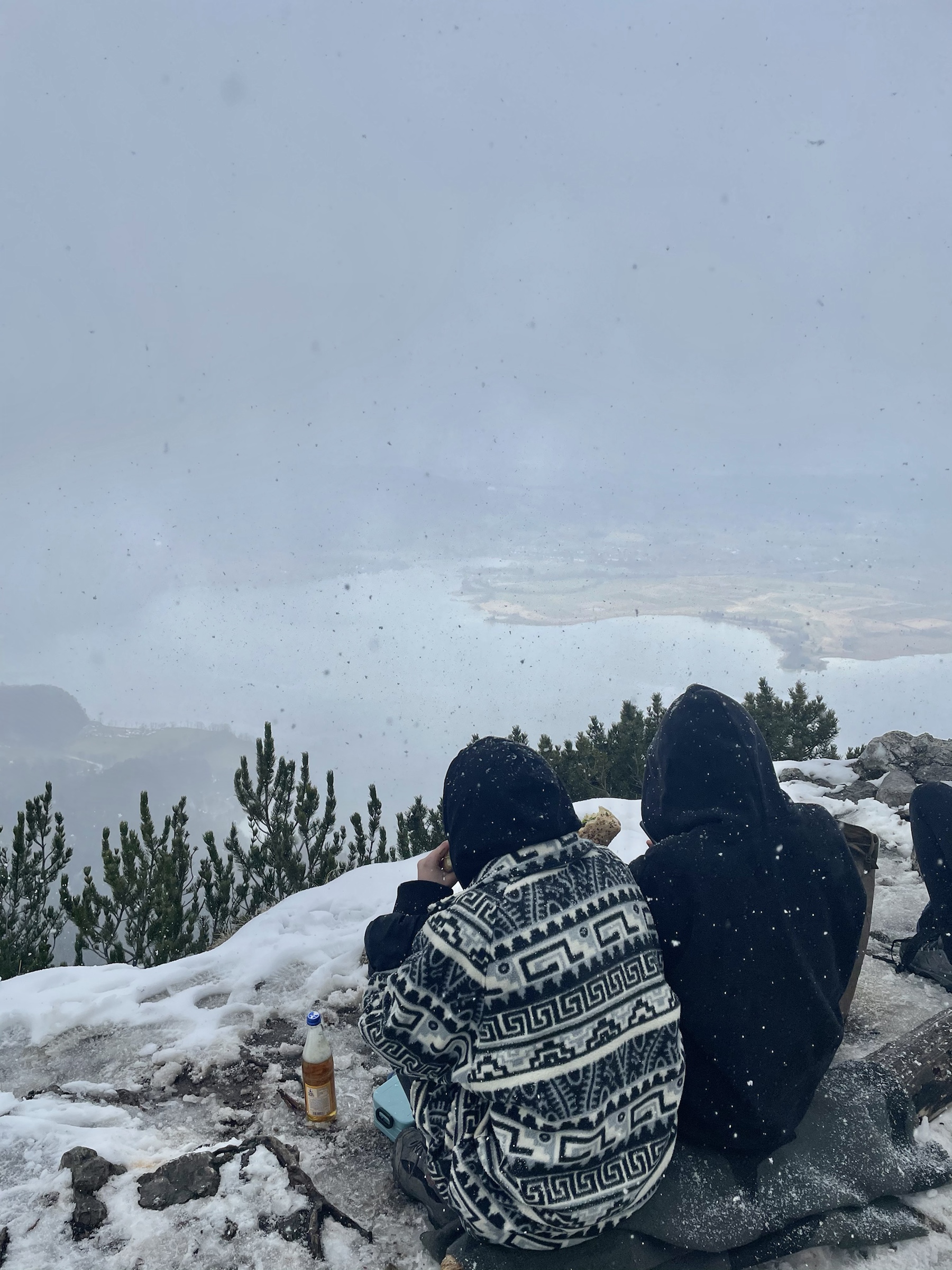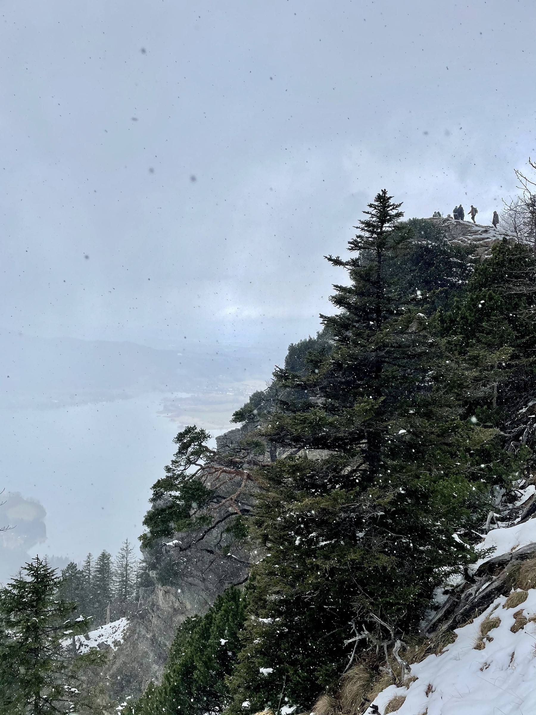 Trasa pod górę taka o : bez rewelacji, ale w sumie ładna serpentynka, ino stroma, ale jezioro przebłyskuje, więc widoki ok. Coraz ciemniej się robiło po drodze i na szczycie zaczęła się prawdziwa śnieżna zawierucha! Nie zostałam długo ino ruszyłam dalej na Graseck. I za chwilę zawisł nade mną helikopter! To ci akcja na żywo! Ale nic poważnego się nie stało, komuś się ino noga nieco omskła. Tym uważniej szlam w dół, gdyż ścieżynka wąska i błotnista, ale widok na Jochberg i Herzogstand przepiękny i ta pustka i cisza! Bosko. Uwielbiam wąskie niezaludnione ścieżki. Po drodze jeszcze jeden ładny punkt widokowy na Kochelsee, a poza tym już tylko błoto, błoto i błoto! Ale na dole wlazlam po kostki do jeziora, coby buty ogarnąć a potem przycupnąwszy na ławeczce już przy aucie, skonsumowałam prowiant z widokiem na jezioro i Herzog i wszystko było absolutnie doskonałe 😍