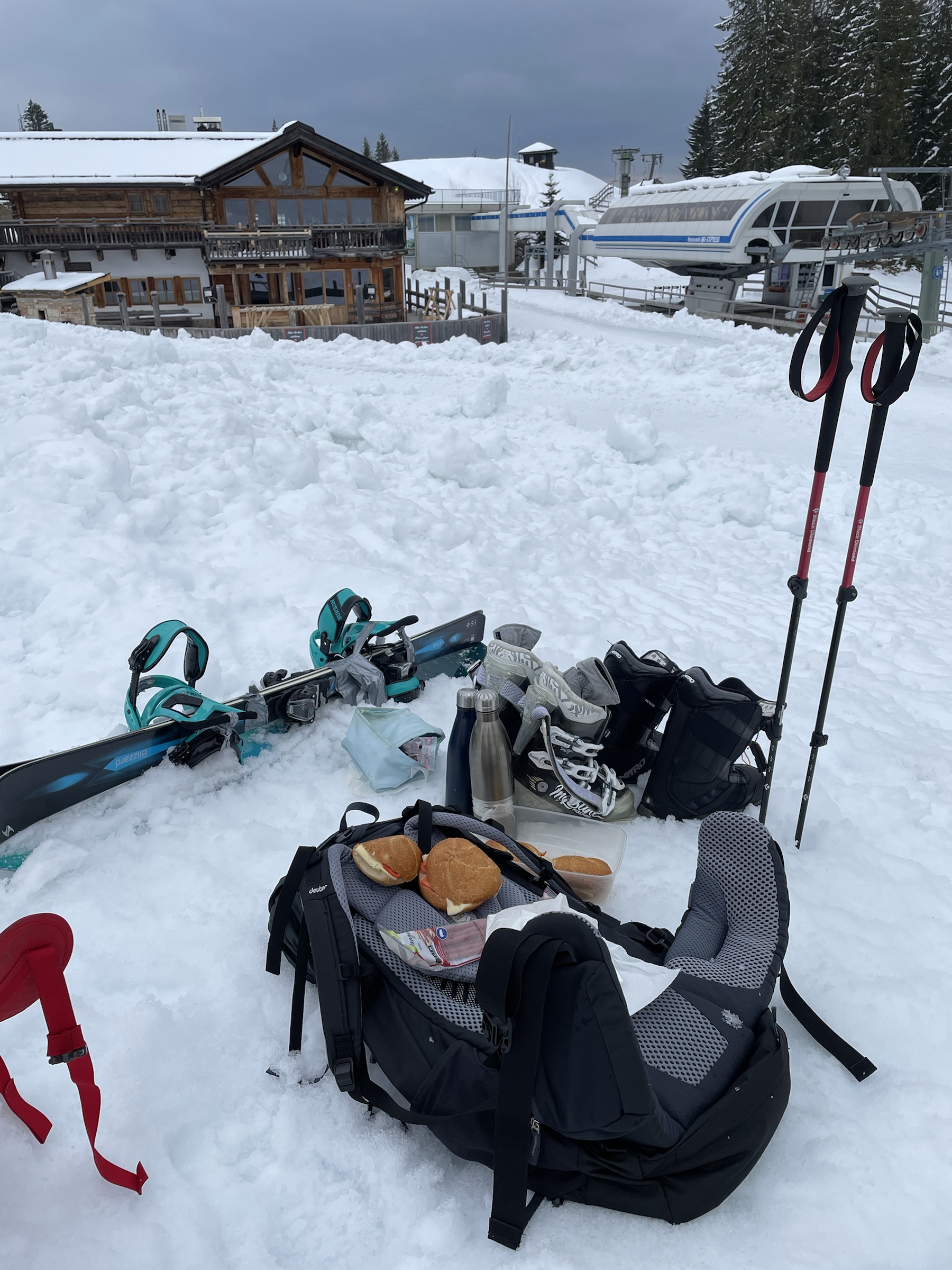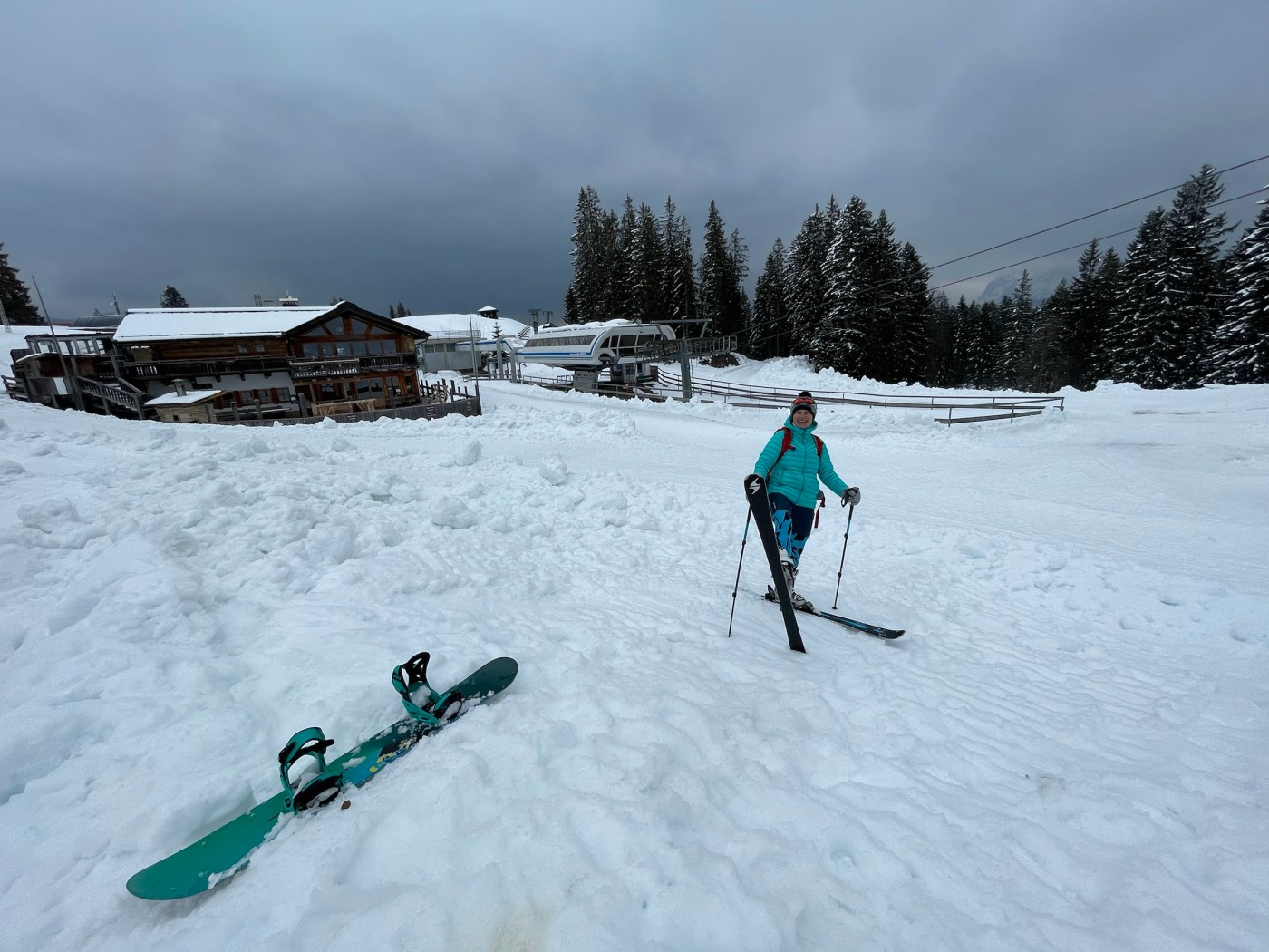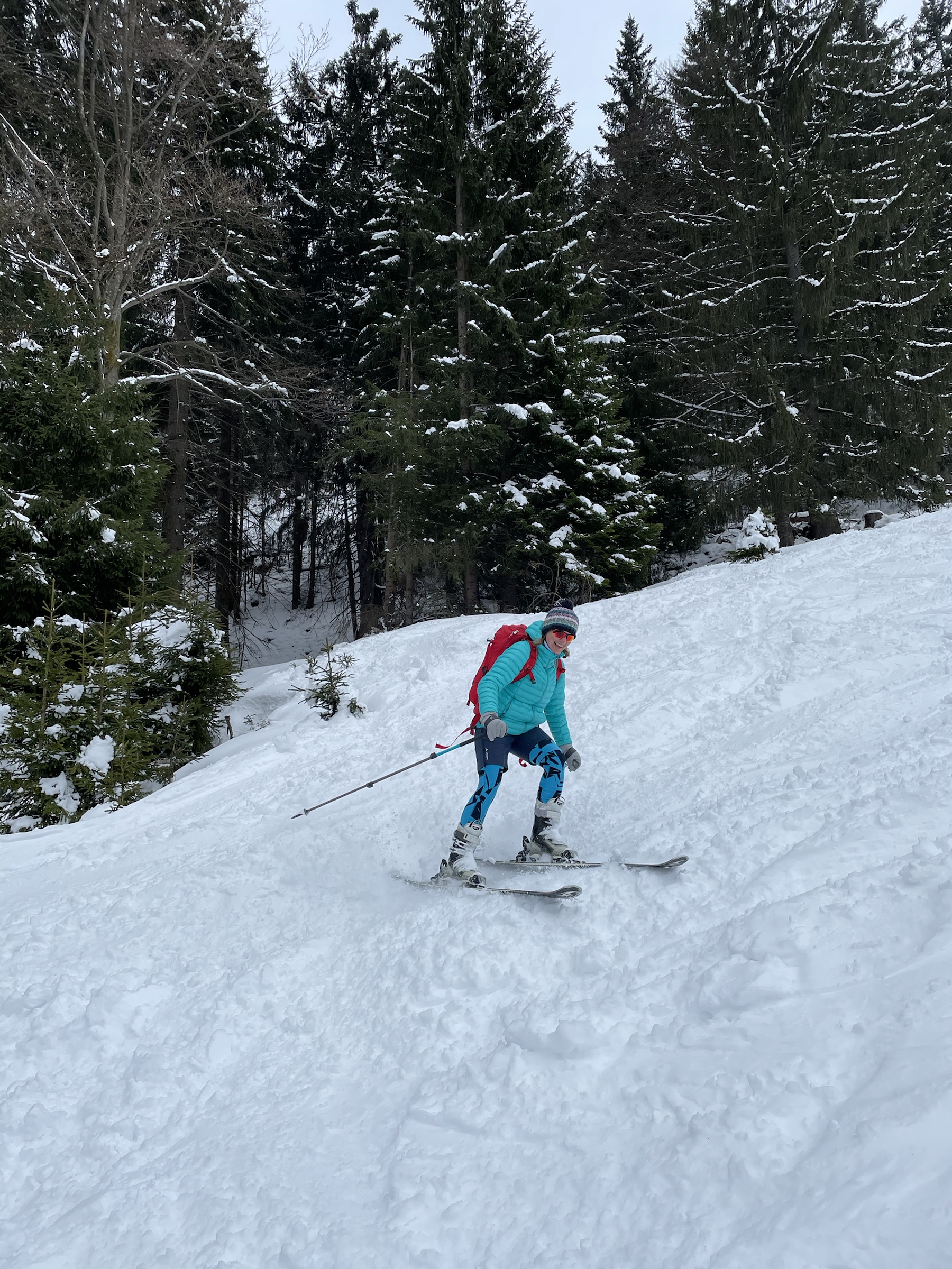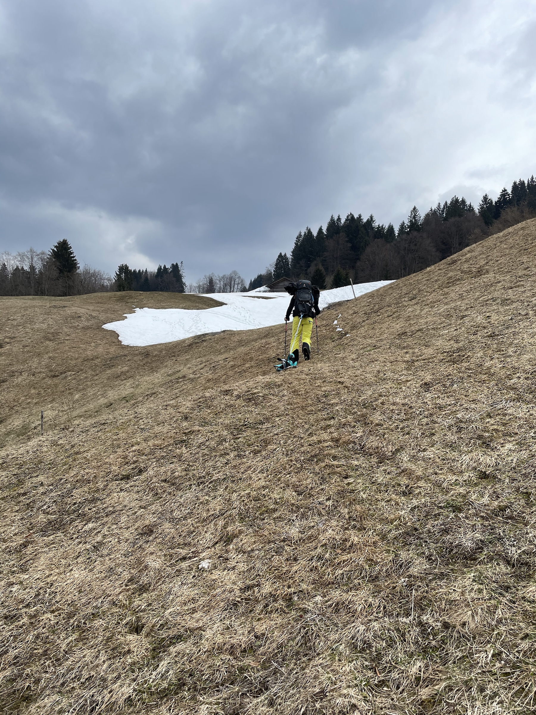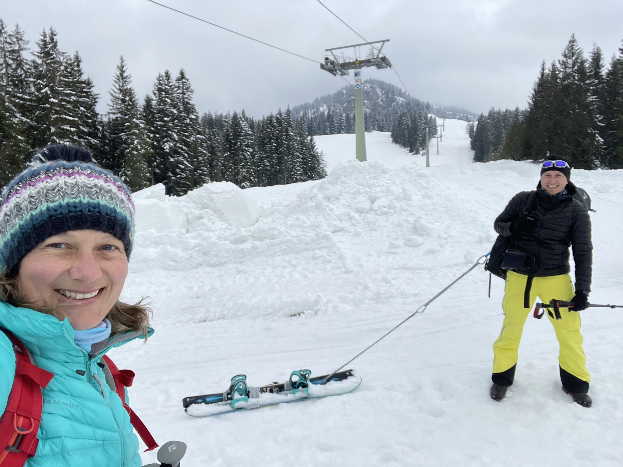We were supposed to go hiking but there was still so much snow here that we thought: let’s go skiing! All lifts are closed and we don’t have proper skitour equipment but we hiked up, Marcin pulling my skis on top of his snowboard – it worked! Weather did not exactly cooperate (got cloudy so we missed the top views) but most importantly, there was still enough snow left so we could ski all the way down to the parking! Skiing in Germany mid of April – made possible! 😎