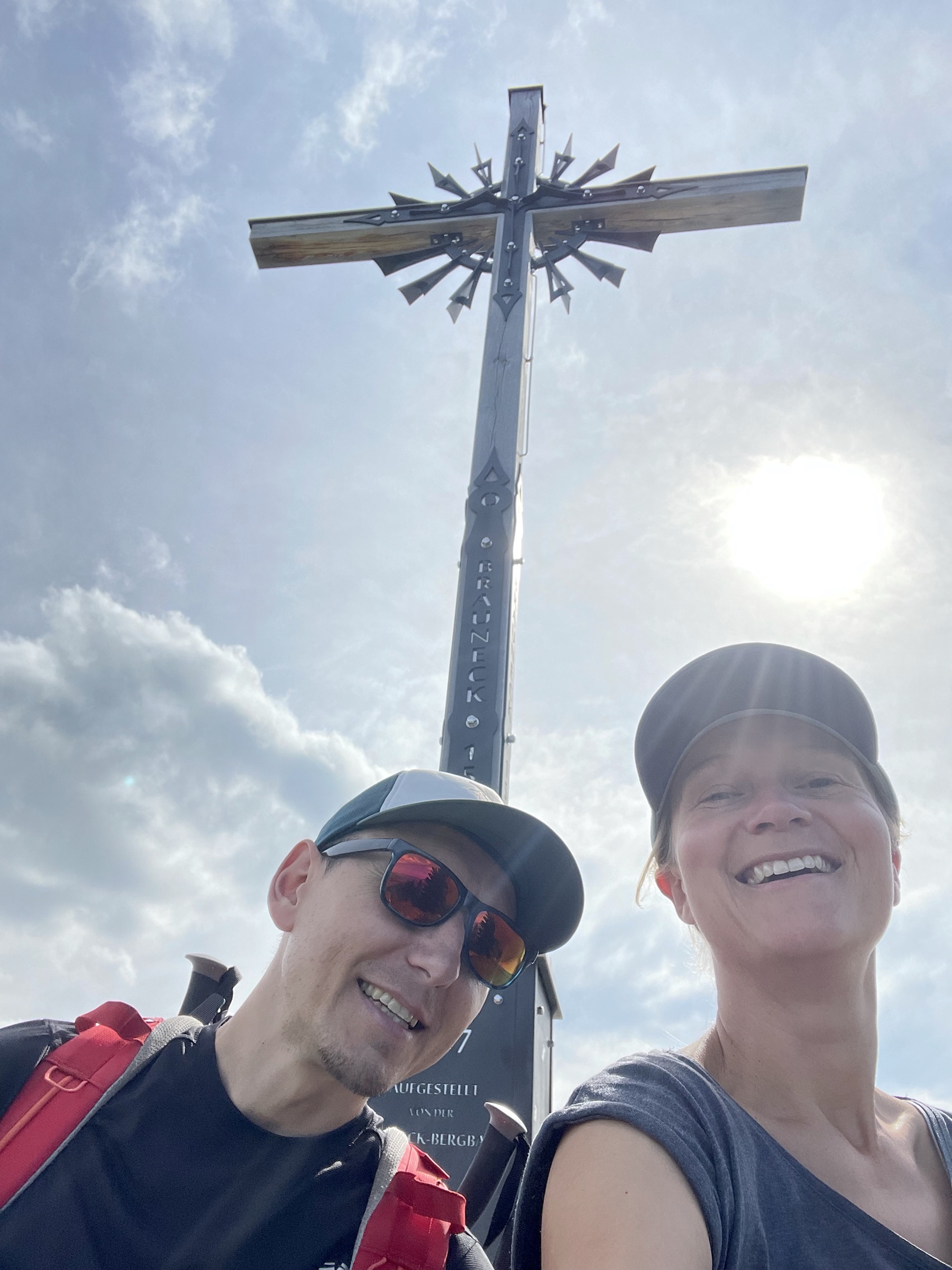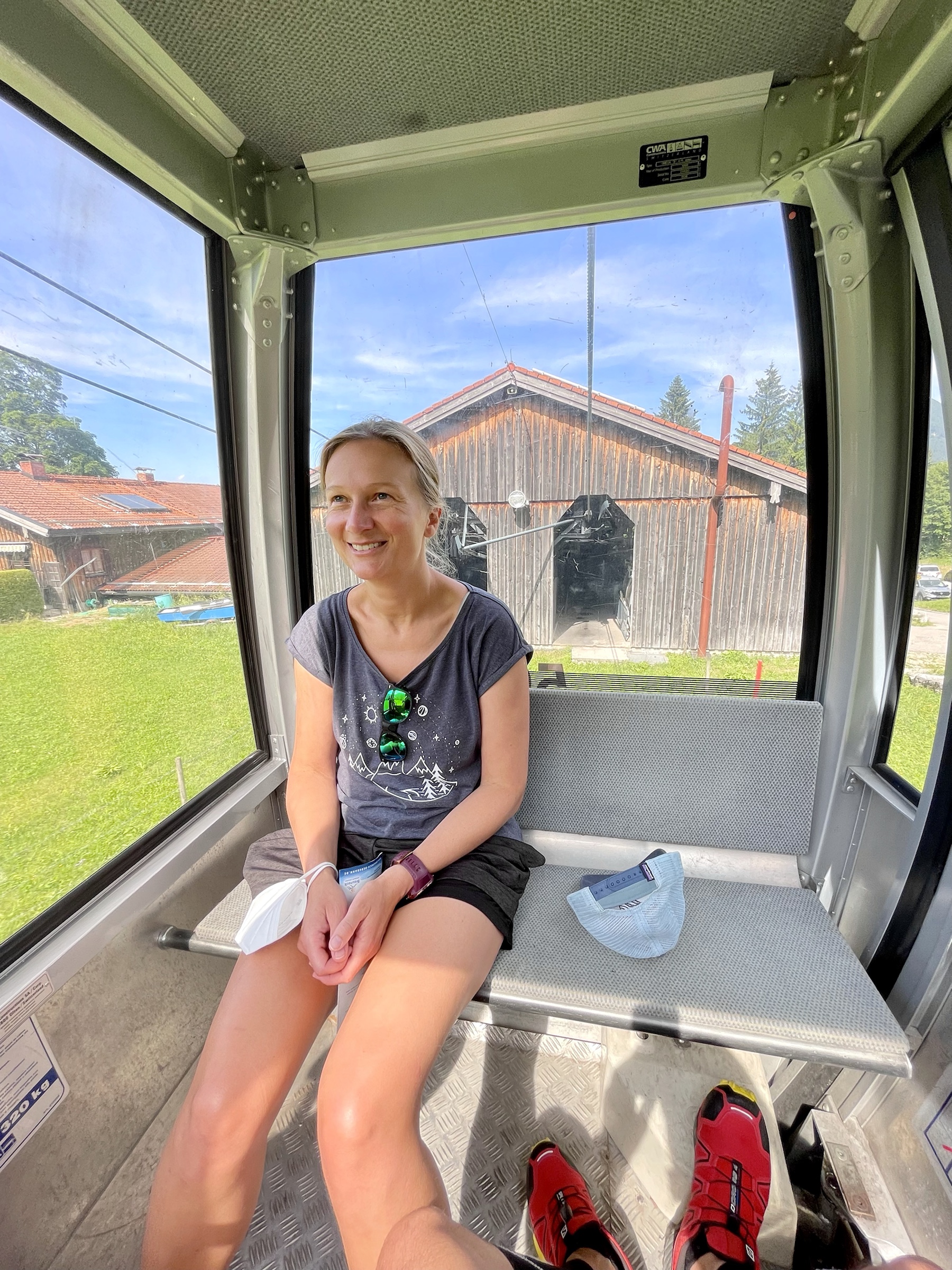 Emerycka sobotka, gdyż niewyspana i przycięta w ramach efektu poszczepionkowego, zdaj się. Ale, pogoda piękna, sobotnie okienko, zatem trza się wybrać w góry! Oryginalnie mieliśmy wejść na Brauneck, ale skoro kolejka jeszcze jeździ o 16, to czemu z niej niej nie skorzystać… 😉 Zatem, rachu ciachu i jesteśmy u góry!