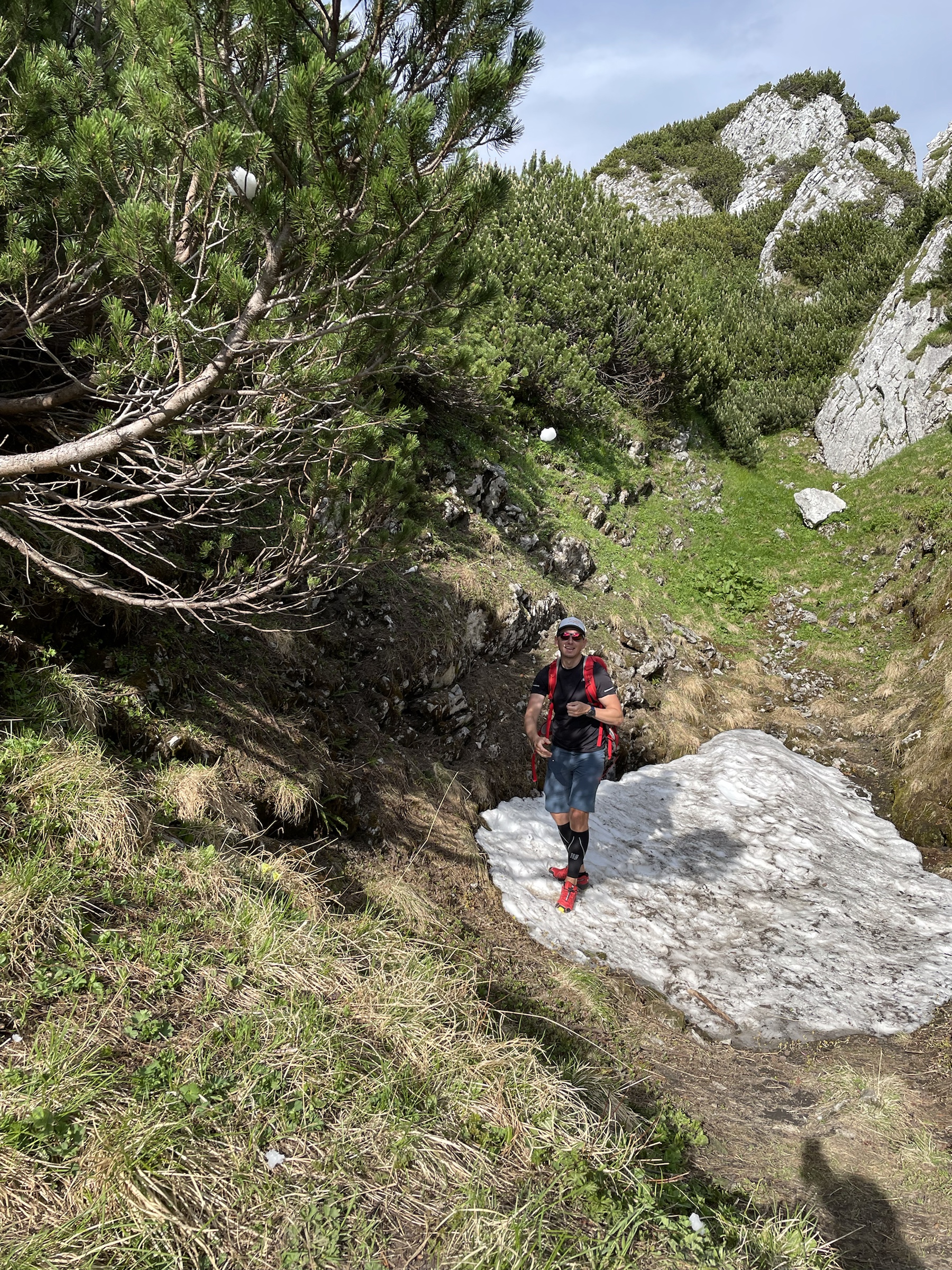 Po 1h15 rozsiadamy się na Latschenkopf. Kolejka już dawno zamknięta, więc ludzi brak. Wsuwamy, co mamy i zbieramy się w drogę powrotną, z małym przystankiem w Quenger Alm.