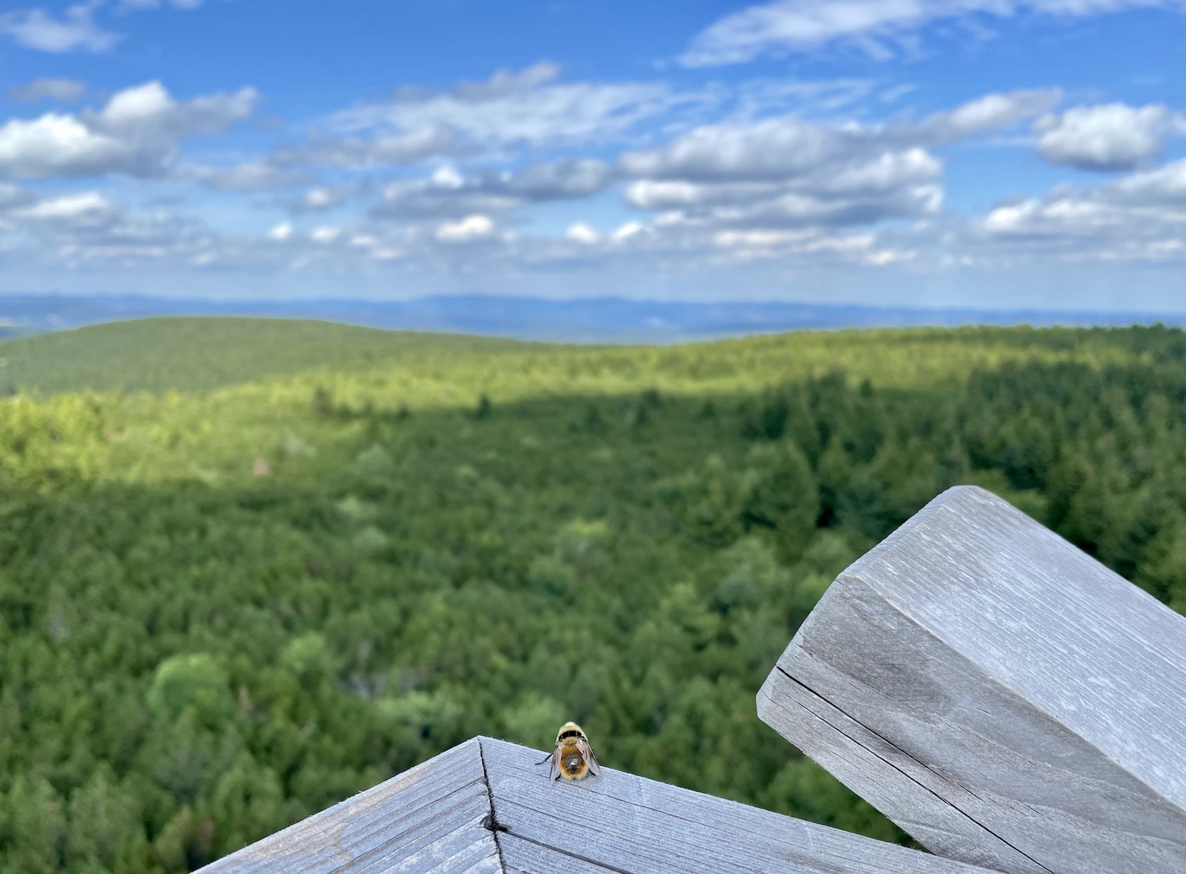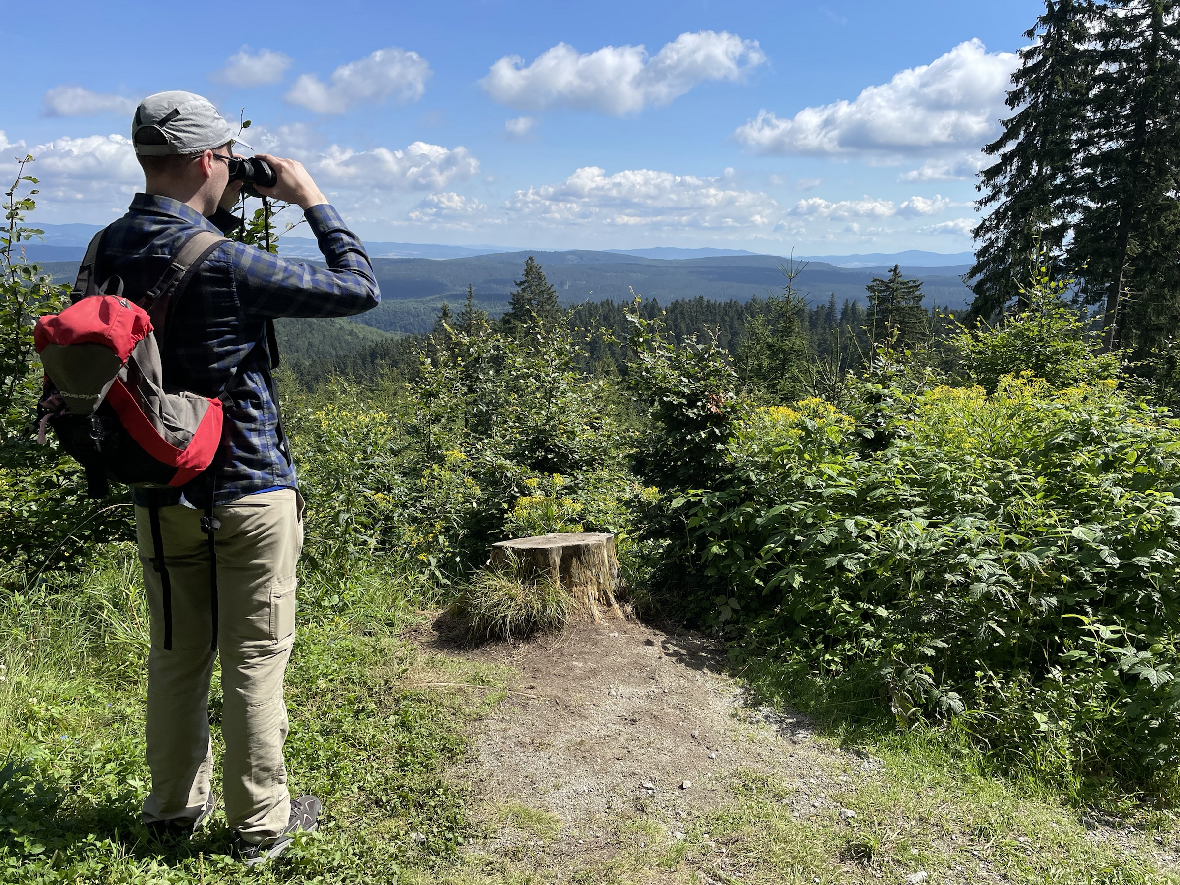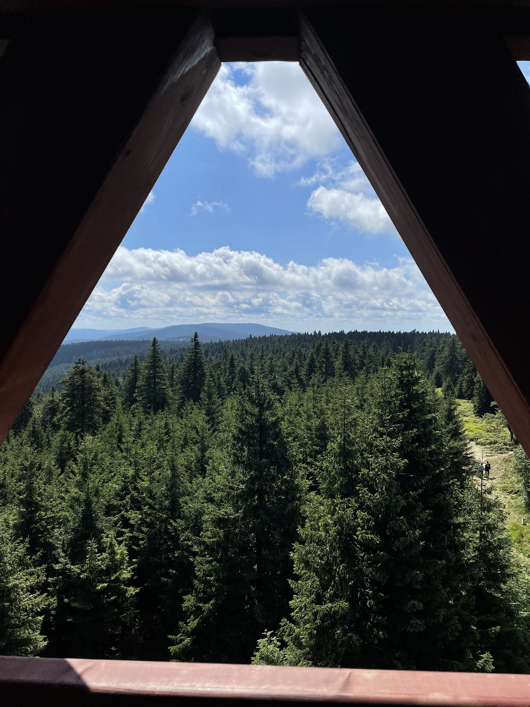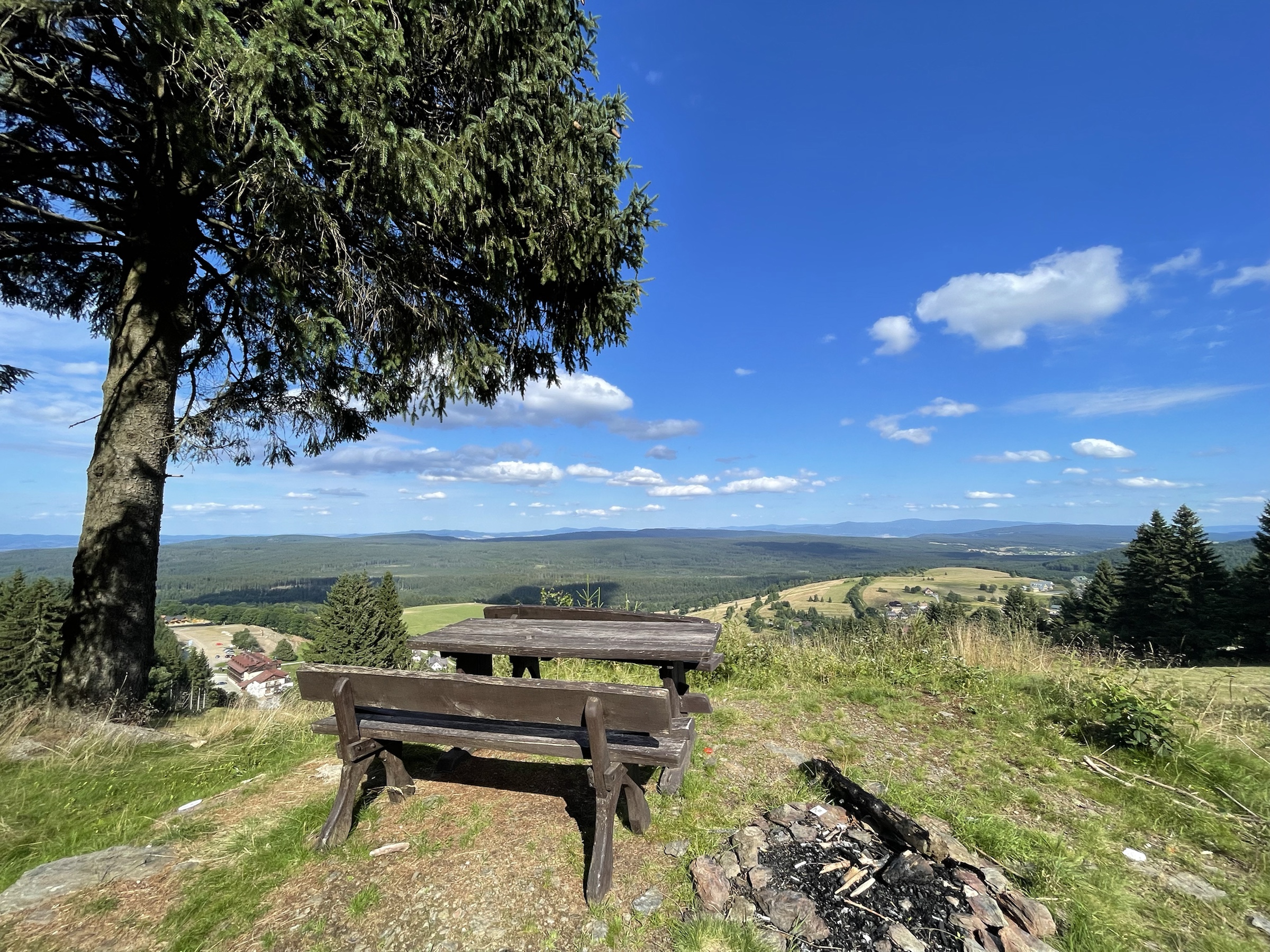 A że z Chaty już tylko 3.5km na Wielką Desztną, to poszliśmy i tam – gdyż tam też piękna nowa wieża (to jakiś lokalny fenomen: w Alpach na każdej górce krzyż, w Sudetach wieża 😉 ) Na ostatnim pietrze wieży odpoczywają pszczółki 🙂 Z powrotem poszliśmy prawie tą samą trasą: najpierw do Masarykovej Chaty, a potem rownolegle i w dół pod ostatnim wyciągiem – przepiękne widokowy punkt ze stołem i miejscem na ognisko! Jeszcze obiad w Przystanku Alaska z mega widokiem na Góry Sowie i po prawie 18km w nogach ruszamy do domu ☺️
