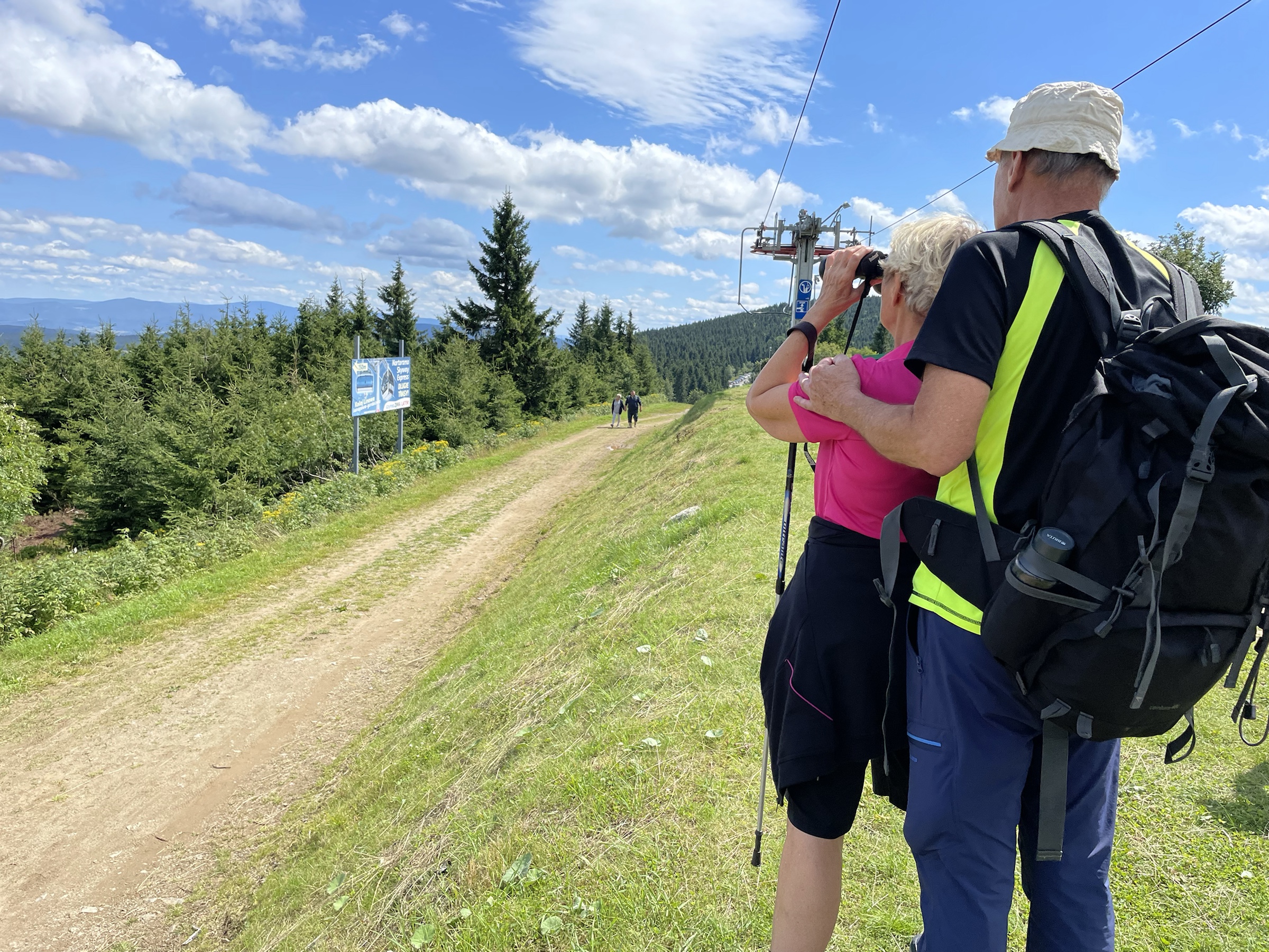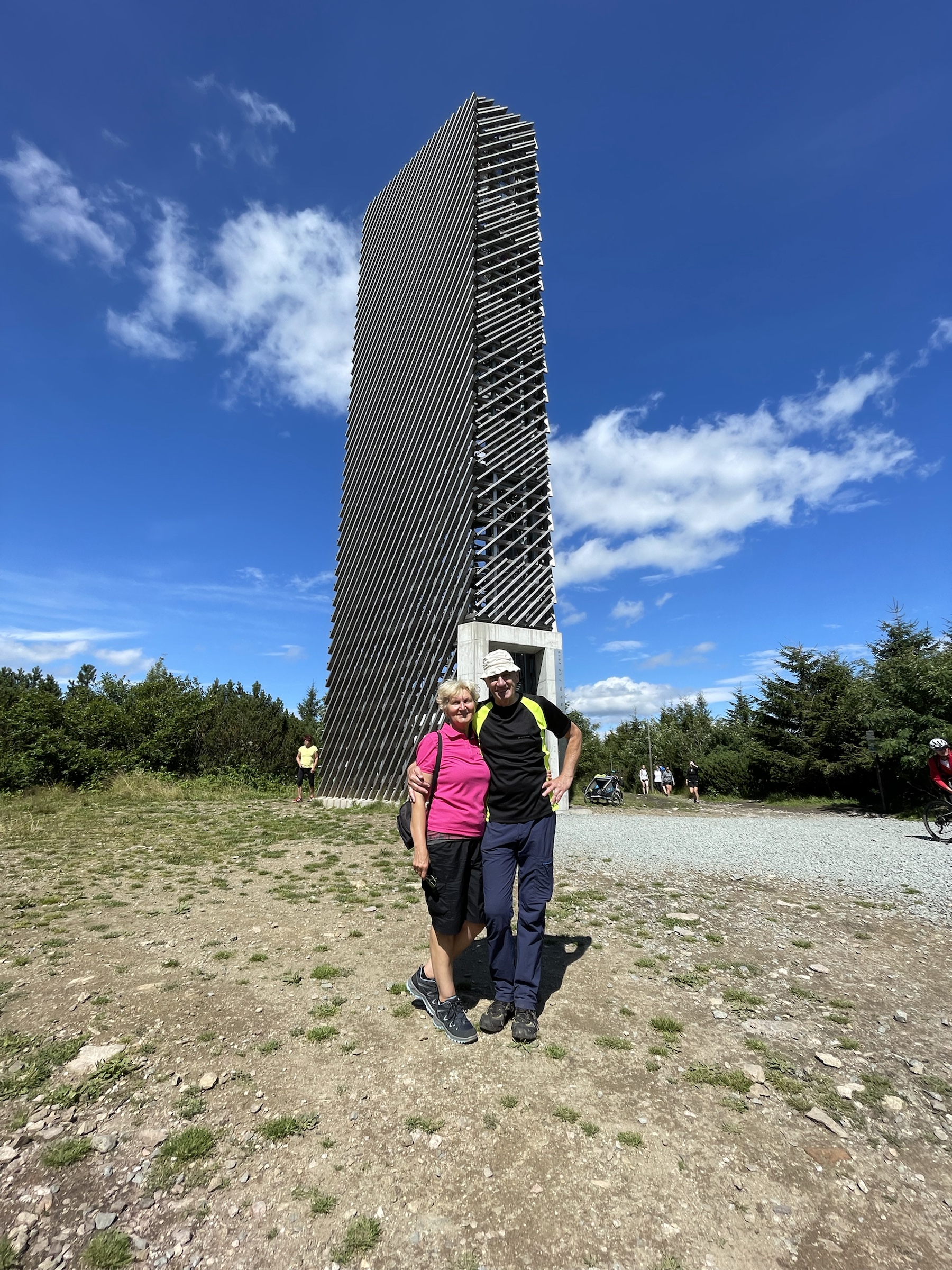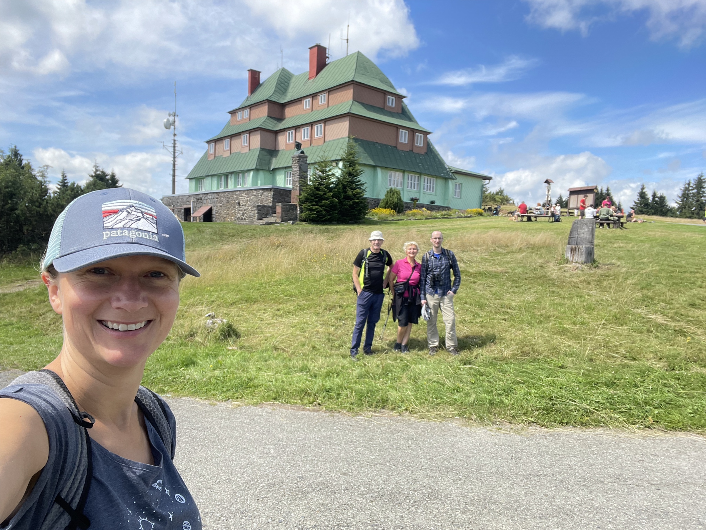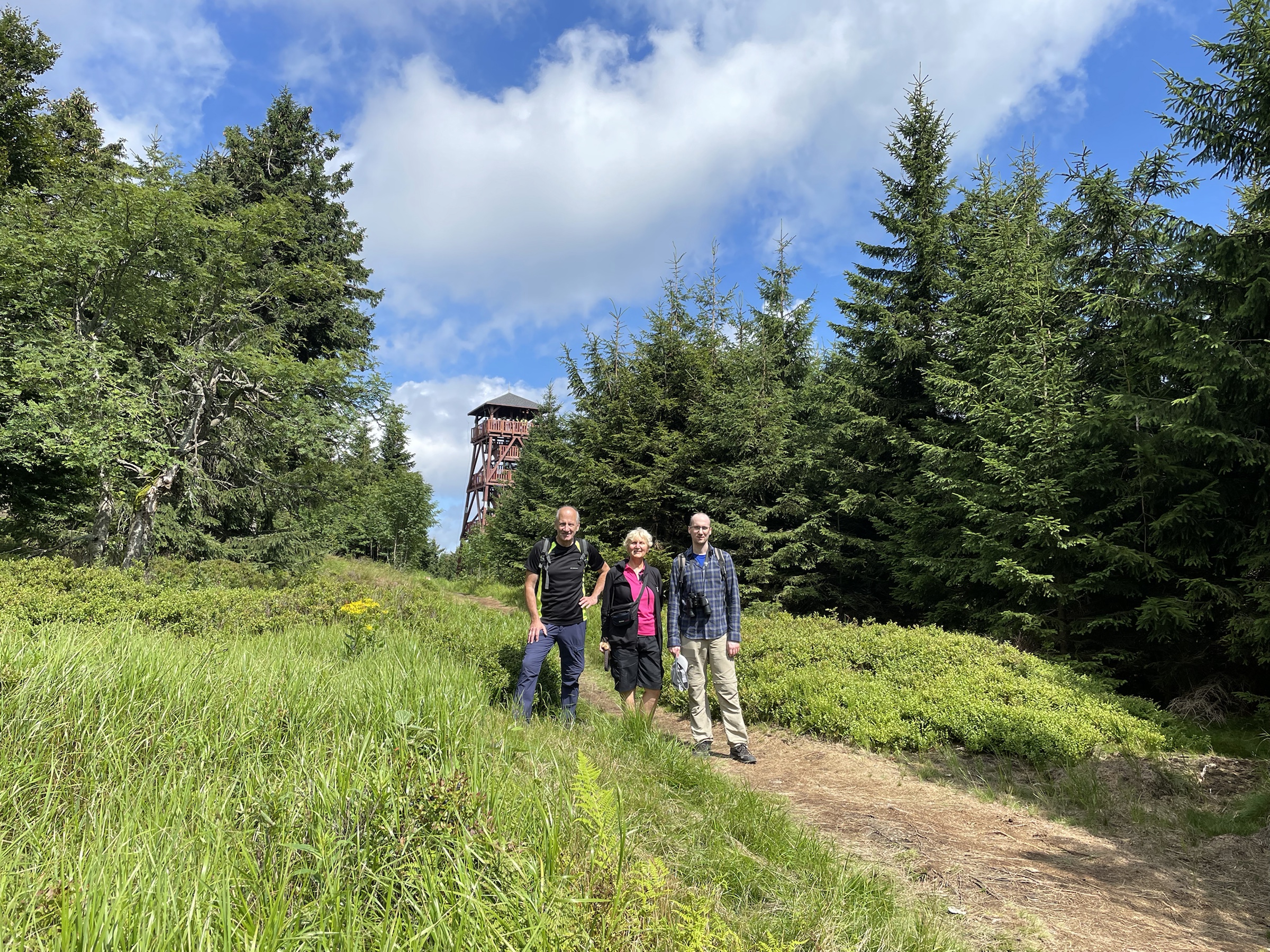 Rodzinna sobotka! Pojechaliśmy do Zieleńca, gdzie nie byłam już z 10 lat. Cała Kotlina Kłodzka jest piękna i zawsze, jak jestem w PL to zachwyca mnie urok tej okolicy. Pięknie mieszkamy! Tata zaproponował wyprawę na Orlicę – gdyż niedawno otwarto tam nową wieżę – bardzo ładna, owszem. Stamtąd spacerkiem to Masarykovej Chaty przez granatowe jagodziska – mnóstwo jagód!