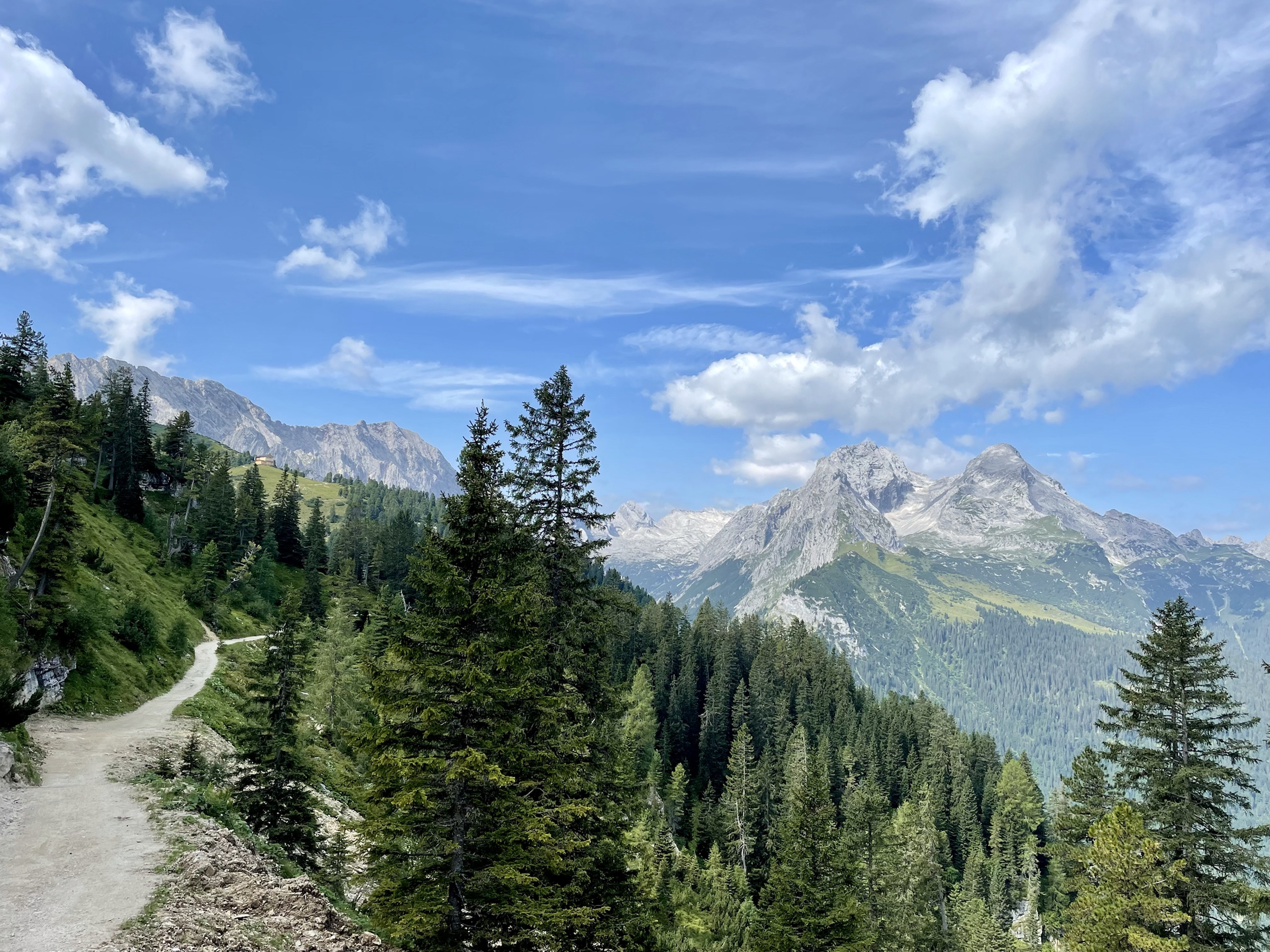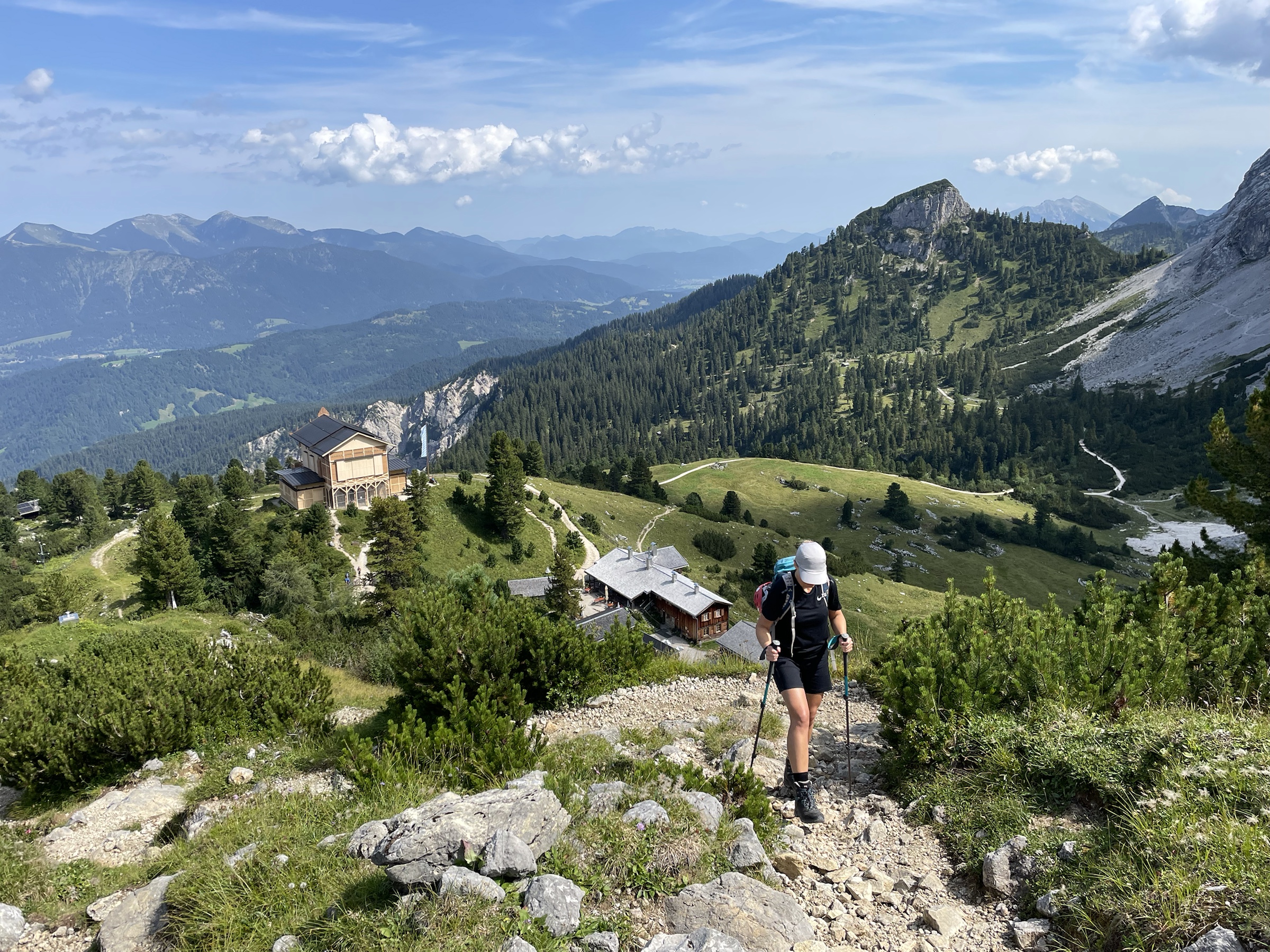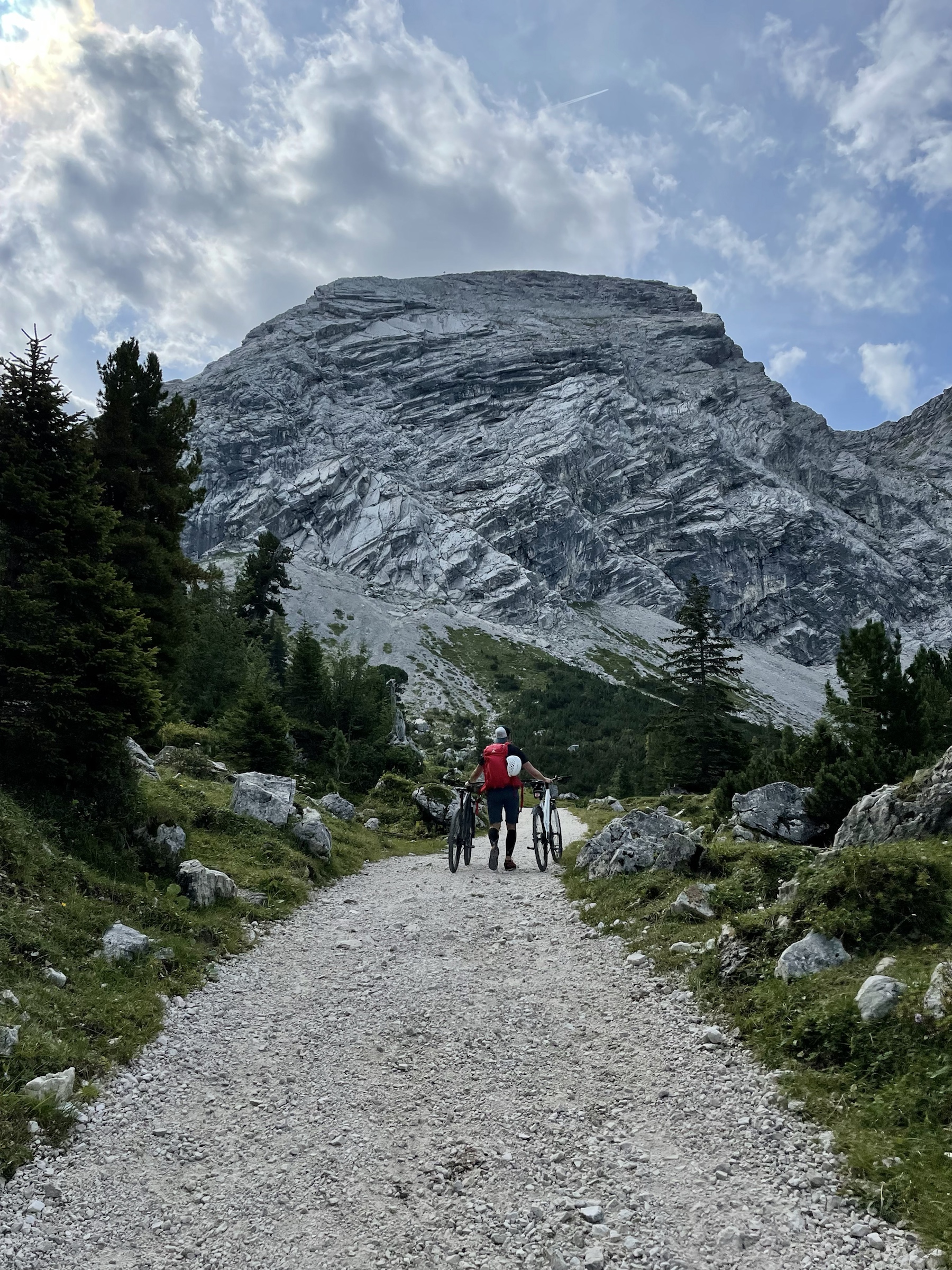 Miał być Partenkirchner Dreitorspitze, ale jak już dotarliśmy do Schachenhaus, przez większą połowę drogi pchając rowery (liczba mnoga dla niepoznaki – pchał M.) i stamtąd powoli doszliśmy do Meilerhütte, to się okazało, że chyba tyle będzie na dziś osiągnięć 😉 Nie w smak mi było zmieniać plany, nie lubię bardzo, ale wycieczka i tak była przepiękna! Pogoda do fotek idealna (te chmury!), temperatura w sam raz, Schachenhaus bardzo ładnie ulokowany (Ludwik miał świetne oko) no i zjazd w dół – bajka! A na drugi dzień mała Italia w Seefeld. Gdyby nie moje fochy po drodze, to by była piękna wycieczka 😉
