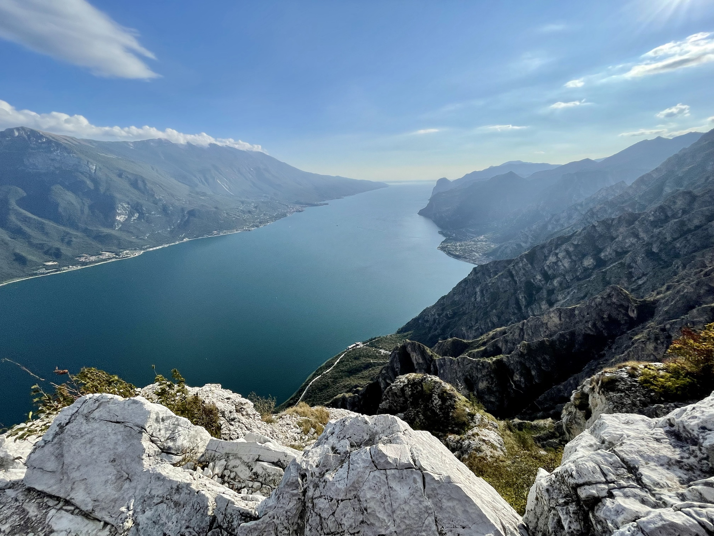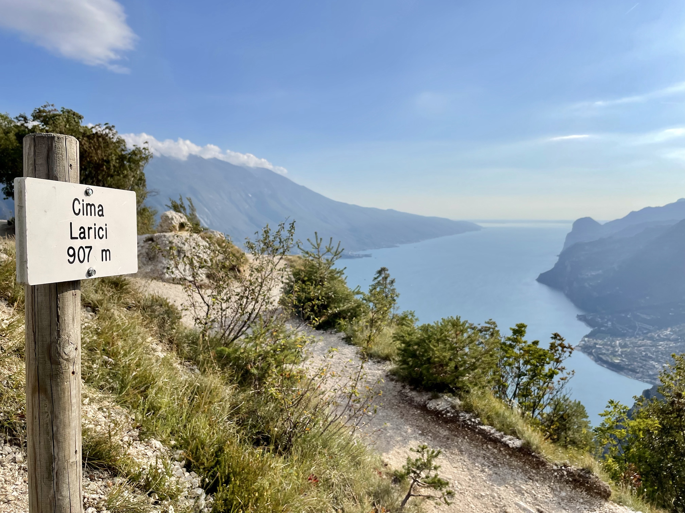 Free Friday afternoon at Garda, absolutely perfect hiking weather: sunny, windy but still warm so off I go to see if the tour to Punta Larici is as spectacular as they say – eg. here https://www.alpinegardaholiday.it/en/blog/punta-larici-a-fascinating-view-suspended-between-lake-garda-and-the-ledro-valley/