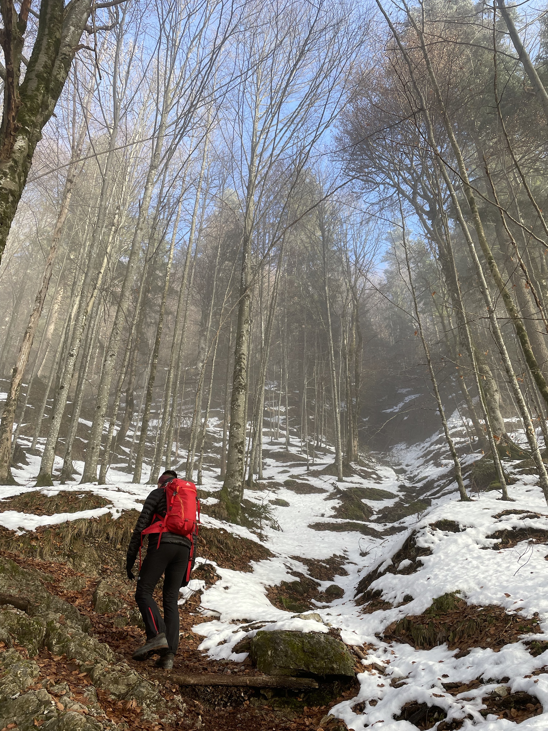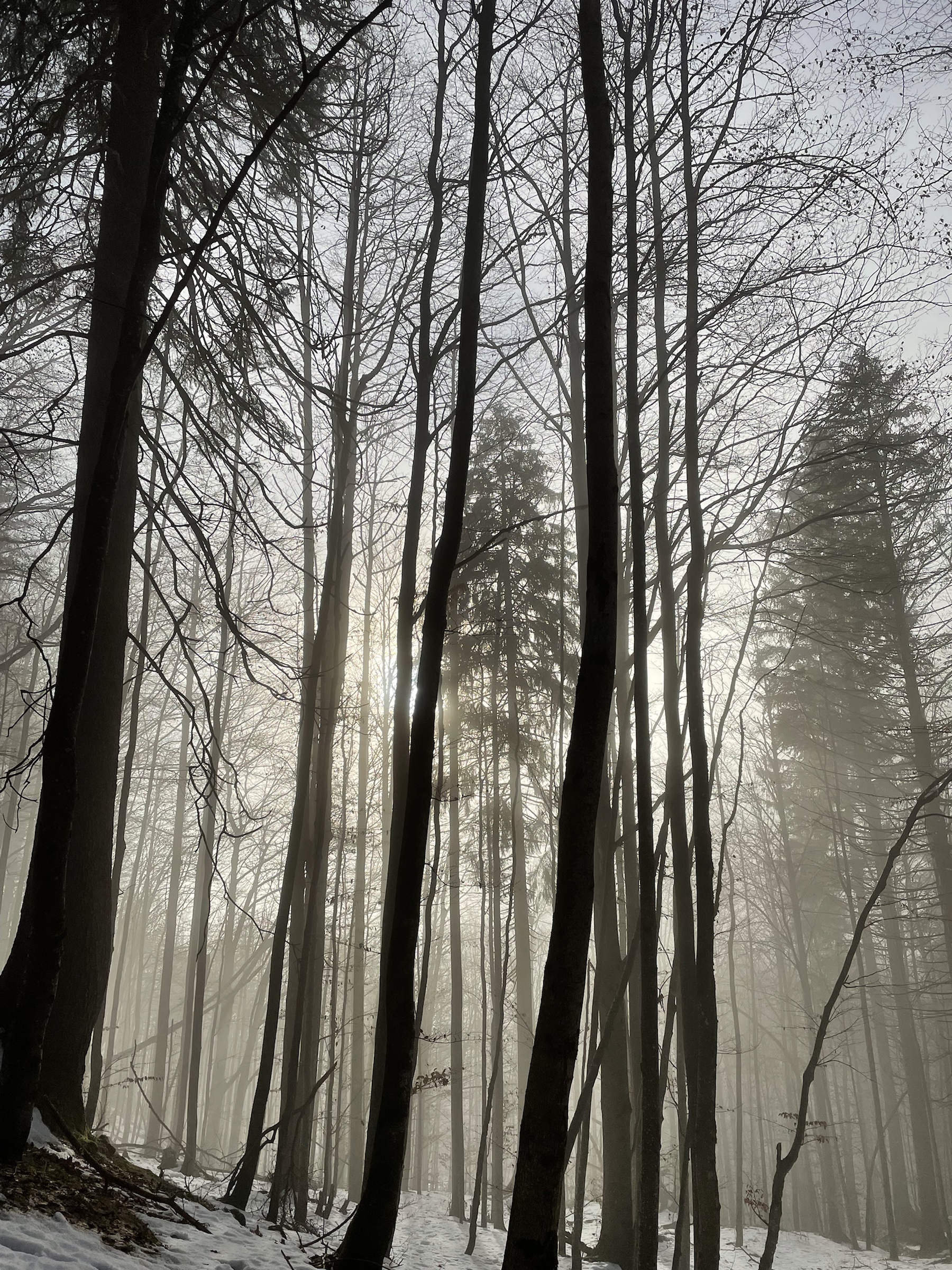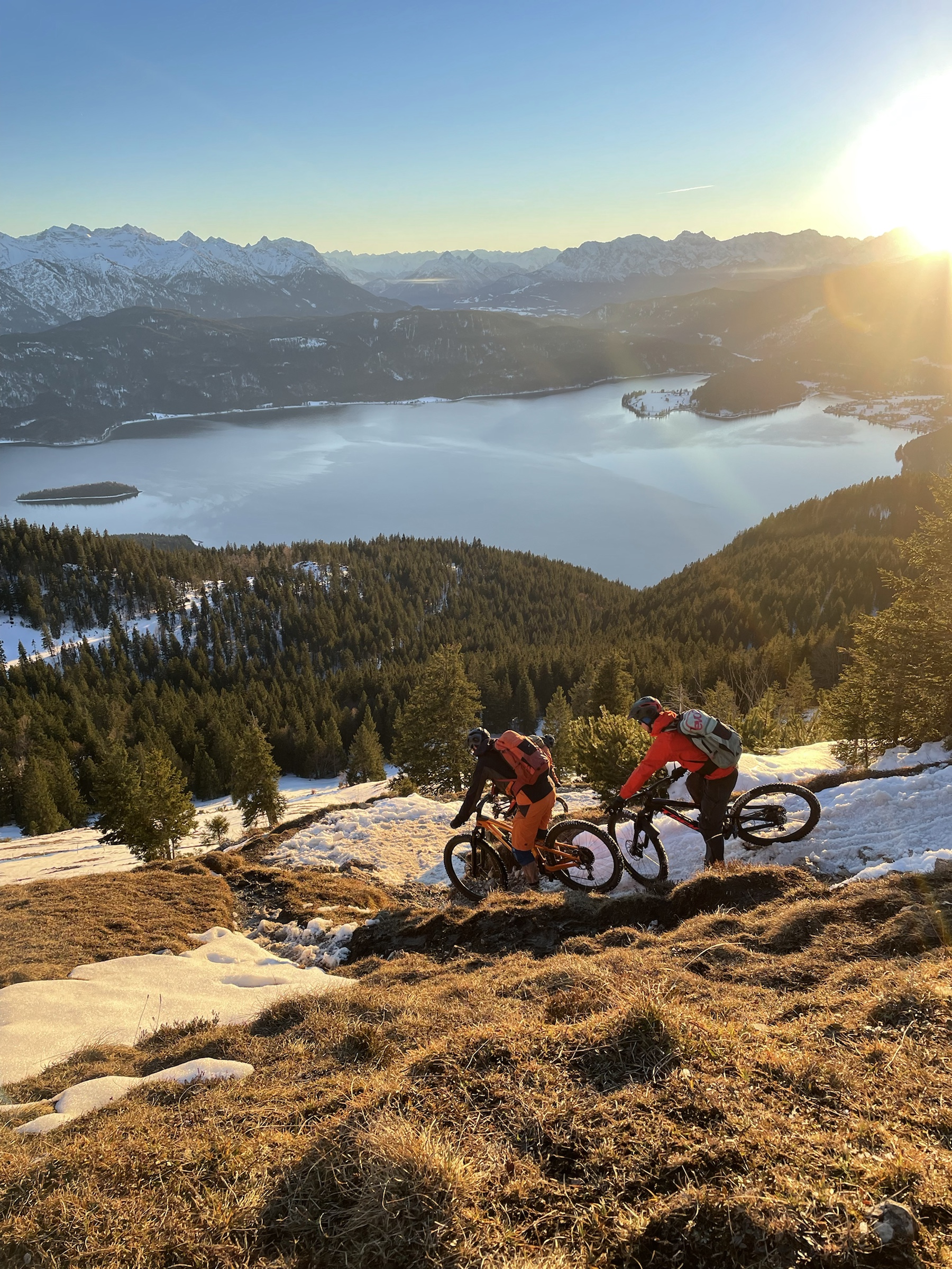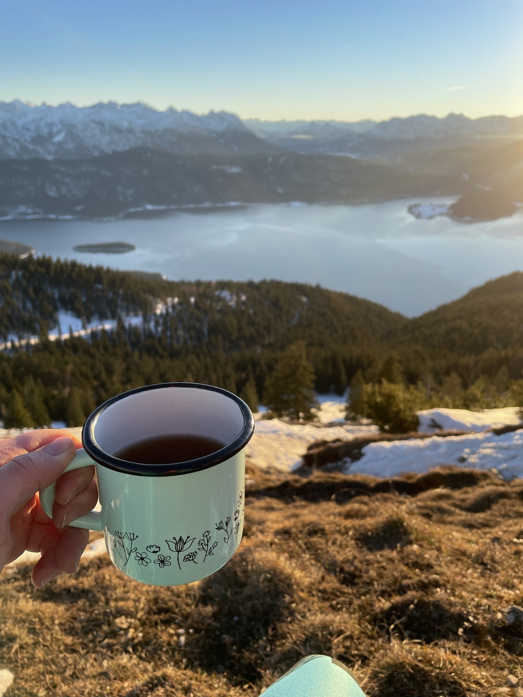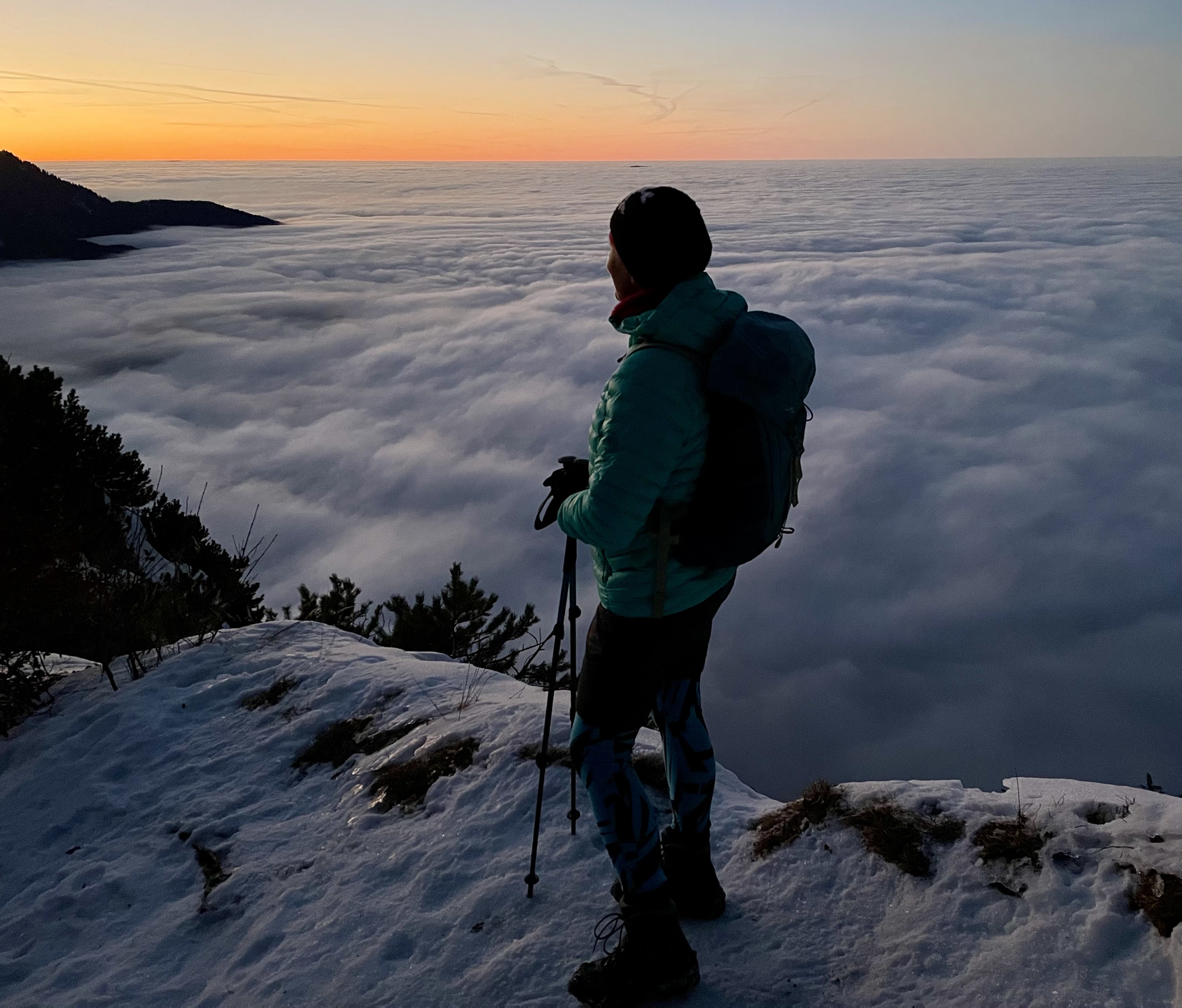 Ostatnia sobotka przed świętami, czyli przed wyjazdem do PL. Monachium znowu pod grubą kołdrą z chmur, a kamerki w górach pokazują błękit i słońce, zatem ruszamy na zachód słońca! Nie wysilam się zupełnie z planowaniem, bo ostatni tydzień w robocie mie nieco przeczołgał i po prostu jedziemy na Jochberg 🙂 Już za Starnbergiem wychodzi słońce, ale zjeżdżając z bany na Kochel wjeżdżamy w chmurę i im dalej, tym gorzej… Ale przekonuje M., że na Kesselberg będzie na pewno dużo lepiej i faktycznie po pierwszych metrach w górę wychodzimy ponad chmury 🙂 Początek powolny, bo oboje jesteśmy cokolwiek zmęczeni, ale szybko narzucam tempo, gdyż oczywiście jesteśmy na niedoczasie, a ja koniecznie chce posiedzieć chwilę w słońcu. Zatem, zasuwamy! Po wyjściu z lasu robimy piknik z widokiem na zachodzące słońce – zdążyliśmy 🙂 A po zachodzie idziemy jeszcze do krzyża, gdzie miły pan zupełnie nieproszony robi nam fotkę z księżycem. Kolory bajeczne, jak podczas naszego 1go zachodu na Rotwand. Jochberg nie rozczarowywuje: mała górka z wielkim widokiem! Uwielbiam góry po zachodzie słońca: te kolory, cisza i niczym niezmącone piękno. I mimo tego, że to popularna trasa, mam wrażenie, jakby to wszystko było tylko dla mnie – zwłaszcza, podczas schodzenia po ciemku i cichutku, zanim trzeba odpalić czołówkę. Cudne zakończenie roku 😍