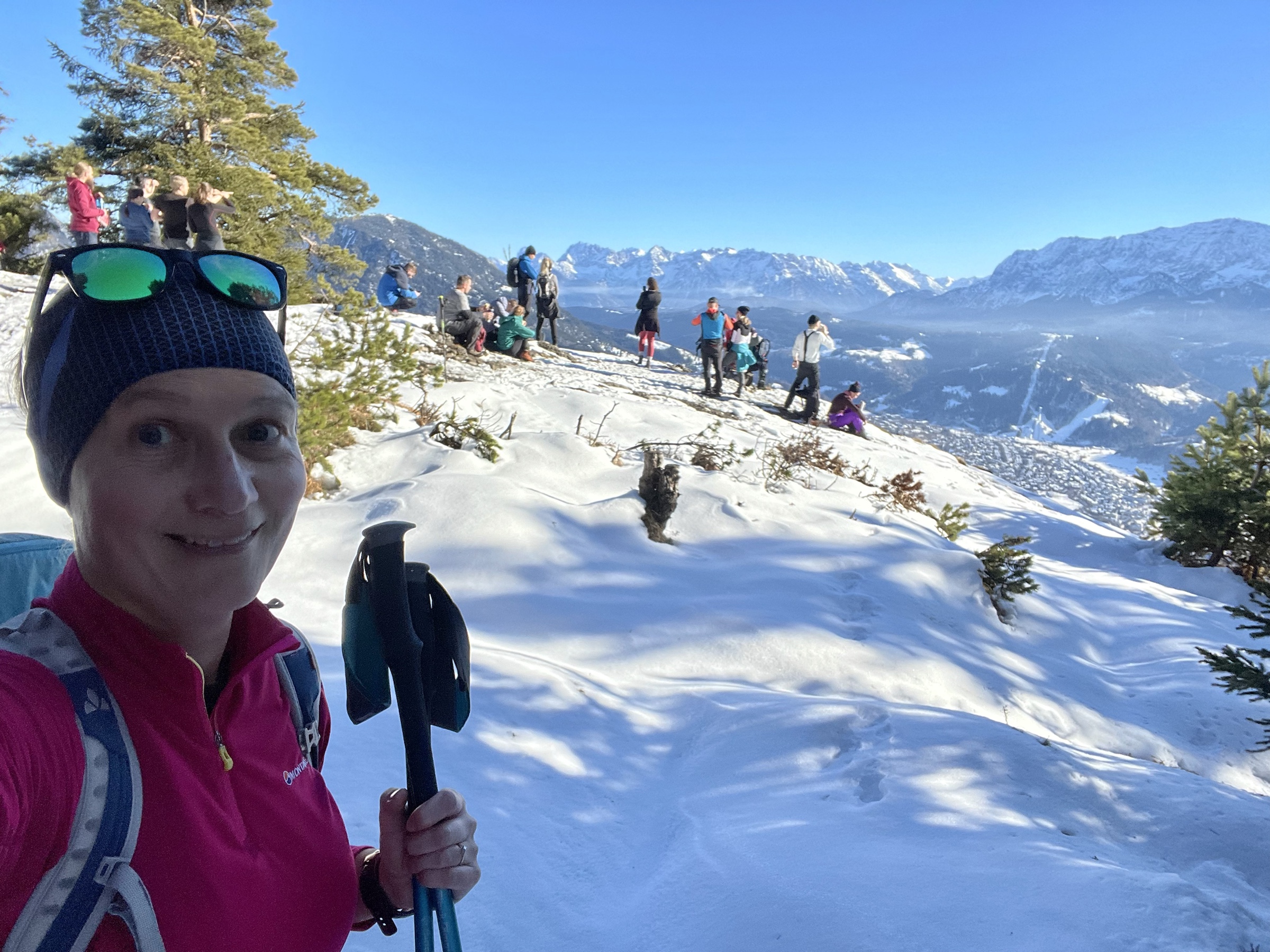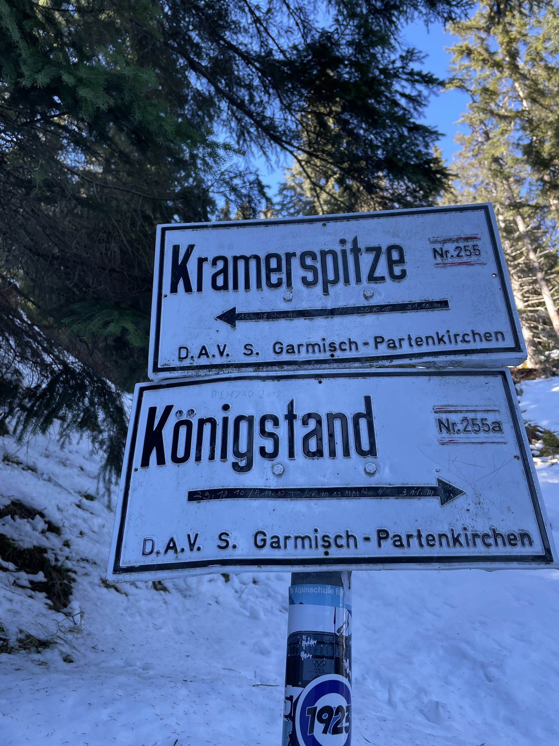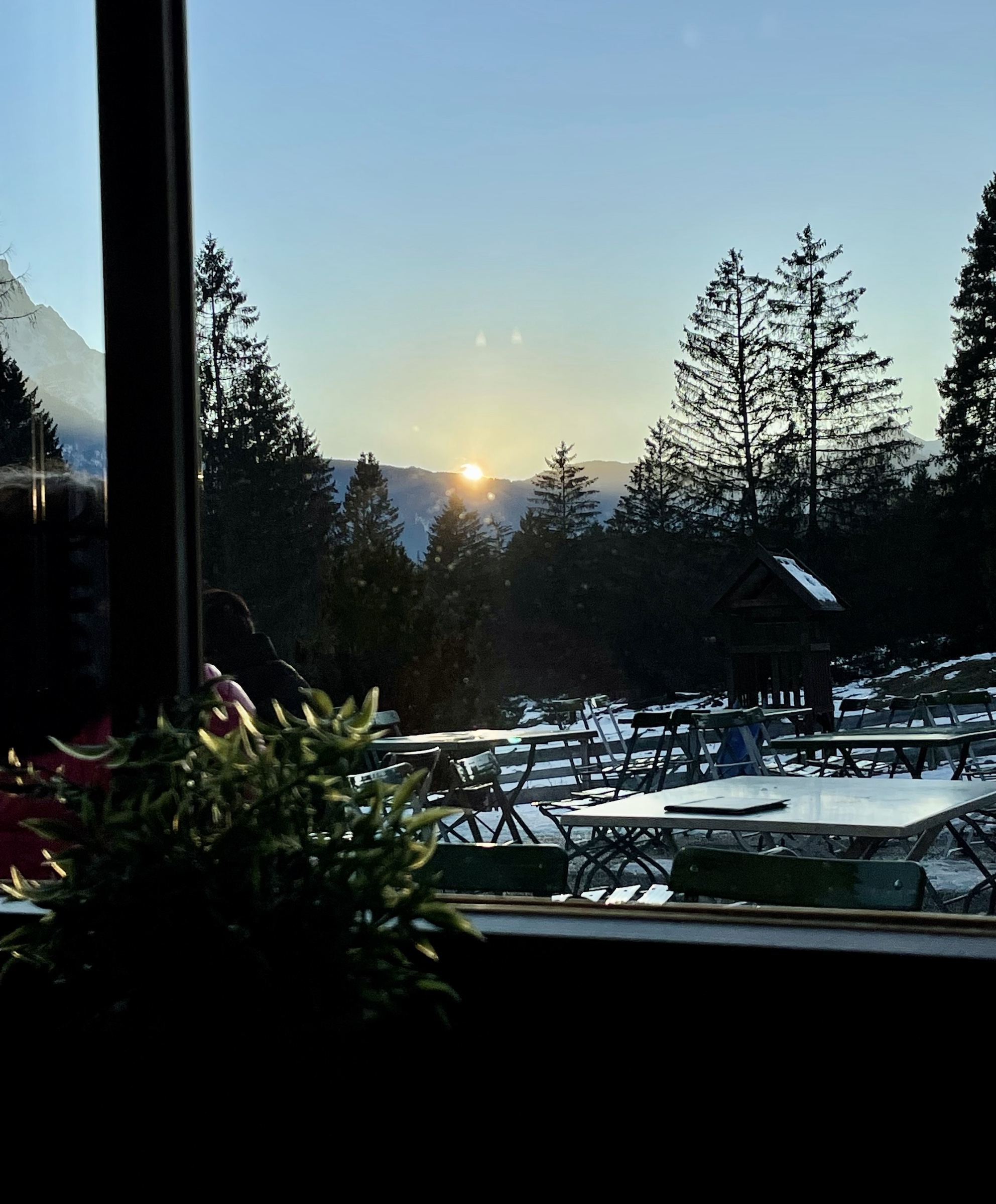 Miał być Kramer, gdyż od dawna na liście. Ale przy śniadaniu gospodarz postanowił absolutnie odwieść mnie od tego pomysłu: pani, na Kramer to najwcześniej w maju! Po co tam teraz łazić! W lecie to tak, ale teraz? No po co. No dobra, ok: wysłuchałam i i tak poszłam w tamtym kierunku 😂 Kawałek po kawałku: najpierw Felsenkanzel, potem decyzja czy Kramer czy Königsstand i padło jednak na to drugie. Tam spotkałam Maggie z youareanadventureatory, która jeszcze miała Kramera w planach (i faktycznie jeszcze zdążyła na niego wbiec!) a potem zagadałam pana, który do Kramera nie dotarł, ale za to nakierował mnie na cudną sekretną ławeczkę, gdzie poczillowałam w słońcu i był to absolutny highlight wycieczki – na Königsstand za dużo ludzi. Potem humor zepsuł mi szef St. Martins Huette, który mnie pogonił z knajpy, gdyż jakoby nie zezwala na siedzenie w środku, konsumpcja tylko na zewnątrz, więc zawinęłam się na pięcie i poszłam sobie całkiem! I zjadłam w Berggasthof Almhuette, gdzie kiedyś koniecznie trzeba wrócić na Windbeutel! Epicki deser. 15km w nogach, calusi dzień na słońcu: cudna sobotka 😍