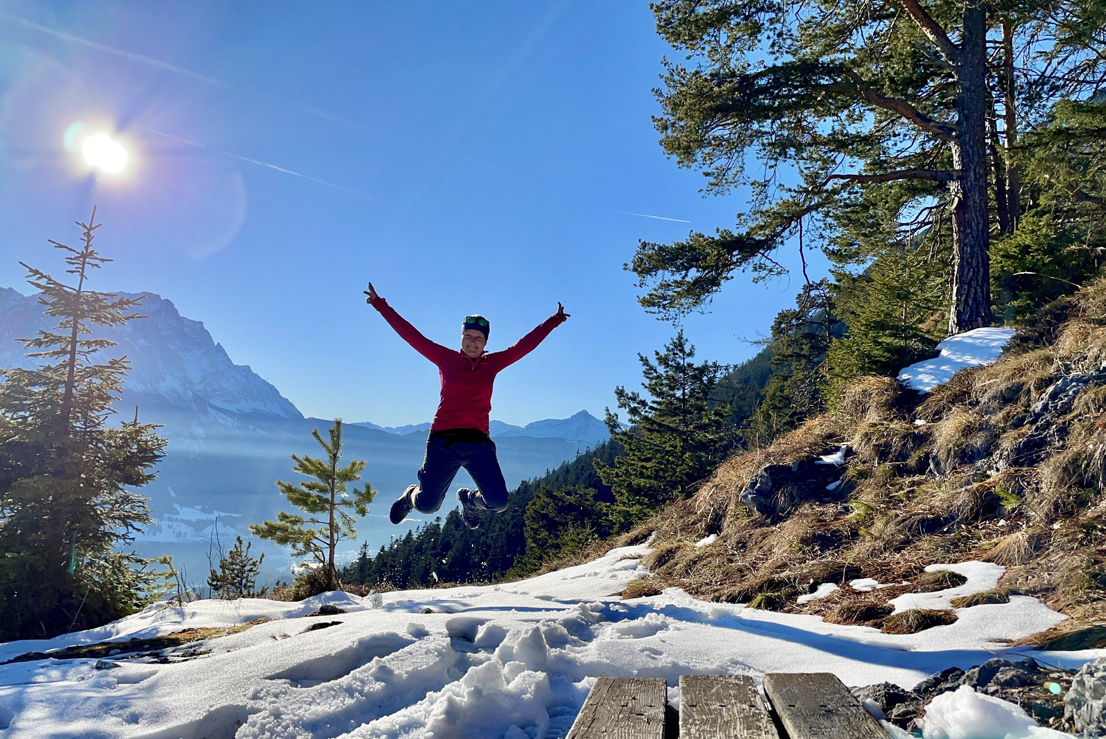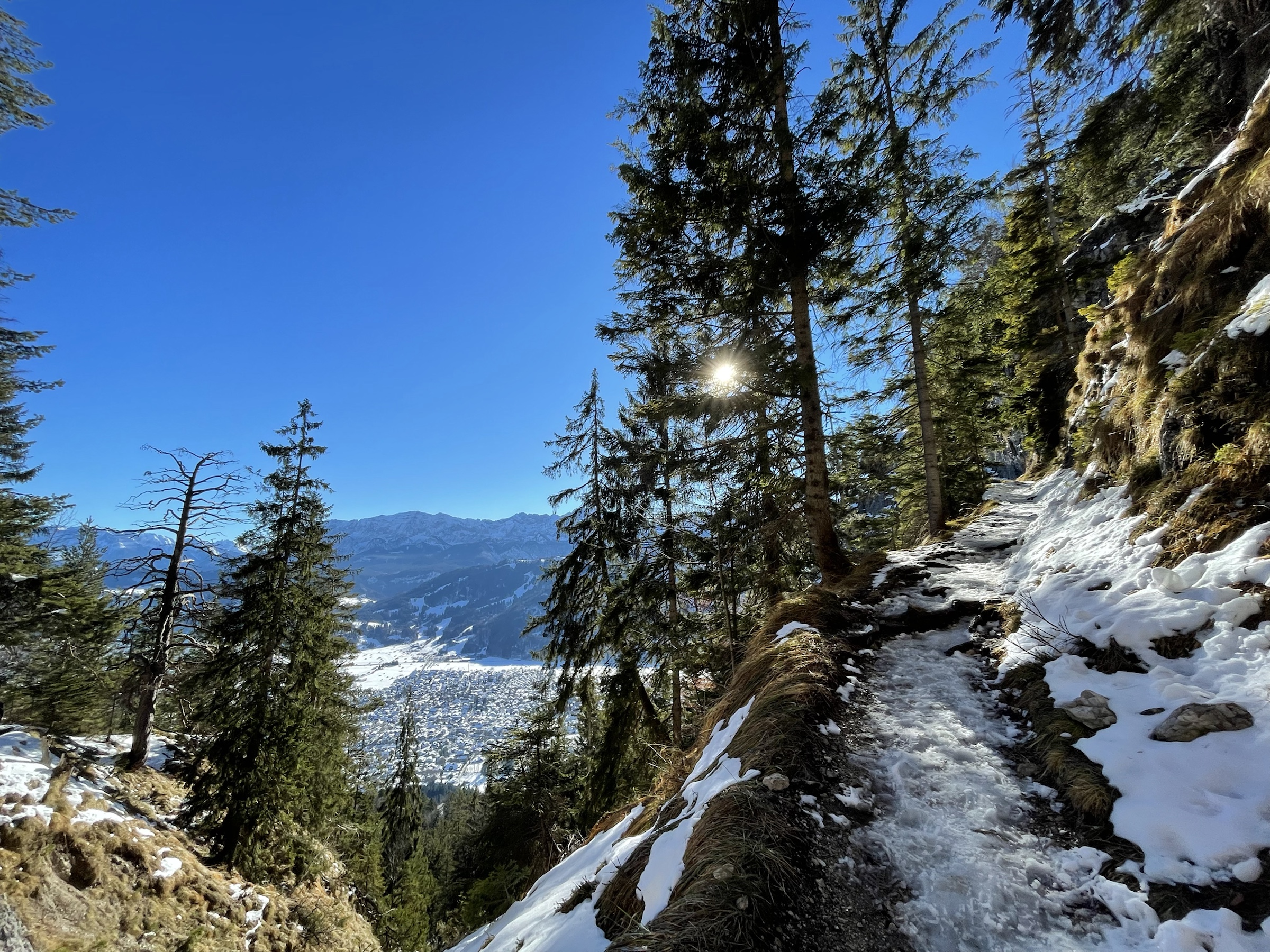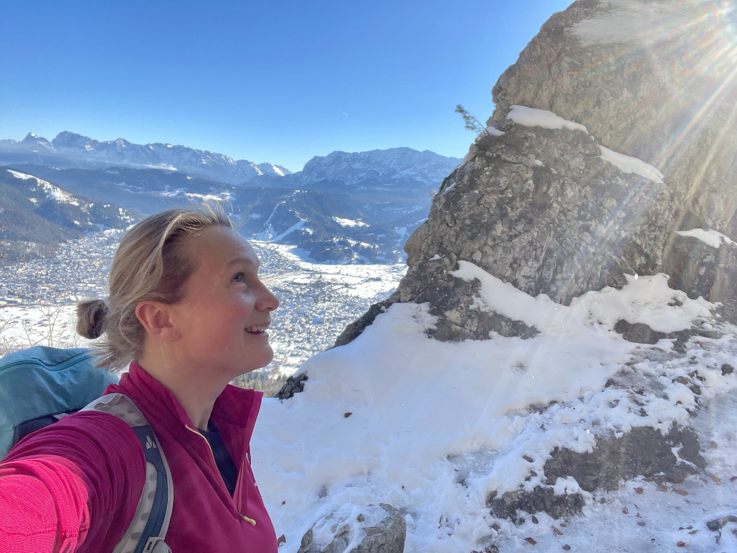 Miał być Kramer, gdyż od dawna na liście. Ale przy śniadaniu gospodarz postanowił absolutnie odwieść mnie od tego pomysłu: pani, na Kramer to najwcześniej w maju! Po co tam teraz łazić! W lecie to tak, ale teraz? No po co. No dobra, ok: wysłuchałam i i tak poszłam w tamtym kierunku 😂 Kawałek po kawałku: najpierw Felsenkanzel, potem decyzja czy Kramer czy Königsstand i padło jednak na to drugie. Tam spotkałam Maggie z youareanadventureatory, która jeszcze miała Kramera w planach (i faktycznie jeszcze zdążyła na niego wbiec!) a potem zagadałam pana, który do Kramera nie dotarł, ale za to nakierował mnie na cudną sekretną ławeczkę, gdzie poczillowałam w słońcu i był to absolutny highlight wycieczki – na Königsstand za dużo ludzi. Potem humor zepsuł mi szef St. Martins Huette, który mnie pogonił z knajpy, gdyż jakoby nie zezwala na siedzenie w środku, konsumpcja tylko na zewnątrz, więc zawinęłam się na pięcie i poszłam sobie całkiem! I zjadłam w Berggasthof Almhuette, gdzie kiedyś koniecznie trzeba wrócić na Windbeutel! Epicki deser. 15km w nogach, calusi dzień na słońcu: cudna sobotka 😍