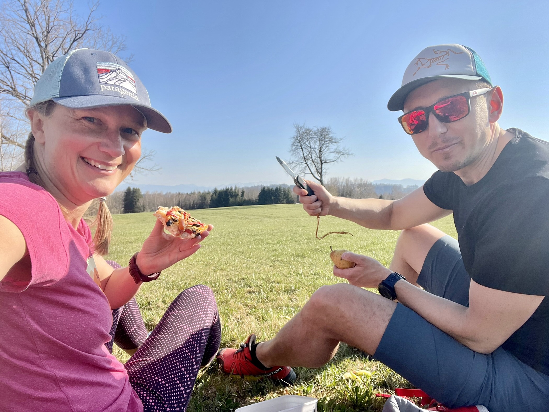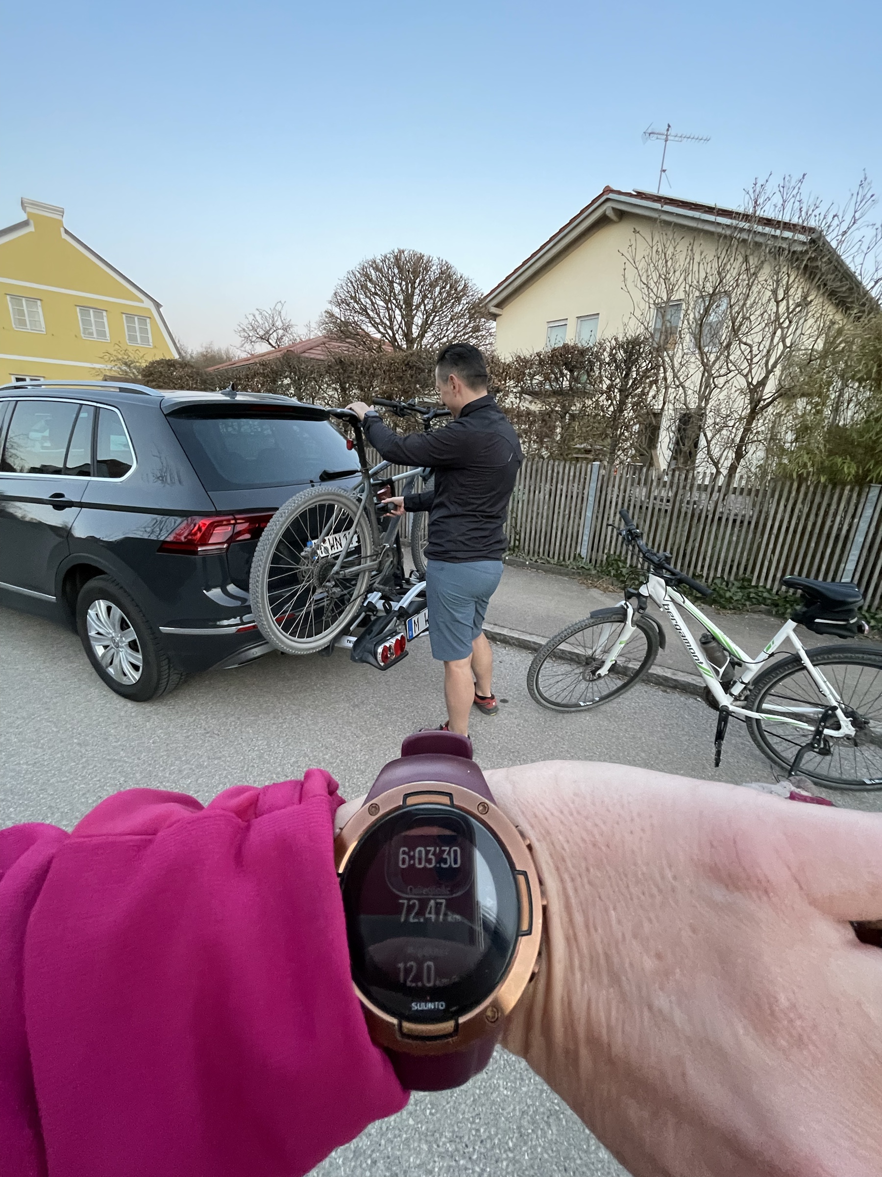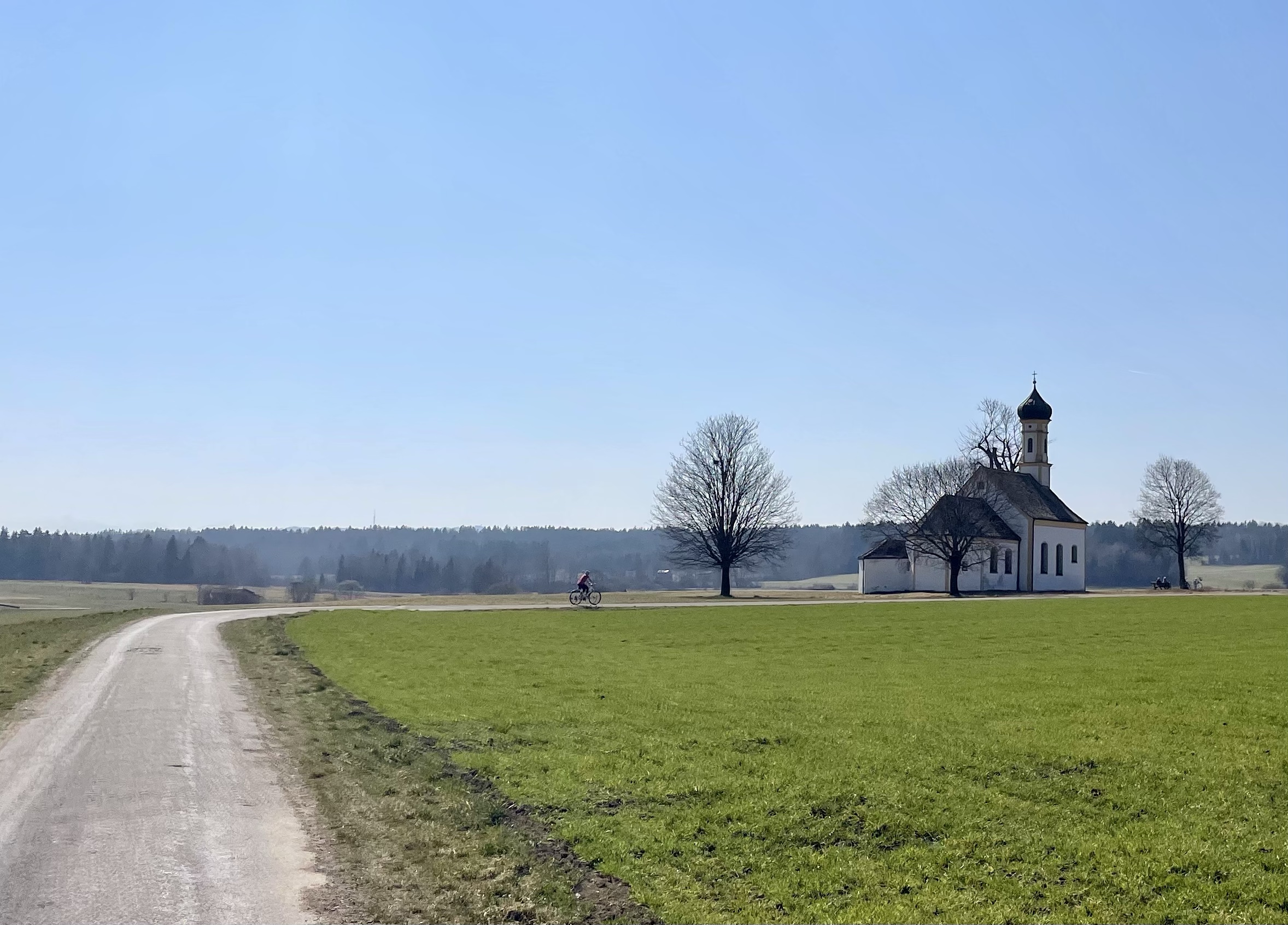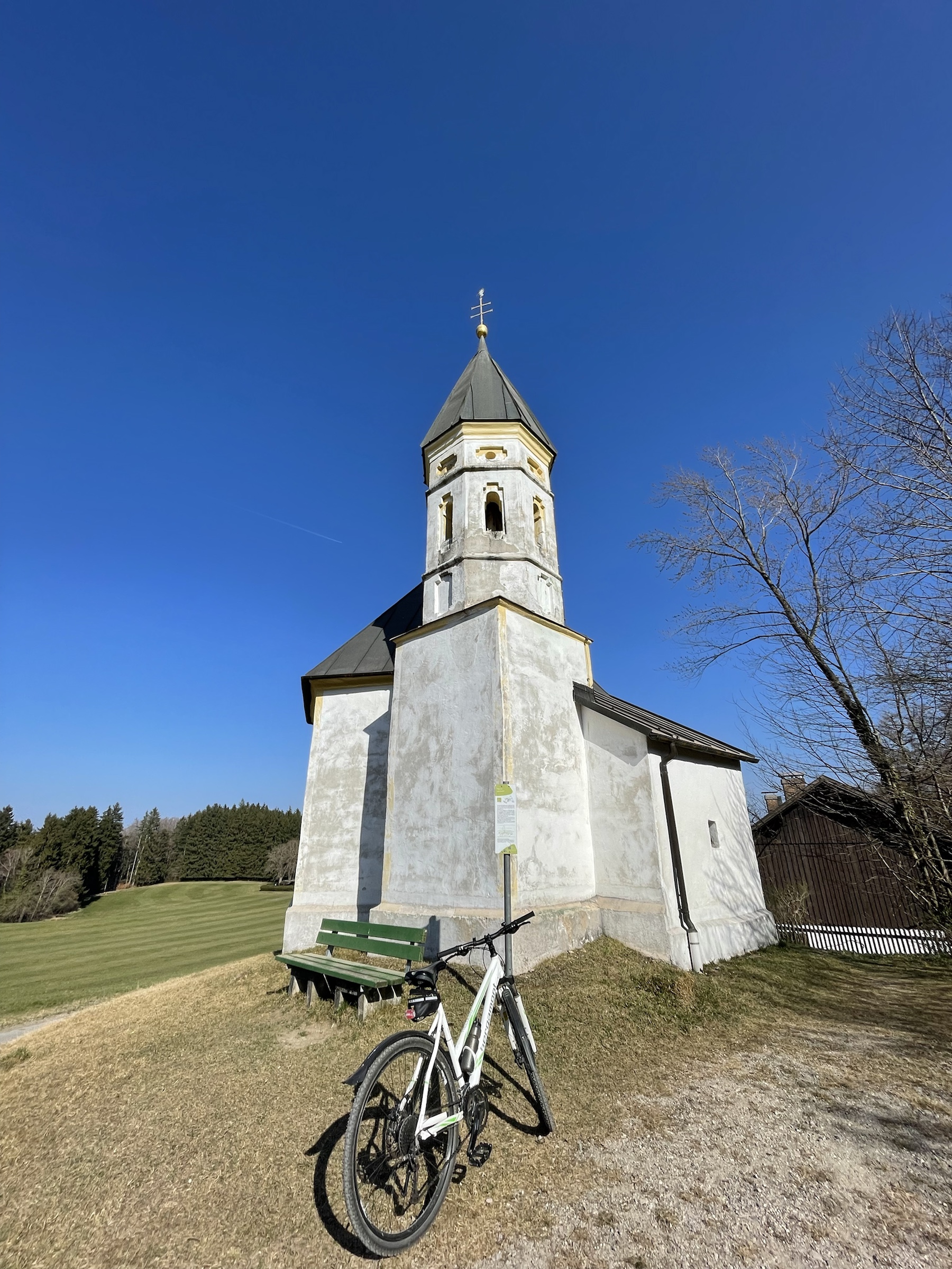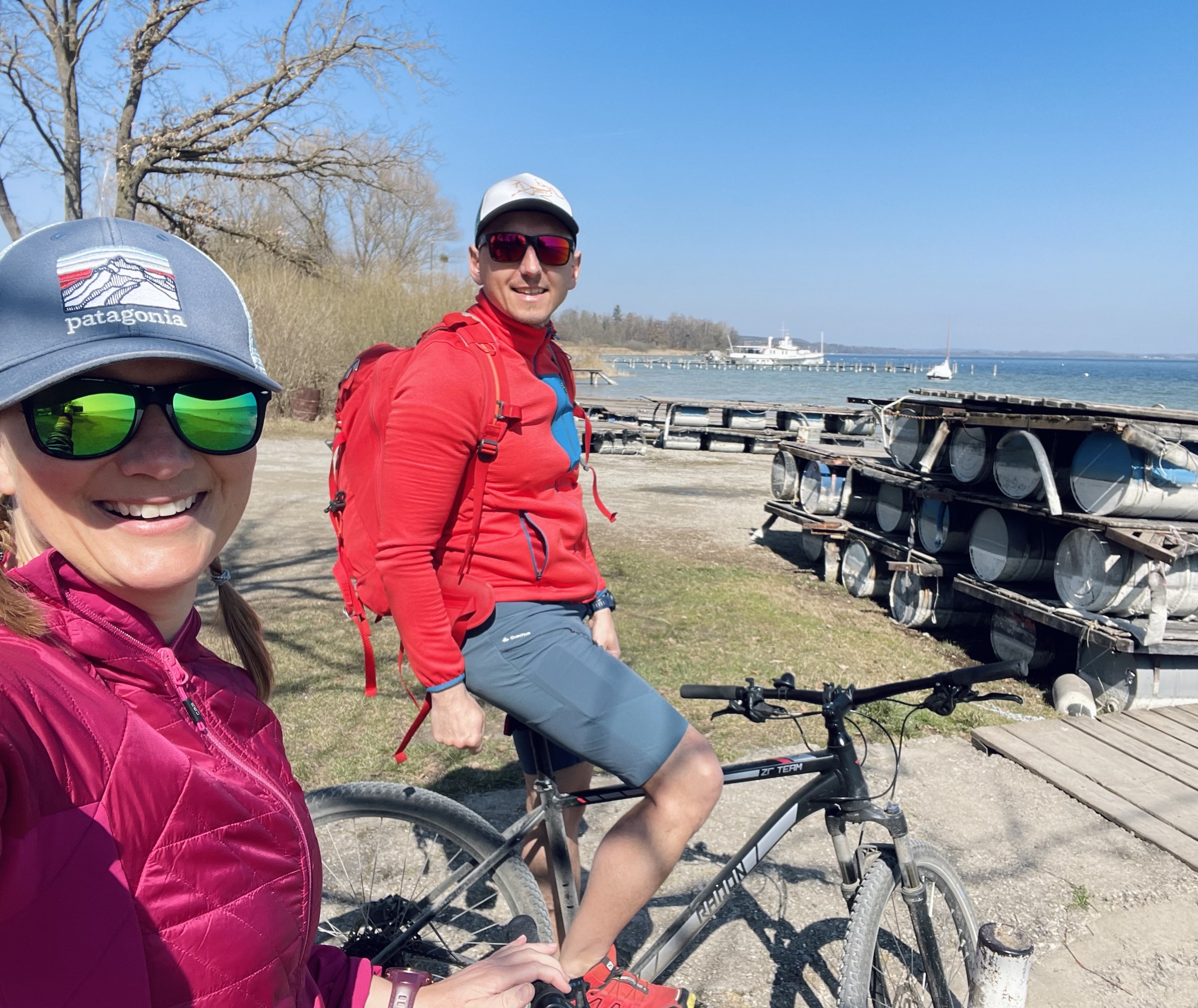 Strasznie marzyła mi się wspólna rowerowa wyprawa z M., bo odkąd spędza niedziele z Różą, to rzadko nam się to udaje… Ale dziś i owszem! Plan był ruszyć z Raisting na Hohen Peißenberg, zjeść w Rigi z widokiem na góry i wrócić, byłoby jakieś 50km i w sam raz. Ale była tak piękna pogoda, że po drodze mówię: a co będziemy jechać autem wzdłuż jeziora, jak możemy rowerem?! I cyk, stanęliśmy w Utting i cudnie się jechało brzegiem Ammersee 😍 Klimat, jak na Bodeńskim przed sezonem: spokój, cisza, czysciutenka woda, piękne chałupy i fajne knajpki. Ale, jak się tak człowiek rozgląda po drodze, to szybko nie jedzie, a wcześnie z domu też nie wyruszyliśmy, gdyż zmiana czasu, ekhm… I zanim dotarliśmy do Funkstelle, to już prawie 20km na liczniku, a wieża HP dalej daleko… Ale nic, pchamy się dalej, coraz bardziej pod górkę (ja pcham rower, M wjeżdża!) i kiedy myślałam, że to już zaraz, tuż tuż, pojawił się znak: HP 3.1km. I niby nic, ale to było jeszcze 270hm – pionowo w górę jak dla mnie, i już 16 godzina, zatem decyzja… Zawracamy w dół, z górki na pazurki 🙂 I był piknik po drodze na łące z widokiem na góry, i pan maszynista z pociągu mi odmachał, i jechało się cudnie i namówiłam M. na kolację w St. Alban w ostatnich promieniach słońca i grzaliśmy do auta prędko już po, bo zimno i zaraz się ściemni. Niedziela absolutnie doskonała, 70km w nogach i tylko szkoda, że jutro poniedziałek a nie jeszcze jedna niedzielka 😉