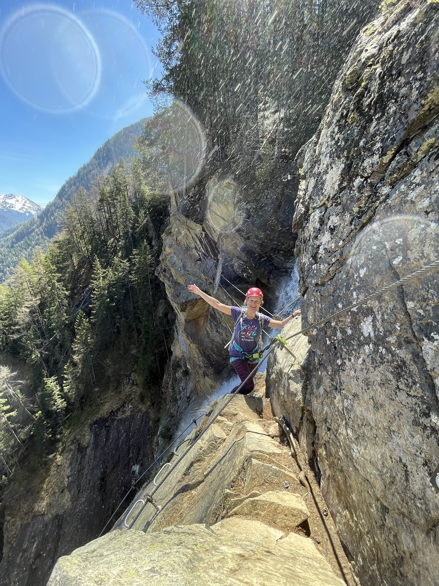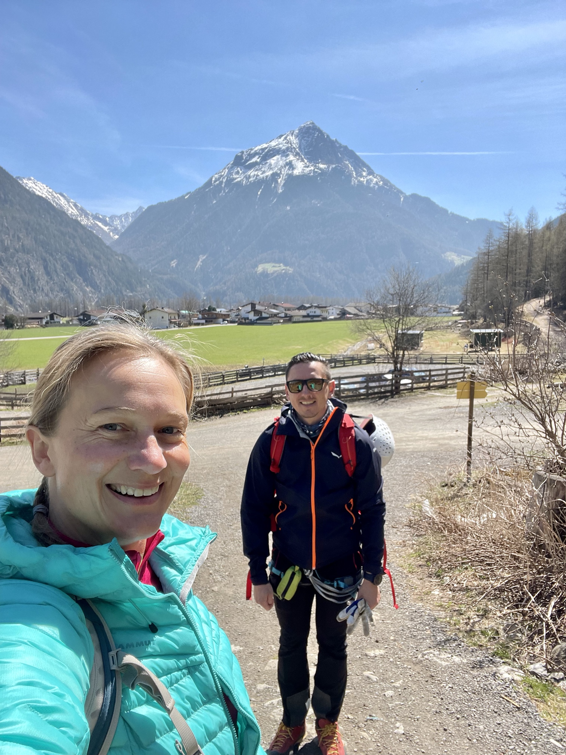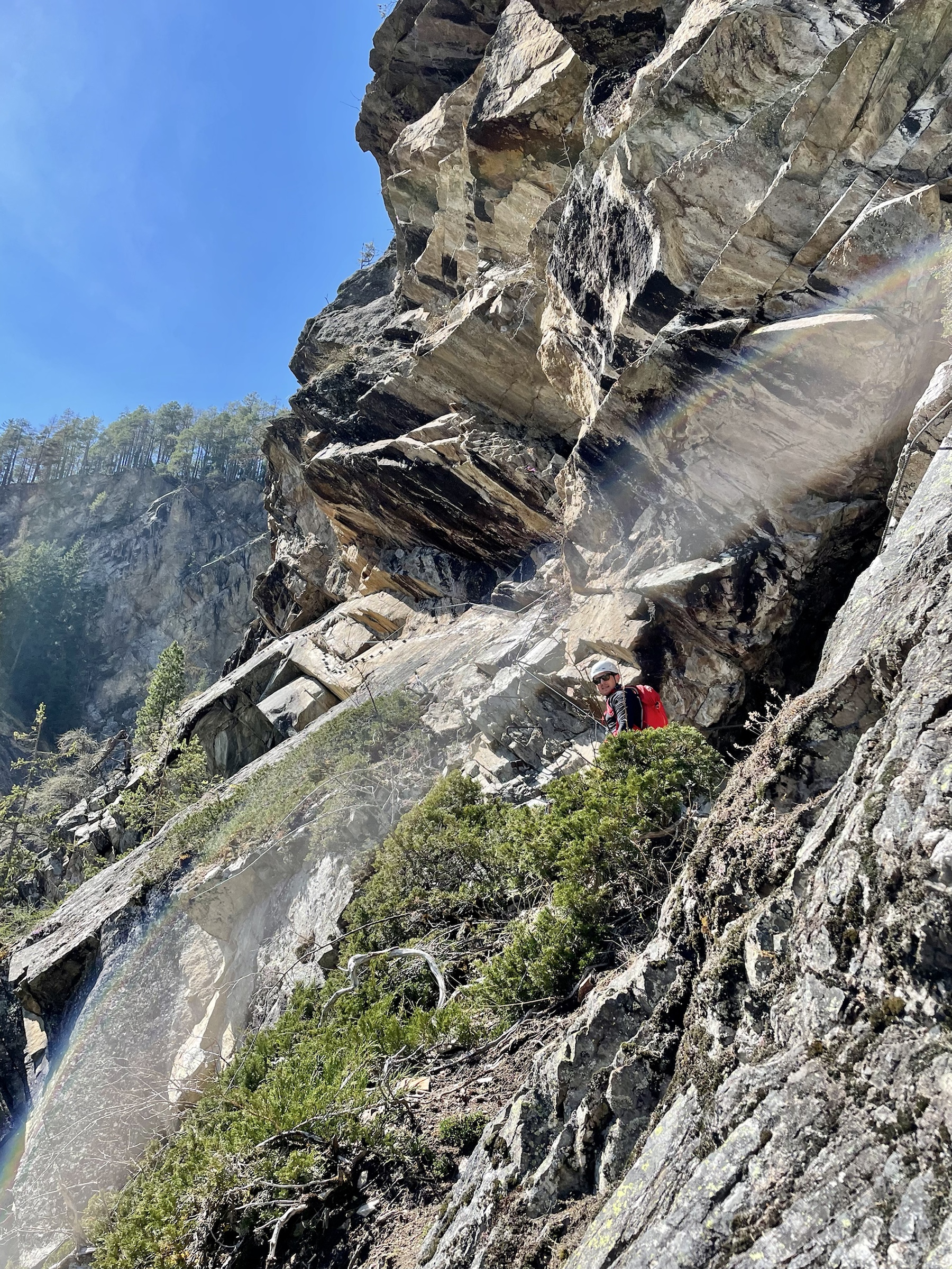 Wielkanocna Niedziela przywitała nas absolutnie przepiękną pogodą! W sobotę zjechaliśmy 30km na nartach, w niedzielę zatem można zająć się czymś innym – a atrakcji w Ötztal nie brakuje. W okolicy są 2 fajne KSy z przejściem przez wodospad: Marysia polecała Stuibenfall, ale uznaliśmy, że jeszcze za zimno, żeby zmoknąć – wrócimy po ochłodę latem 🙂 Teraz wybieramy Lehner Wasserfall KS, z podwójną opcją: D/E dla odważnych i B dla tych, co nie czują się na siłach. Fajne krótkie dojście z parkingu i zaczynamy! Pierwszy KS w tym sezonie, wiec pionowy początek trochę daje w kość! Ale można przysiąść odpocząć i ponapawać się widokami na Ötztal w pełnym słońcu: bajka! Wybieramy wariant B i po 1.5h jesteśmy przy mostku linowym, trochu strasznie, ale idę. Adrenalina jest i mega radocha po! I dumność i wdzięczność, że są tak piękne miejsca i można sobie tu po prostu wejść, o tak o 😍 I wreszcie lunch z widokiem na Gamskogel smakuje doskonale. Zejście do parkingu fajną ściezynką przez las i przy aucie jeszcze chwila na obserwowanie rozbrykanego źrebaka, który wyglądał jak cielaczek 🐄 Podsumowując: bardzo fajny KS, może kiedyś wrócimy na wariant D/E.