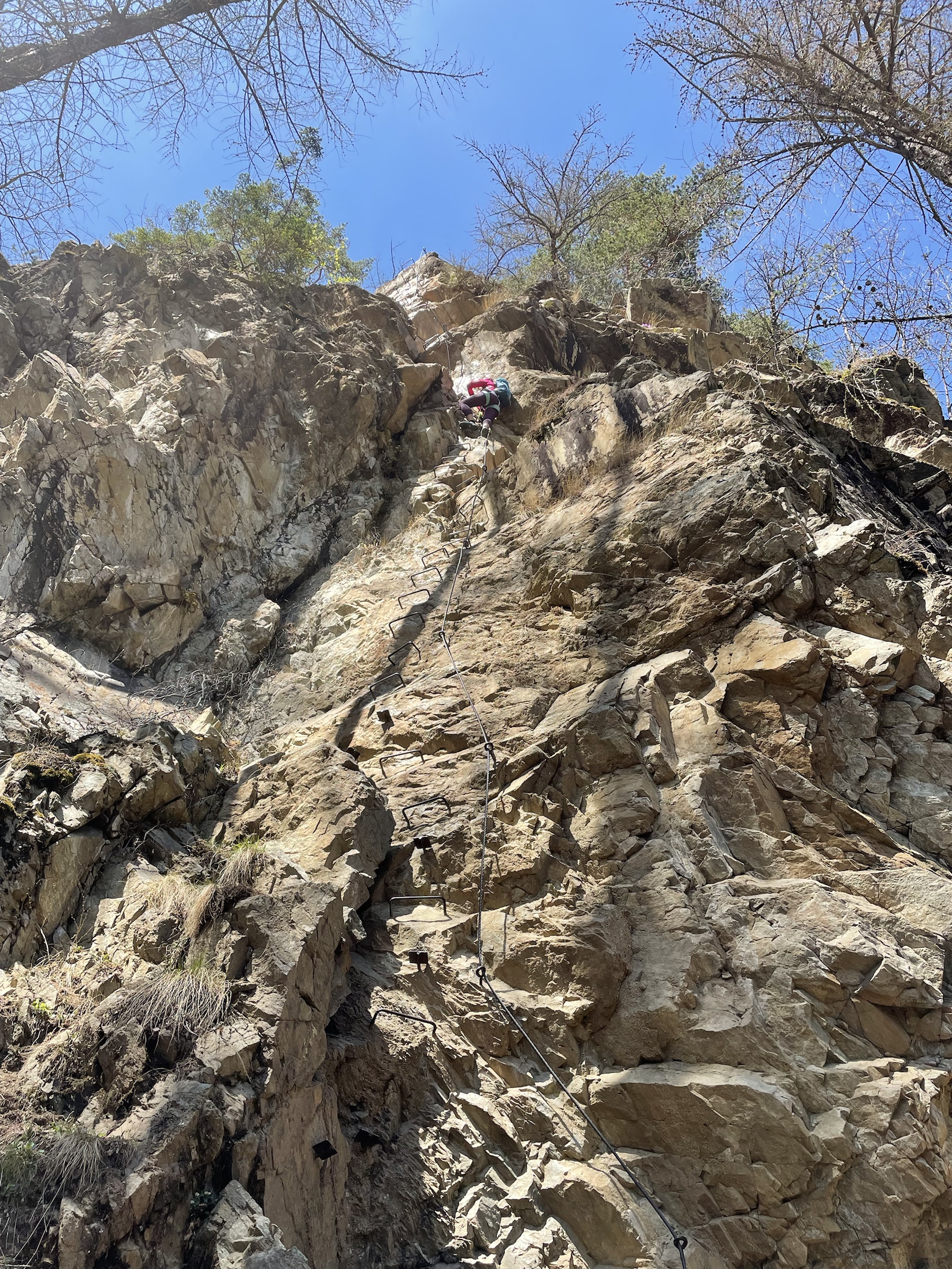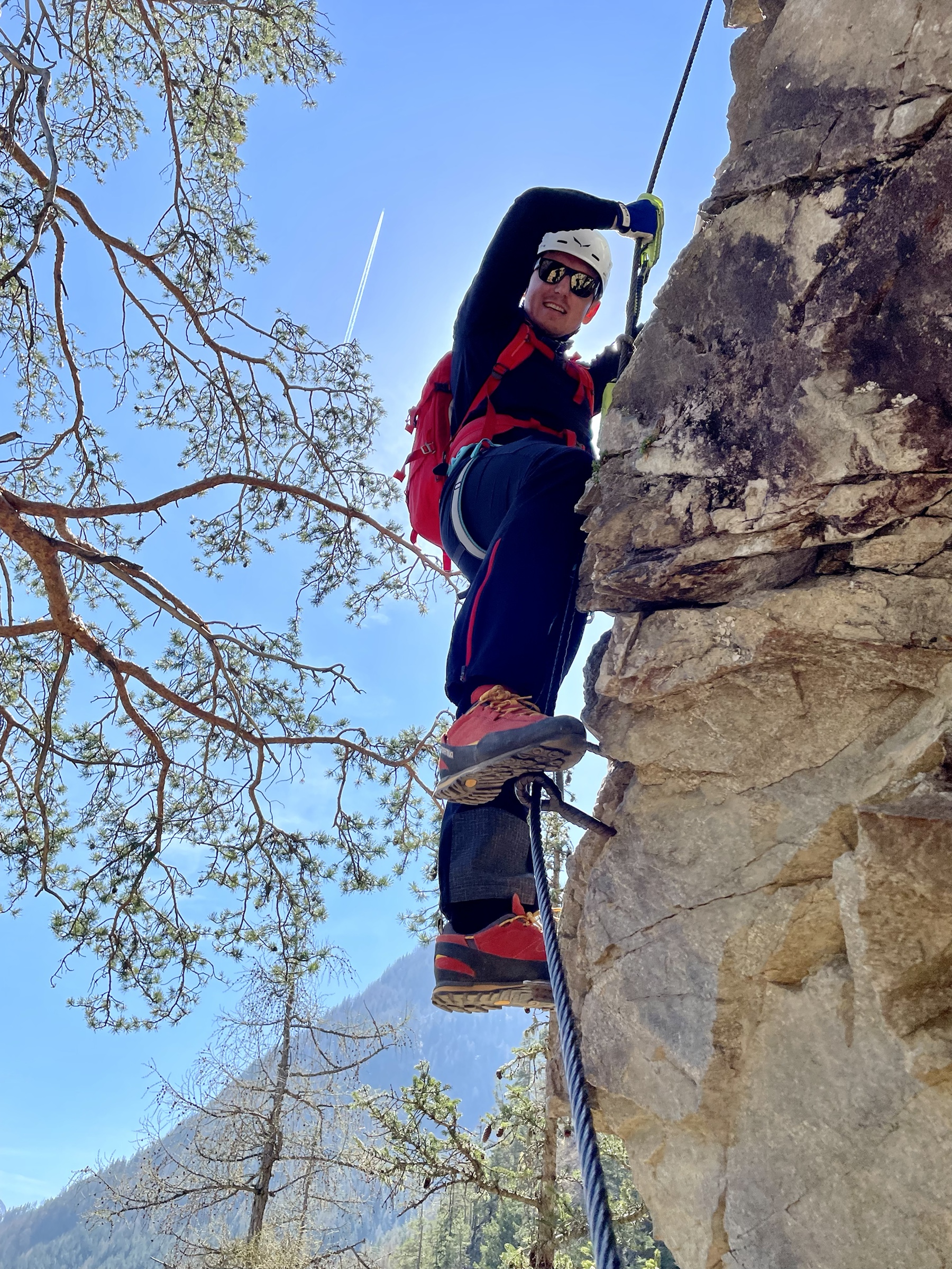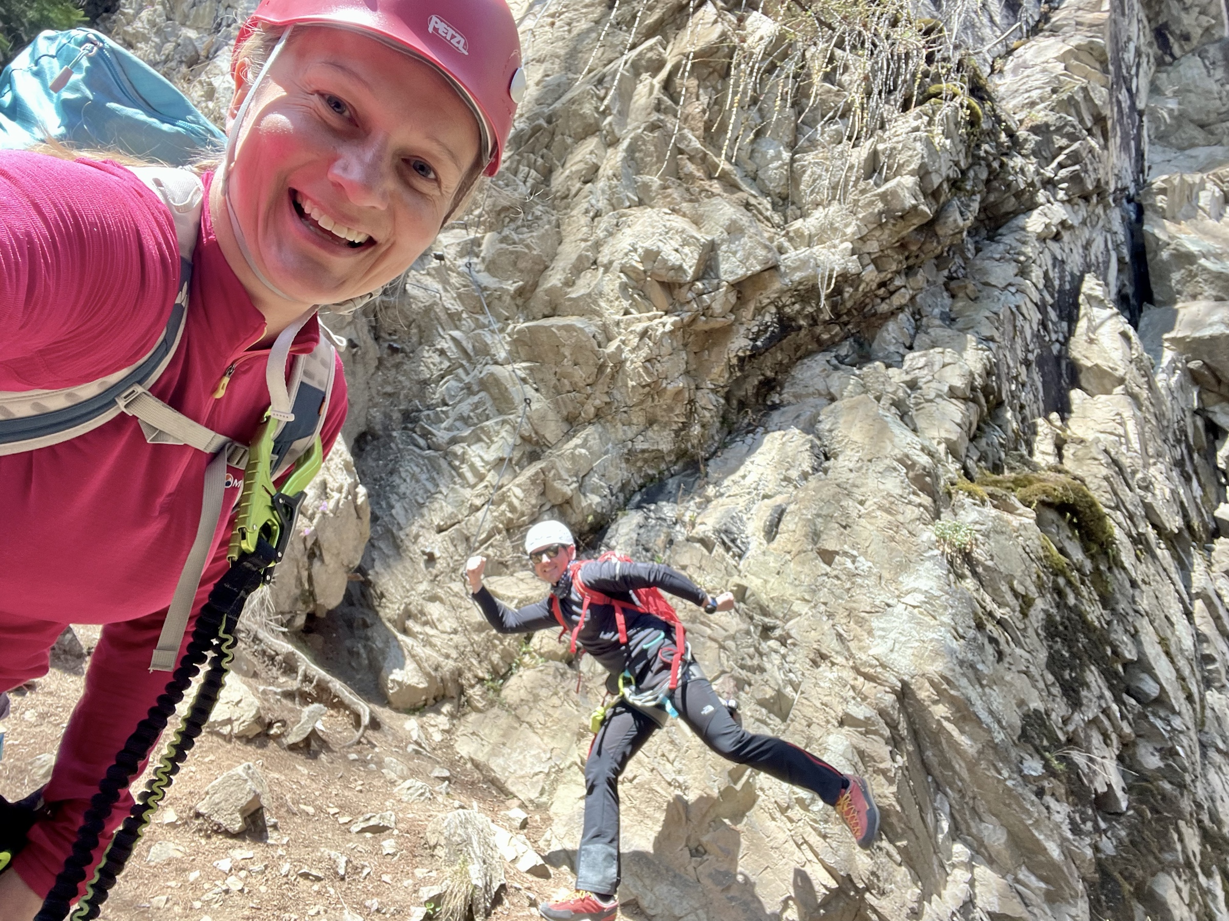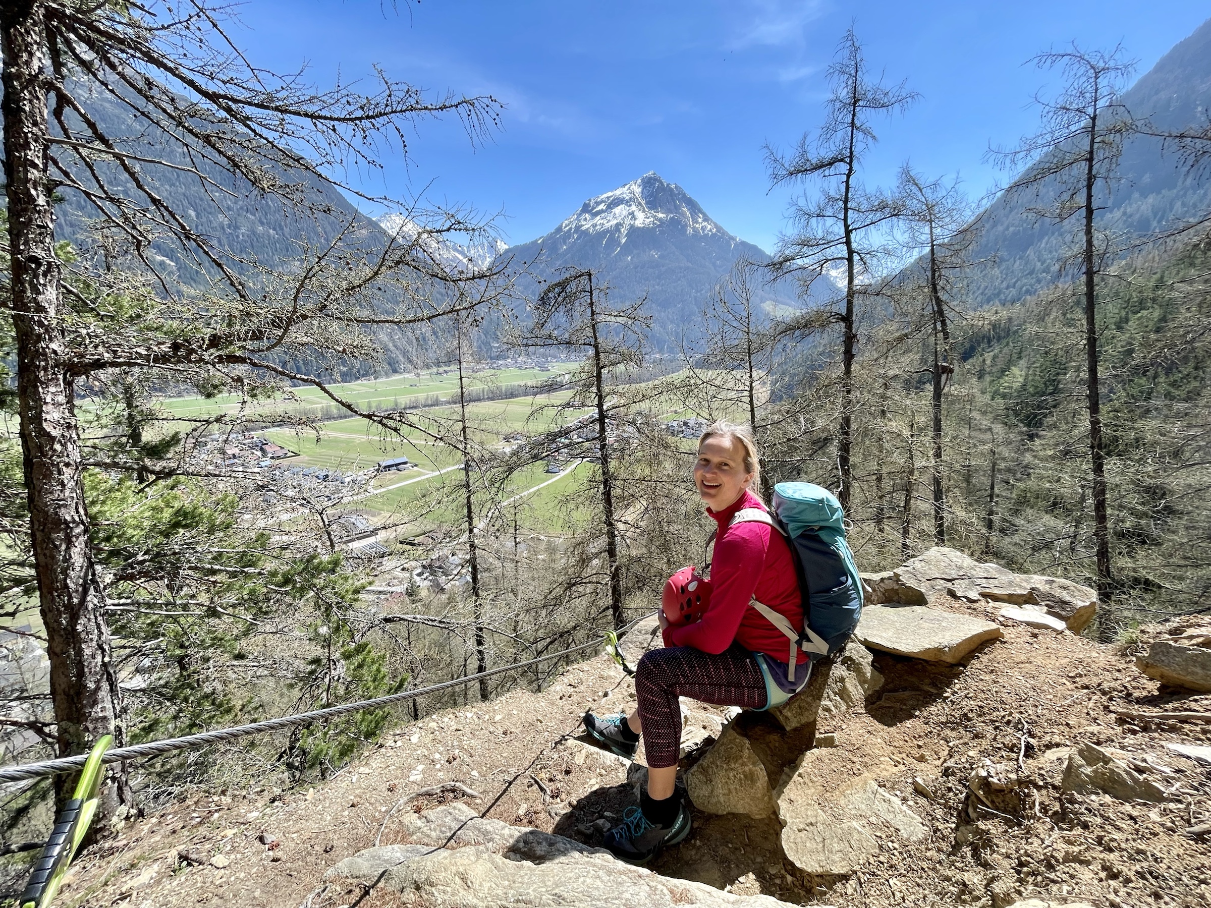 Wielkanocna Niedziela przywitała nas absolutnie przepiękną pogodą! W sobotę zjechaliśmy 30km na nartach, w niedzielę zatem można zająć się czymś innym – a atrakcji w Ötztal nie brakuje. W okolicy są 2 fajne KSy z przejściem przez wodospad: Marysia polecała Stuibenfall, ale uznaliśmy, że jeszcze za zimno, żeby zmoknąć – wrócimy po ochłodę latem 🙂 Teraz wybieramy Lehner Wasserfall KS, z podwójną opcją: D/E dla odważnych i B dla tych, co nie czują się na siłach. Fajne krótkie dojście z parkingu i zaczynamy! Pierwszy KS w tym sezonie, wiec pionowy początek trochę daje w kość! Ale można przysiąść odpocząć i ponapawać się widokami na Ötztal w pełnym słońcu: bajka! Wybieramy wariant B i po 1.5h jesteśmy przy mostku linowym, trochu strasznie, ale idę. Adrenalina jest i mega radocha po! I dumność i wdzięczność, że są tak piękne miejsca i można sobie tu po prostu wejść, o tak o 😍 I wreszcie lunch z widokiem na Gamskogel smakuje doskonale. Zejście do parkingu fajną ściezynką przez las i przy aucie jeszcze chwila na obserwowanie rozbrykanego źrebaka, który wyglądał jak cielaczek 🐄 Podsumowując: bardzo fajny KS, może kiedyś wrócimy na wariant D/E.