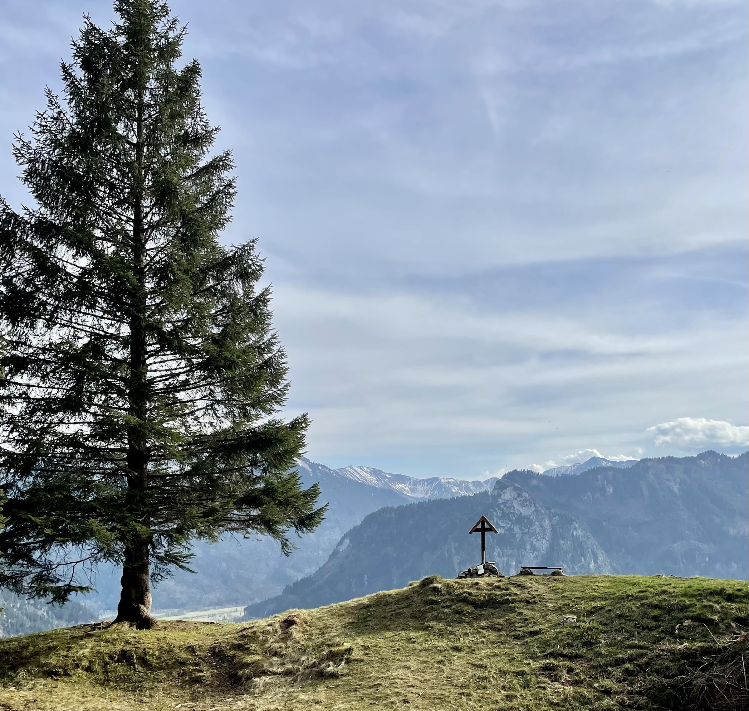 Piąteczek! Zatrzasnęłam laptopa o 12.30 i ucieczka w góry. Miał być Ettaler Mandl w końcu, ale nie dało rady zapłacić za parking (drobnych brak, apka nie działała), więc podjechałam do Oberammergau. Miałam plan iść na Stierkopf, na którym byłam ostatnio wychodząc z Bad Kohlgrub, ale trochę się przeliczyłam czasowo. Ale nic to, większą rundę zrobię następnym razem, a teraz odkryłam fajny szybki szczyt: 1.5h pod górkę i stoi się na Aufacker, z pięknymi widoki na Krähe, Notkarspitze, Zugspitze i Hohe Kiste. Bardzo fajna okolica! Trasa z powrotem dużo ładniejsza widokowo, niż pod górę. Ptaszki ćwierkają, świerszcze cykają, ludzi brak, ciepło, spokój – bajka 🥰 Pomieszkałabym!
