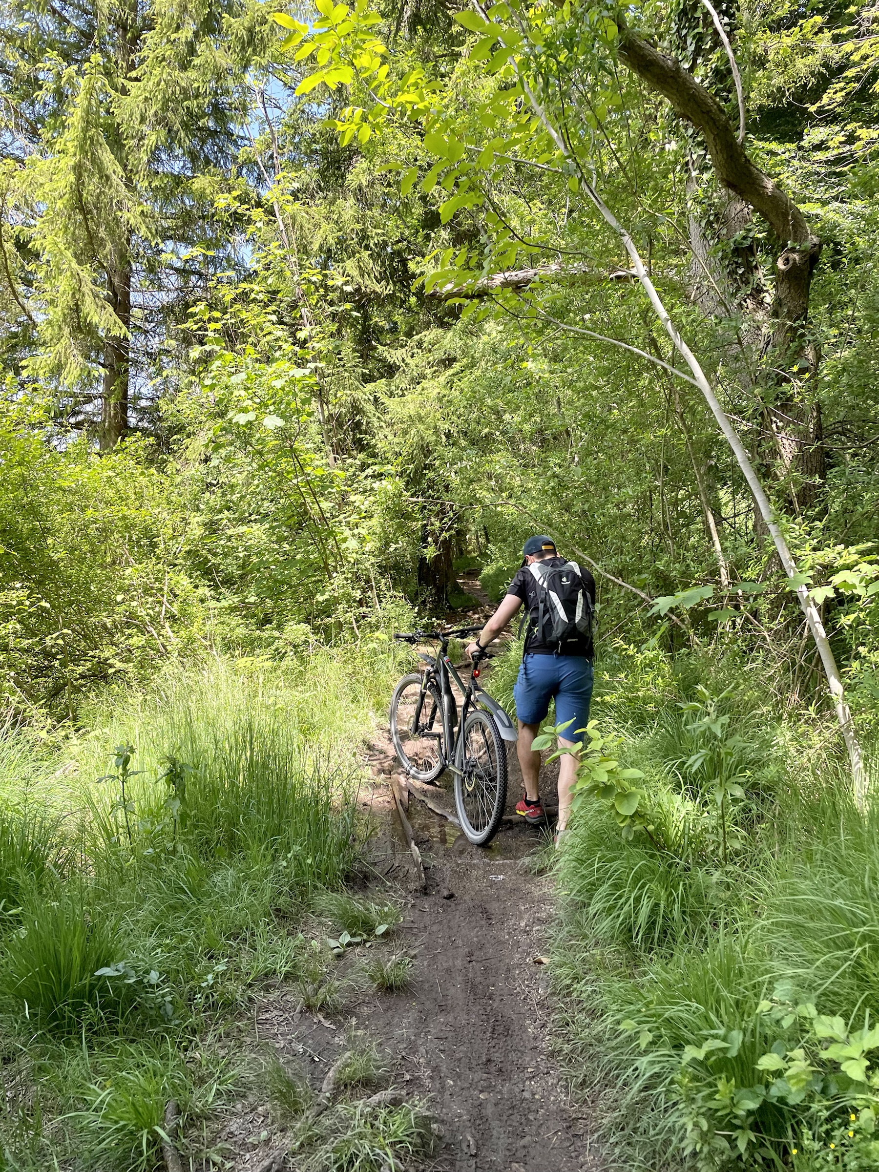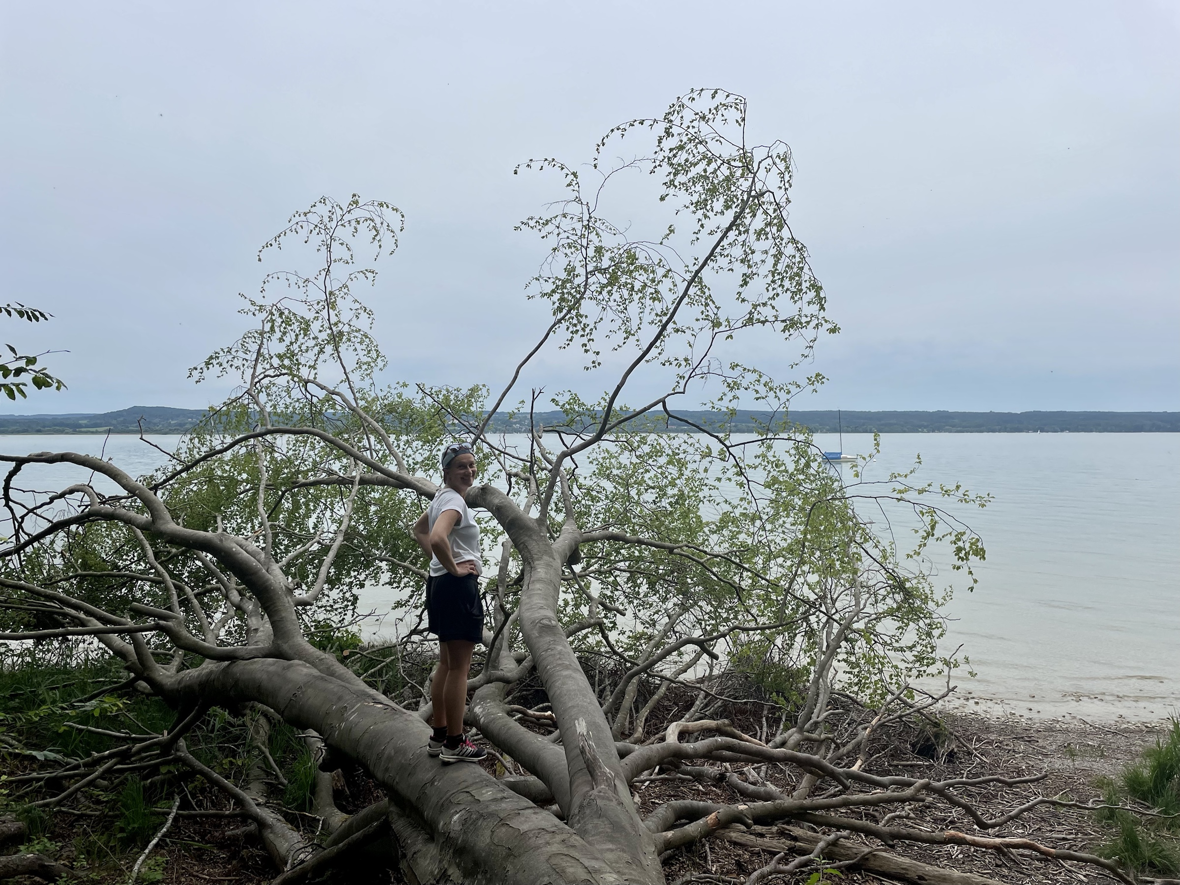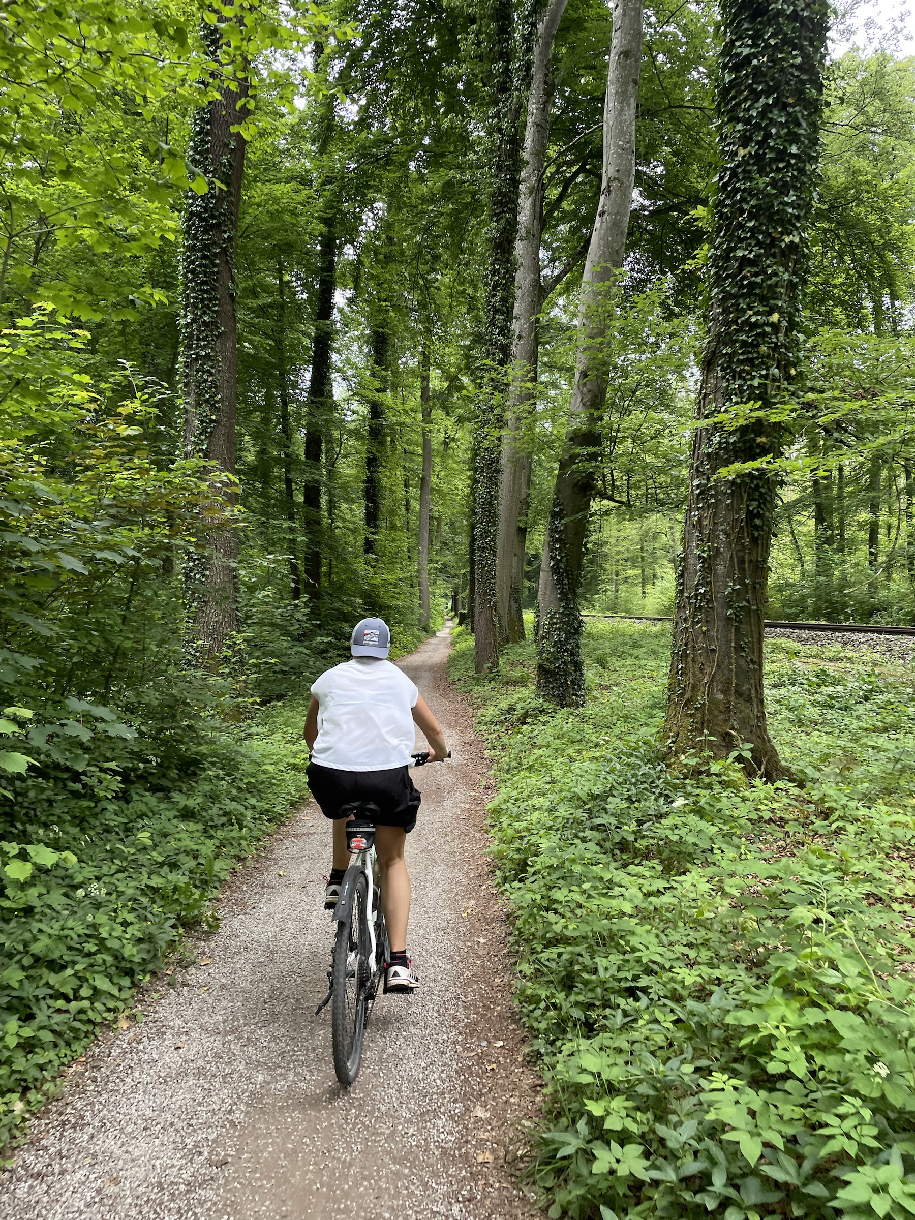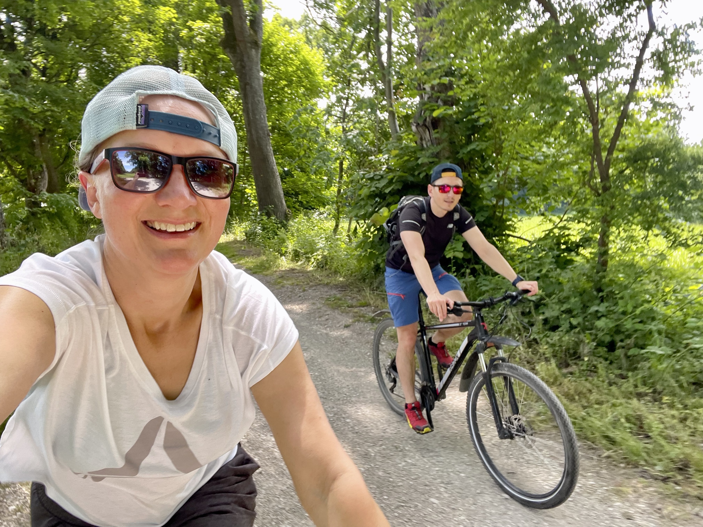 Wycieczka super, gdyż urozmaicona bardzo: najpierw pierwsza kąpiel w tym roku, zaraz za Herrsching, potem chwilę drogą, ale ruch, więc wjechaliśmy w las a tam trail na maxa, błoto i korzenie i piękna zieloność – ale duszno też. Potem trochę motania się w Breitbrunn, ale od wyjazdu na Inning już prosta sprawa. Piękne widoki po drodze, na jezioro i mega hacjendy: jery, ile tam jest pięknych willi! I wszystkie z prywatnym pomostem… Jest też kilka fajnych plaż po drodze (zanotowanych na przyszłość!) . Po 30km przystanek na frytki w St. Alban. No i na koniec browarek w Generalnym Konsulacie w Herrsching, zakupili wędzoną rybkę na kolację i wiu S8 do domu. Wpadliśmy do domu po 18 i się rozpadało na maxa – idealny timing! I idealny piątunio, cudnie było 😍