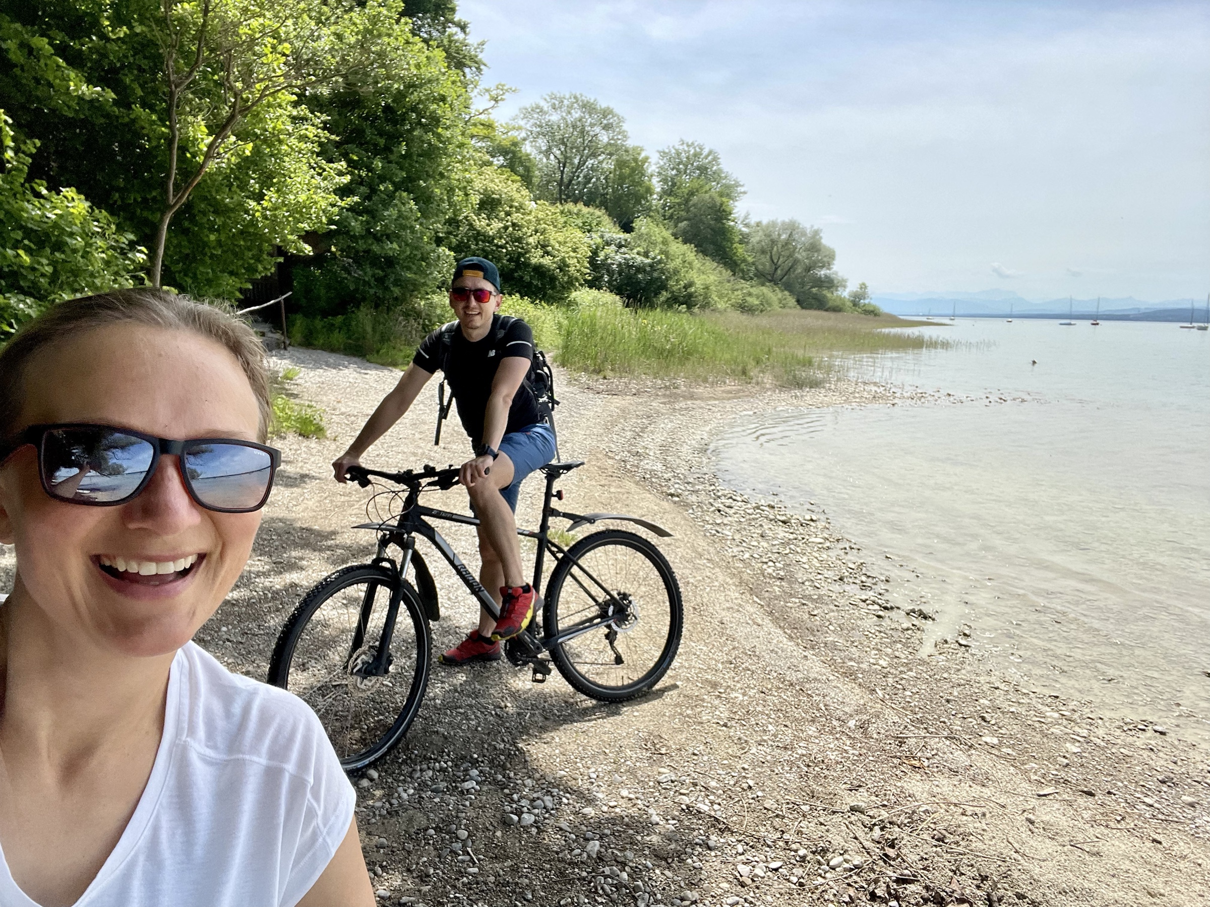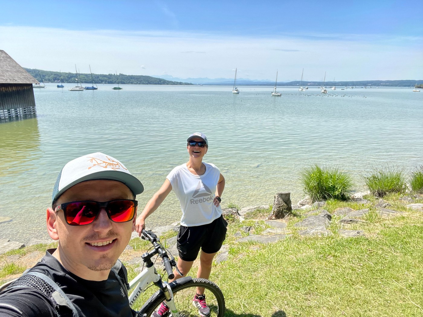 Wolny piątunio! I do 17 ma być pogoda, zatem pakujemy się z rowerami do SBahn i jedziemy do Herrsching, coby wreszcie okrążyć Ammersee! Już dawno był plan, kiedyś podjęliśmy próbę, ale pogubiliśmy się po drodze i był brak mocy i odpuściliśmy. Zatem, dziś podejście nr.2, zakończone sukcesem 🙂