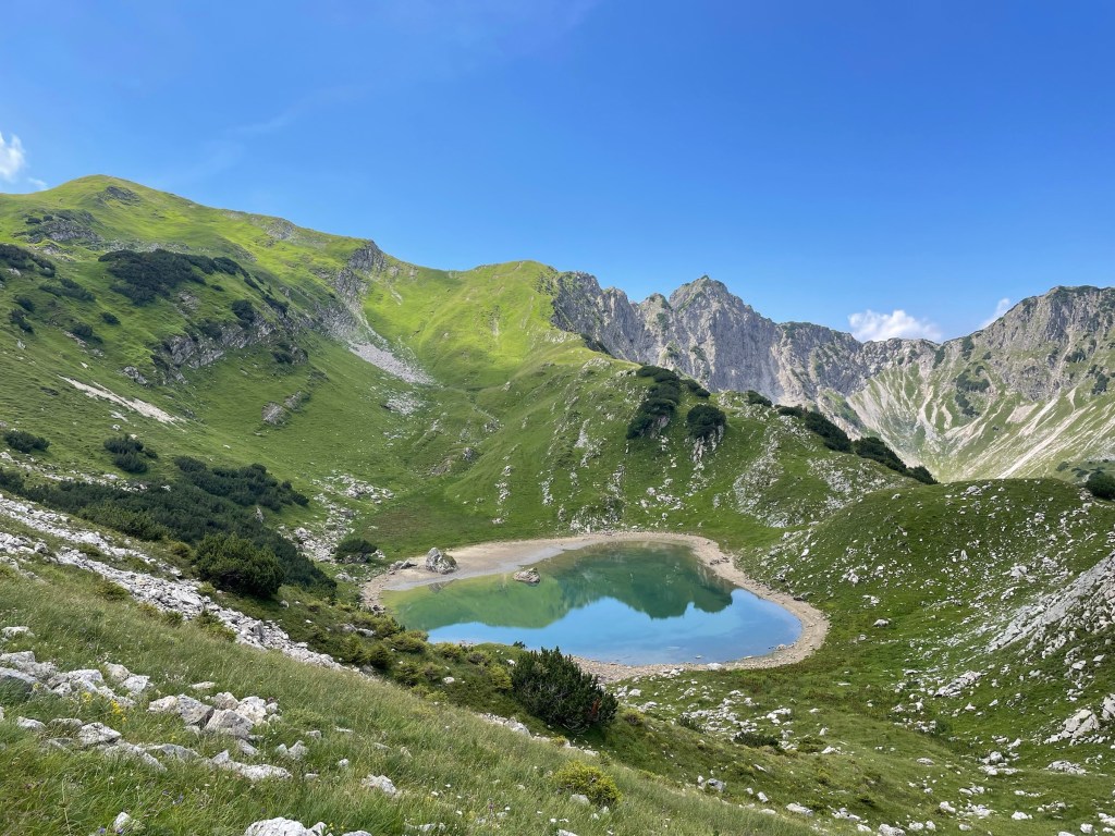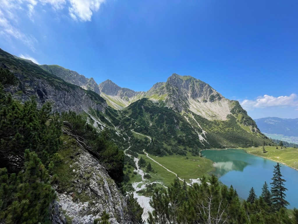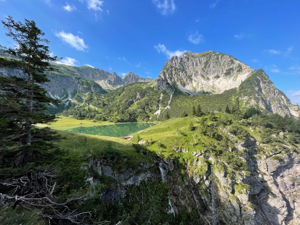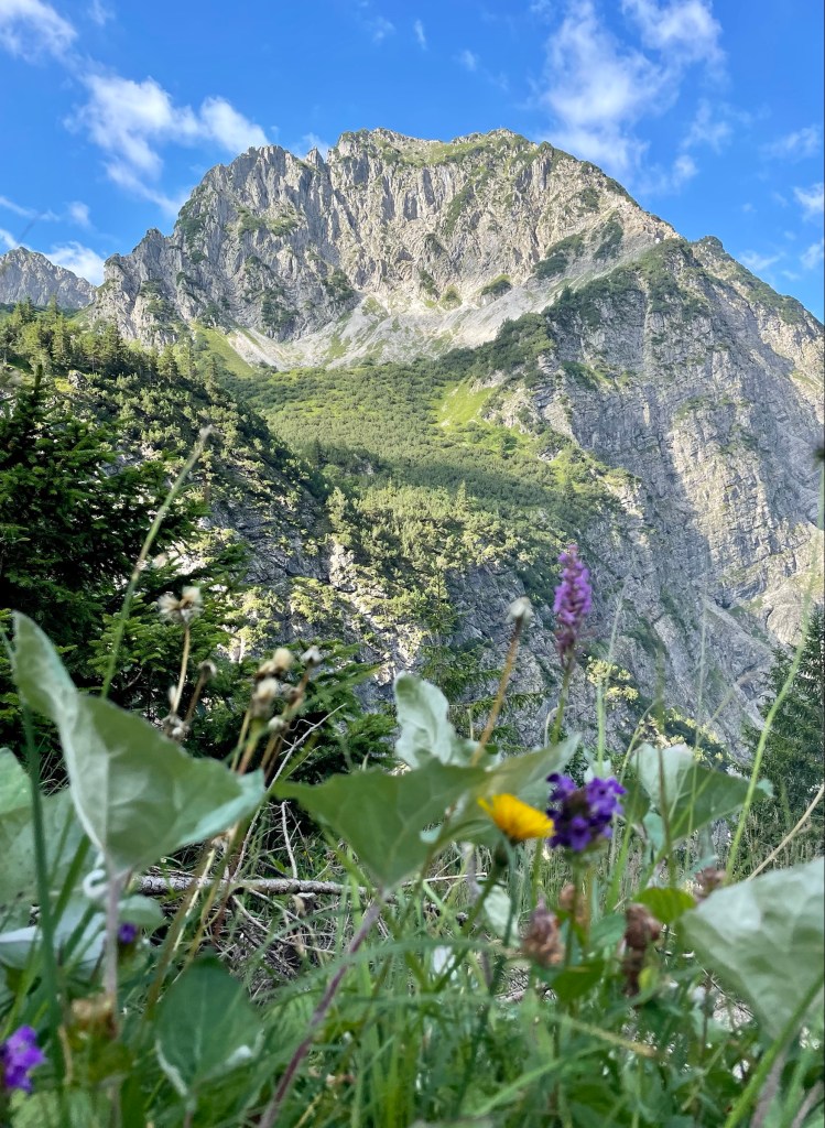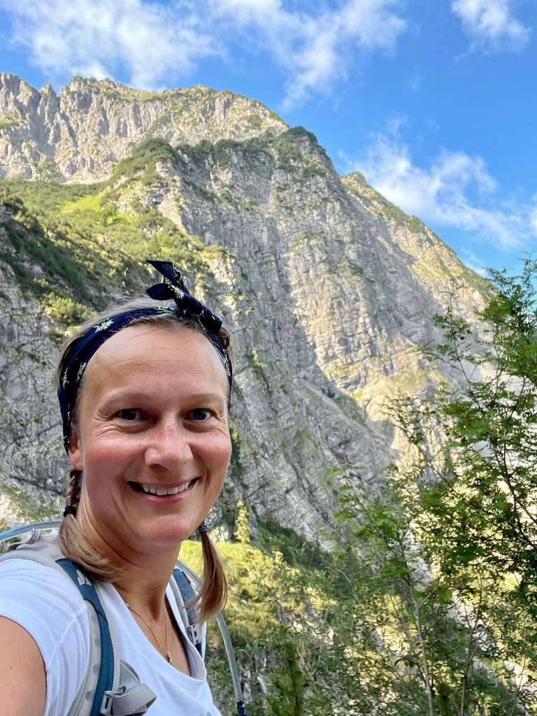 I left the parking at 8am – which is very early for me. There were a few people on the way already, not hot yet and until Gaisalpsee the way was always in the shadow and plenty little streams crossing the path so that was nice.
