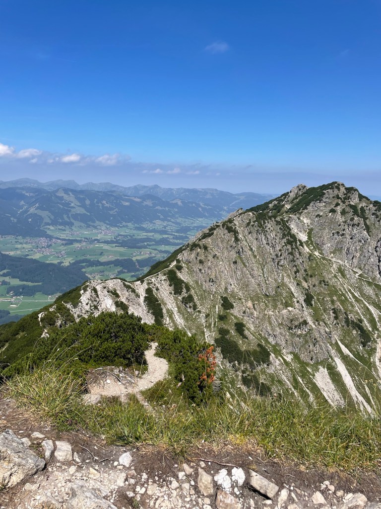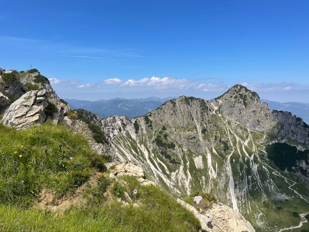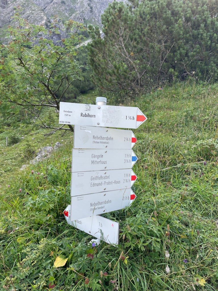Because I made it to Rubihorn quicker than planned and I still had time, power and will to do more, I decided to do Gaisalphorn as well, as the ridge going there looked really inviting! There were no signs pointing that way so I thought it will be a bit of a Kraxelei and yes it was… (I didn’t even take any photos on the way! Was short but intense 😬). I had to motivate myself to push it through and was very happy to reach the top AND discover there is a path going forward and I don’t have to go the same way down 😅