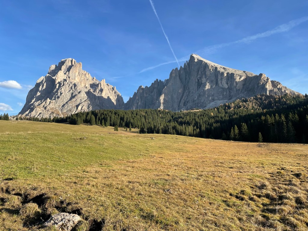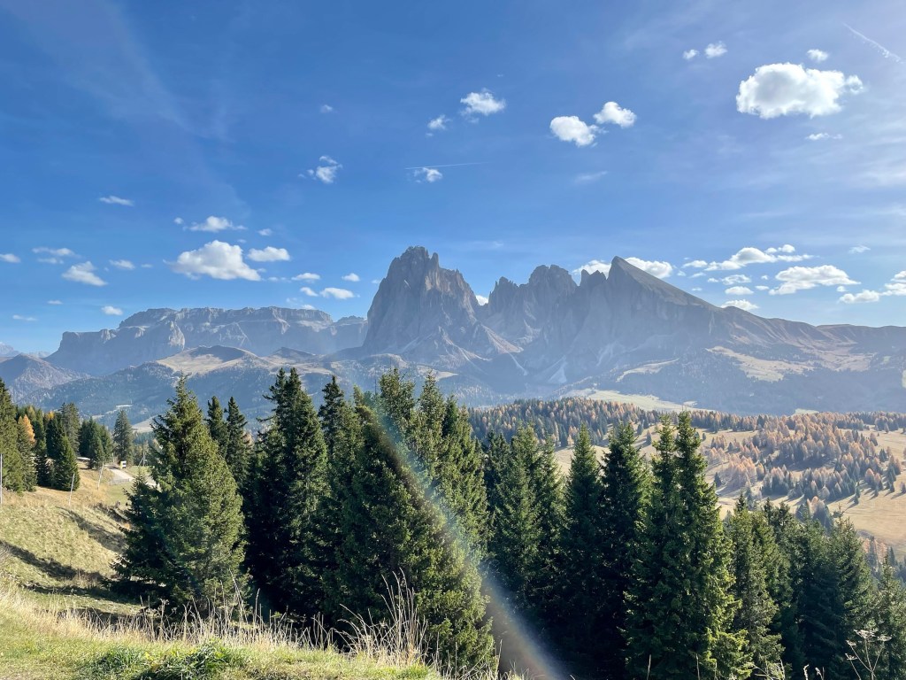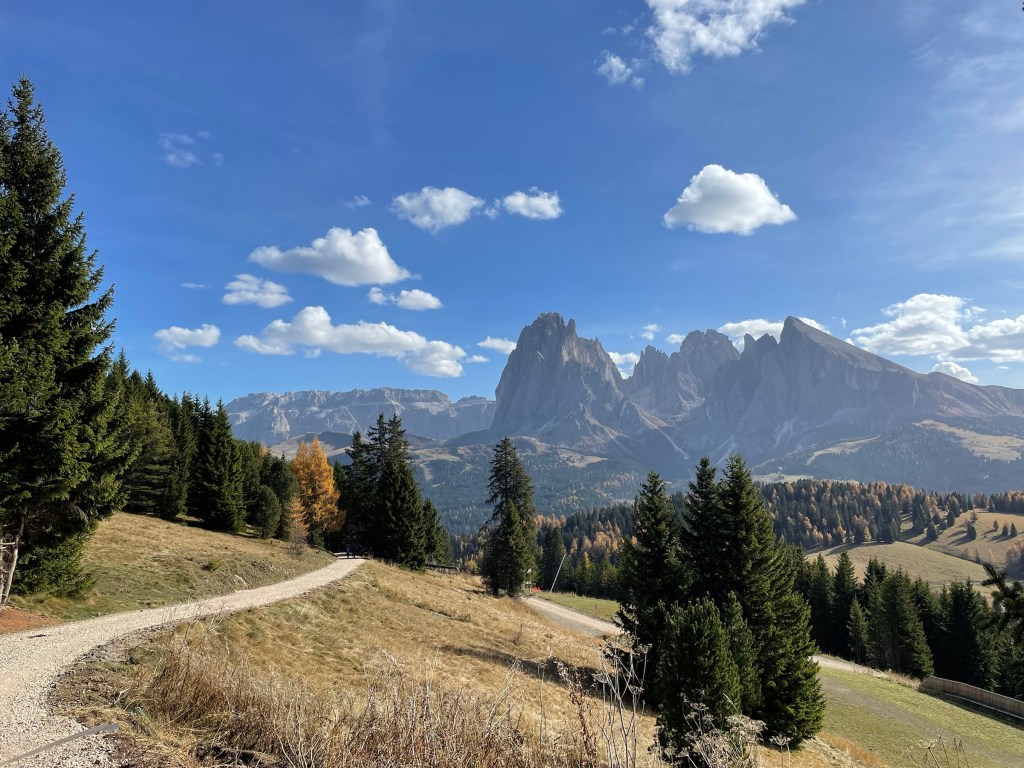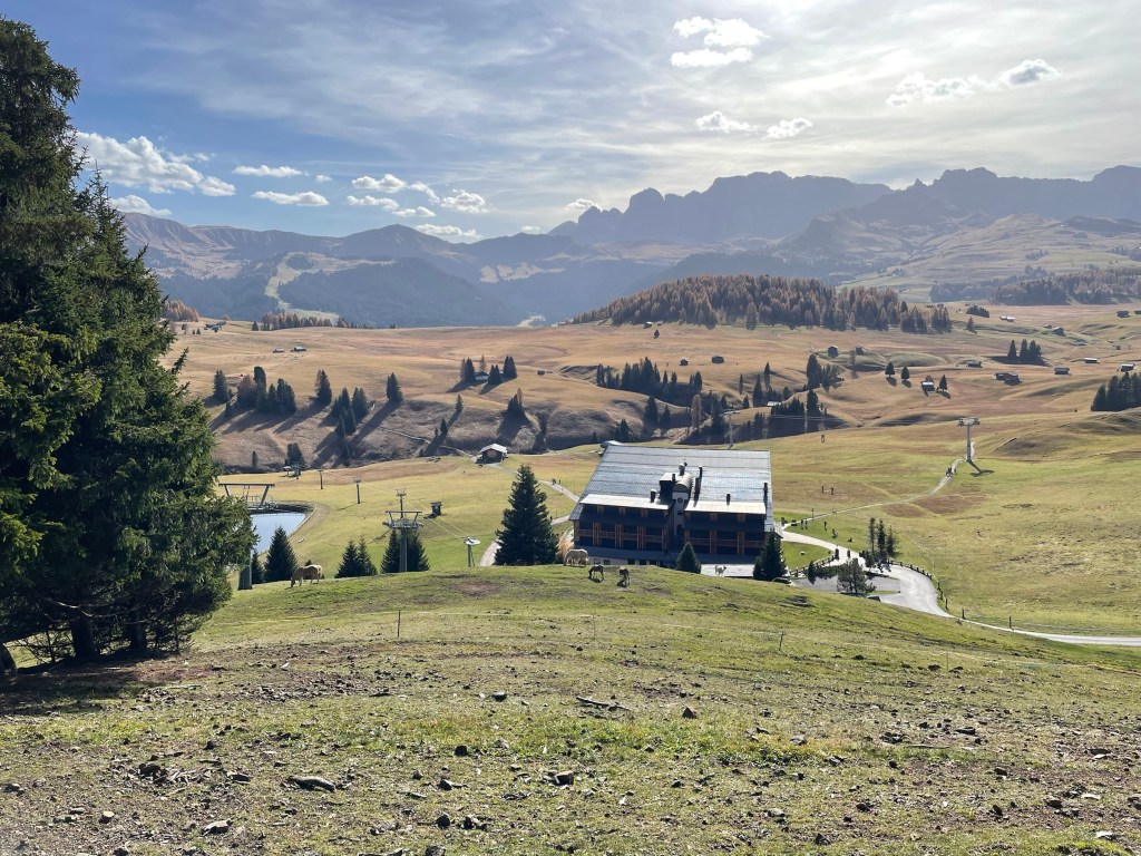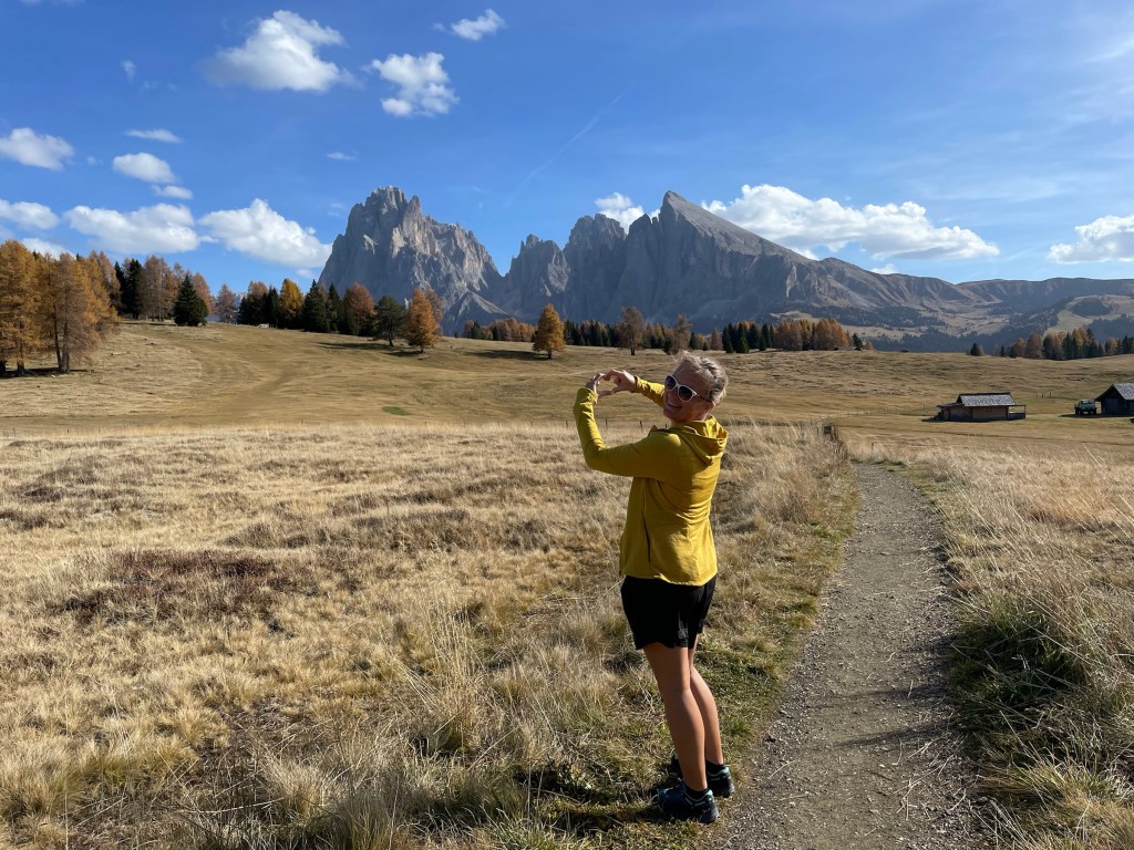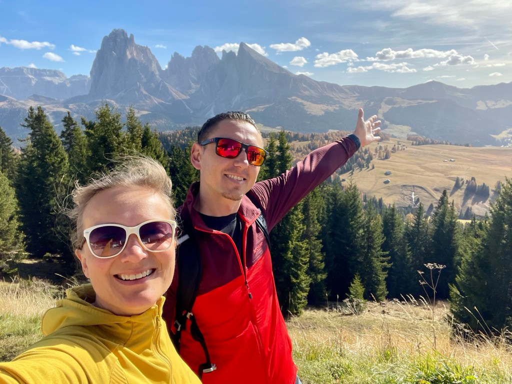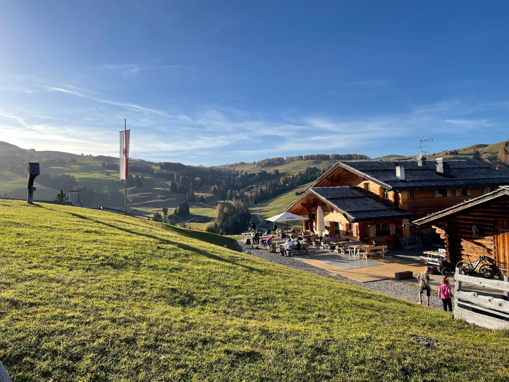 Niedziela idealna: słońce, rozległe łąki Seiser Alm, niekończący się widok na Lang- i Plattkofel i ciągle otwarte huty z pysznym jedzeniem. Marzenie! Wjechali kolejką z Ortisei, zeszli prosto do domu do Kryśki, gotowe!