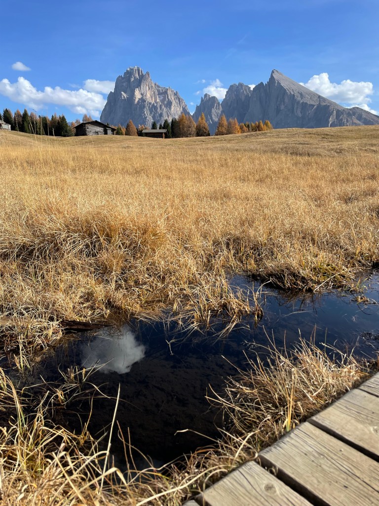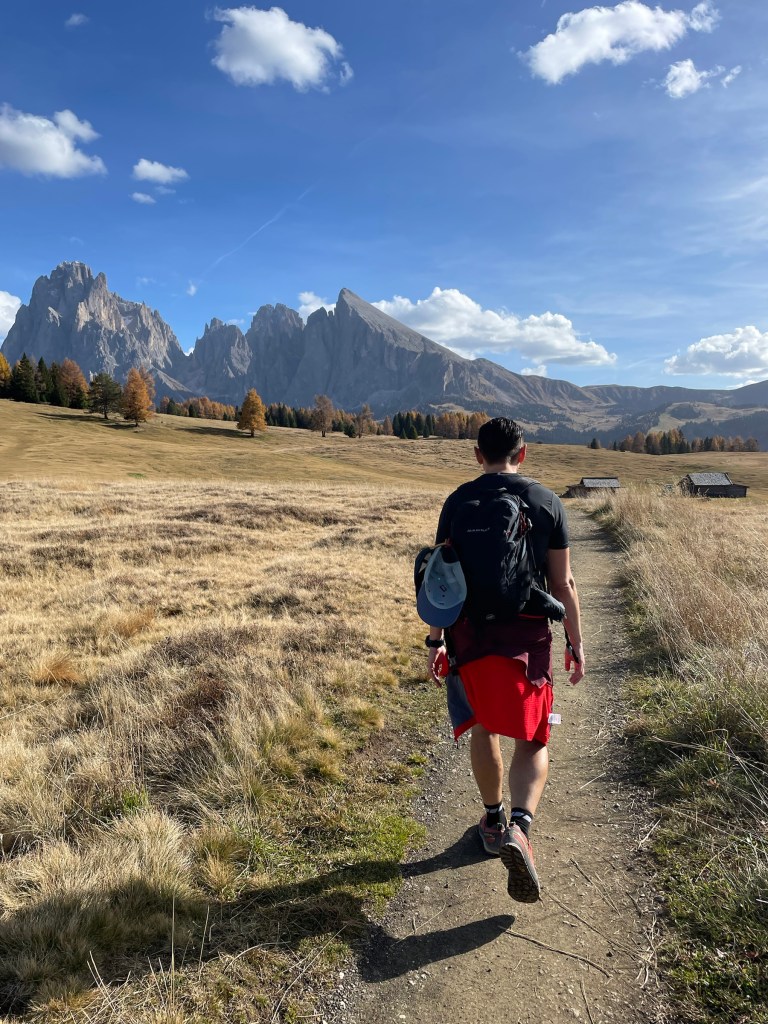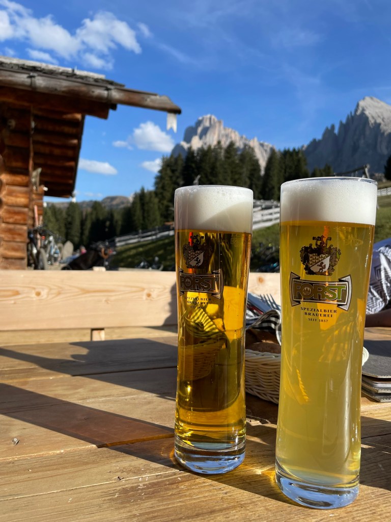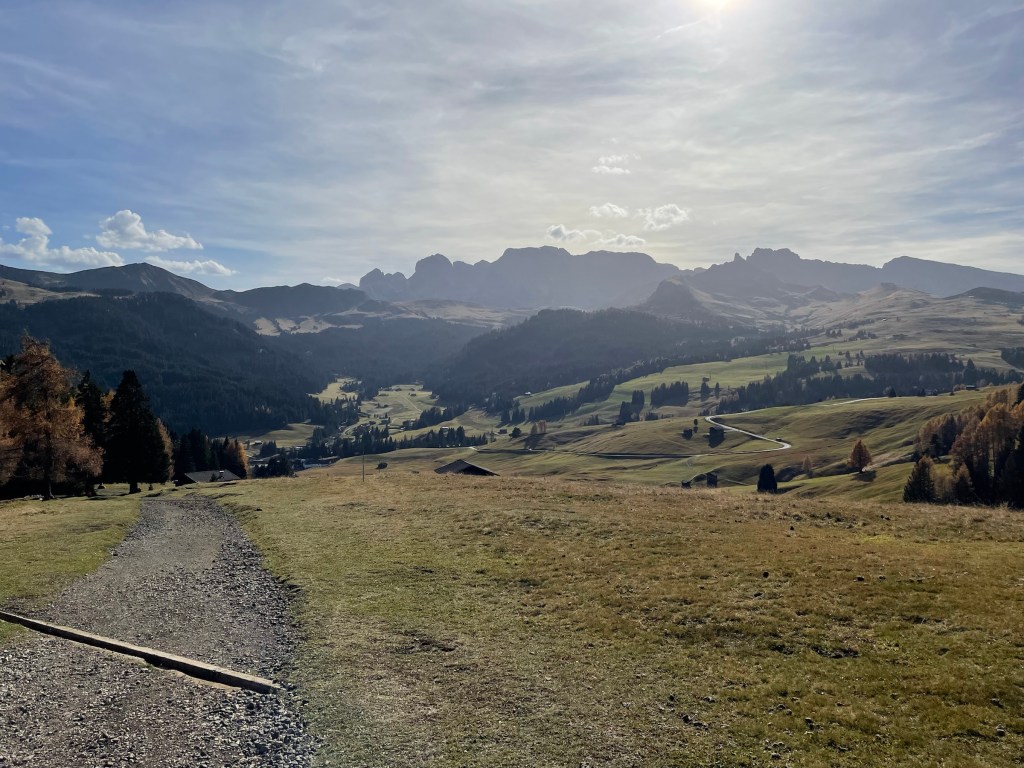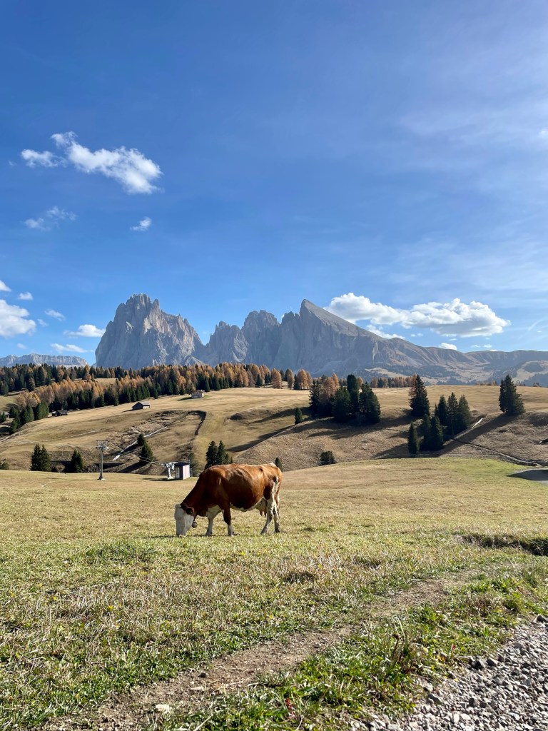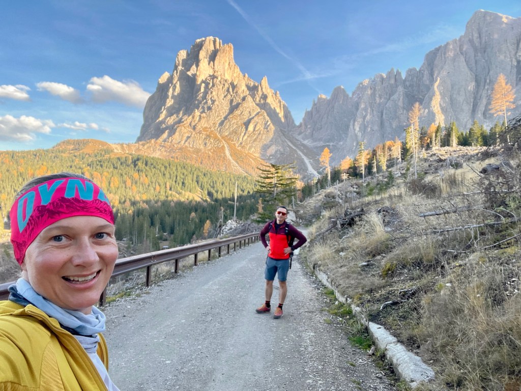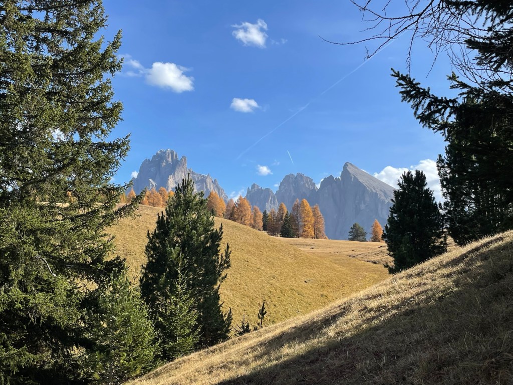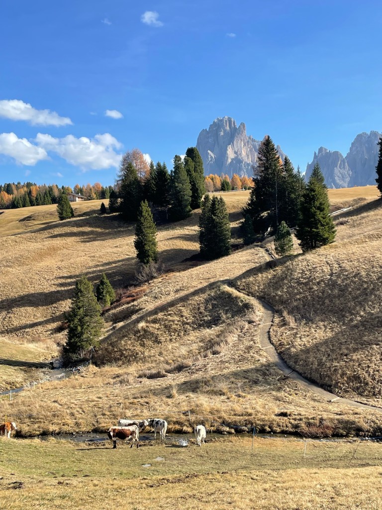 Niedziela idealna: słońce, rozległe łąki Seiser Alm, niekończący się widok na Lang- i Plattkofel i ciągle otwarte huty z pysznym jedzeniem. Marzenie! Wjechali kolejką z Ortisei, zeszli prosto do domu do Kryśki, gotowe!