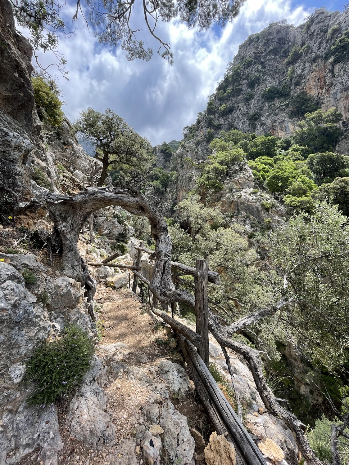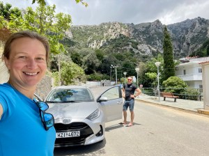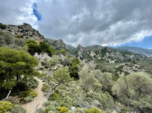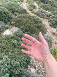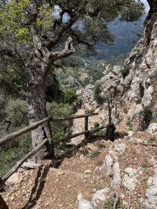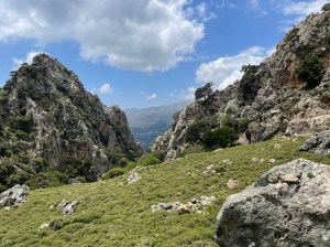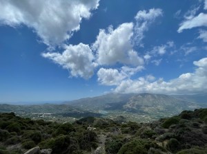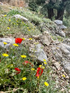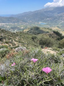 Droga powrotna w towarzystwie kri kri, sępów i obłędnych widoków! Oraz łez: najpierw wzruszenia, bo jak patrzę na szybujące ptaki, to im tak zazdroszczę wolności! A potem bólu, po poślizgnelam się na luźnych kamieniach i podparłam ręką o okrutnie ostre krzaki, których tu pełno (sarcopoterium/thorny burnet) i rany kłute w ręce, jak po ukrzyżowaniu 😉 Reszta drogi minęła już bez przygód i po 3h znów doszliśmy do auta, przez malowniczą wioskę Platania. Wszystko tam kwitnie: karczochy, kaktusy, róże i goździki – pachnące 10x bardziej niż nasze! Cudnie 😍