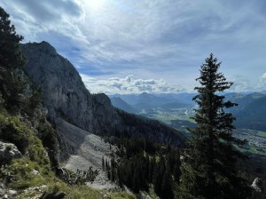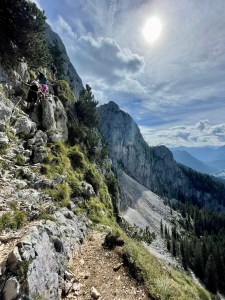 First part is going through the forest, up up, off you go, nothing to see there. Fun part starts right above Säulinghaus: partly Klettersteig, partly Kraxelei, so right up my alley!