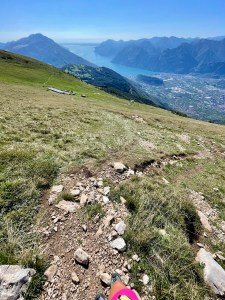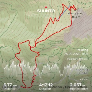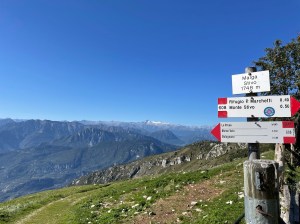 Poniedziałki dadzą się lubić!!! Nawet bardzo, jeśli spędza się je z widokiem na Gardę z jednej i Presanellę z drugiej – a taką właśnie możliwość zapewnia trasa na Stivo. Najszybciej da się wejść z parkingu za Passo S. Barbara, tą samą trasą w tę i z powrotem, ja zakręciłam małe koło dla urozmaicenia 🙂