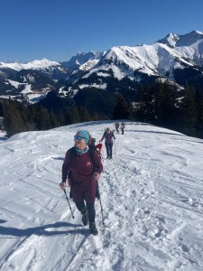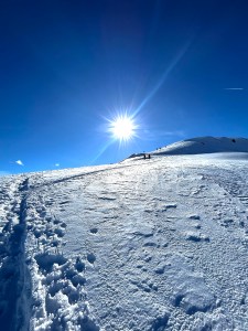 Ajjjjjj, wieje! I to mocno! Szybka sesja wokół krzyża i schodzimy kawałek niżej na zasłużony przystanek: kanapeczki, jajo, śmichy chichy – oraz niechcący wypuszczam z rąk butlę z herbatą – obserwujemy jej nabierający tempa pęd w dół, torpeda!!! Liczyłam, że może uda się napotkać ją w drodze na parking, ale jednak nie 😅 Schodzimy jednak bez rakiet po miękkim, zapadającym się śniegu. Jest cudownie! Dopóki po drodze nie wpadam na pomysł odbicia w bok – teoretycznie 2km krócej, ale omg, 10x trudniej. No nic, utyrane po pachy w końcu docieramy do auta – teraz tylko odstać swoje w GaPa korku i z głowy! Było doskonale 🤩