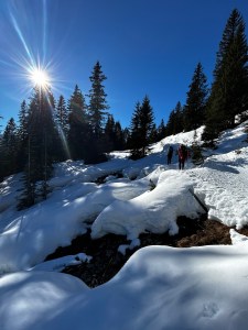 Nie ma to, jak babska wyprawa! Zawsze wesoło i coś się niespodziewanego wydarzy 😉 Tym razem po rozkminach, czy na pewno chcemy robić zimowe wejście na Thanneler i ustaleniu, że absolutnie na pewno i tak, rakiety są niezbędne i robimy to! – to po dojechaniu na miejsce, doszłyśmy do wniosku, że jednak nie i idziemy na Galtjoch 😅 Nie ma to, jak mieć w ekipie doświadczone laski z umiejętnością szybkiego podejmowania decyzji 🙂