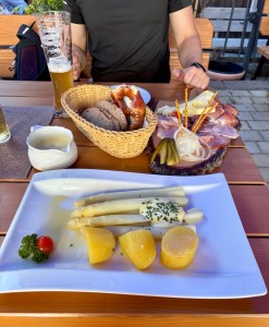 Rowerowa sobotka z M.! Prawdziwa rzadkość, taki wręcz rarytas 🥐 Marzyło mi się zaleganie na kocu nad jeziorem, po rowerkach, więc padło na Tegernsee. Z leżenia na kocu oczywiście nic nie wyszło, ale były inne atrakcje: piękne wodospady w Wolfschlucht, dosko szpargle u Szwagra, Rabarbarszorla w Gut Kaltenbrunn (widok!) i jezior objechany!