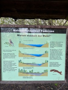 Przepiękny spacerek, najpierw na środek jeziora (szkoda, że lornetki nie miałam!) a potem przez Wackelwald: radocha z podskakiwania na puddingu ogromna! 😄 Jezioro było kiedyś większe, ale roślinność brzegowa narastała, las postępował i dziś idzie się po torfowisku, utrzymywanym przez plątaninę korzeni i wszystko się ugina, fajne uczucie. Ładne trasy rowerowe, może kiedyś się zakręci rundę wokół.