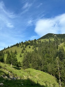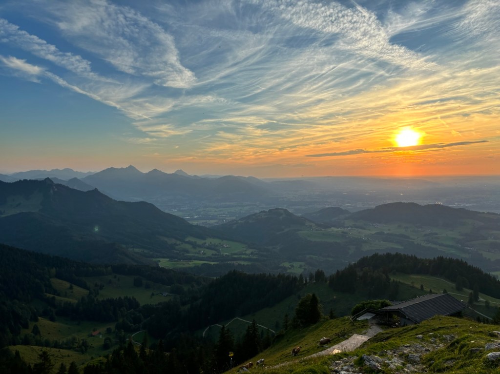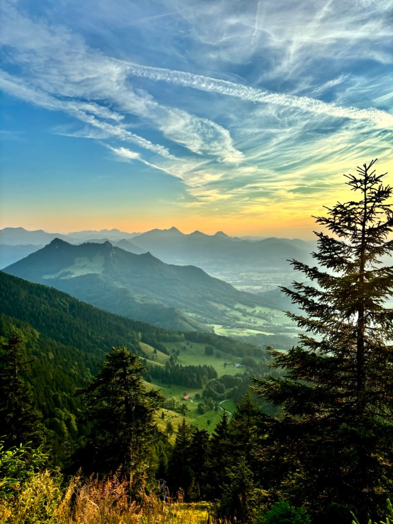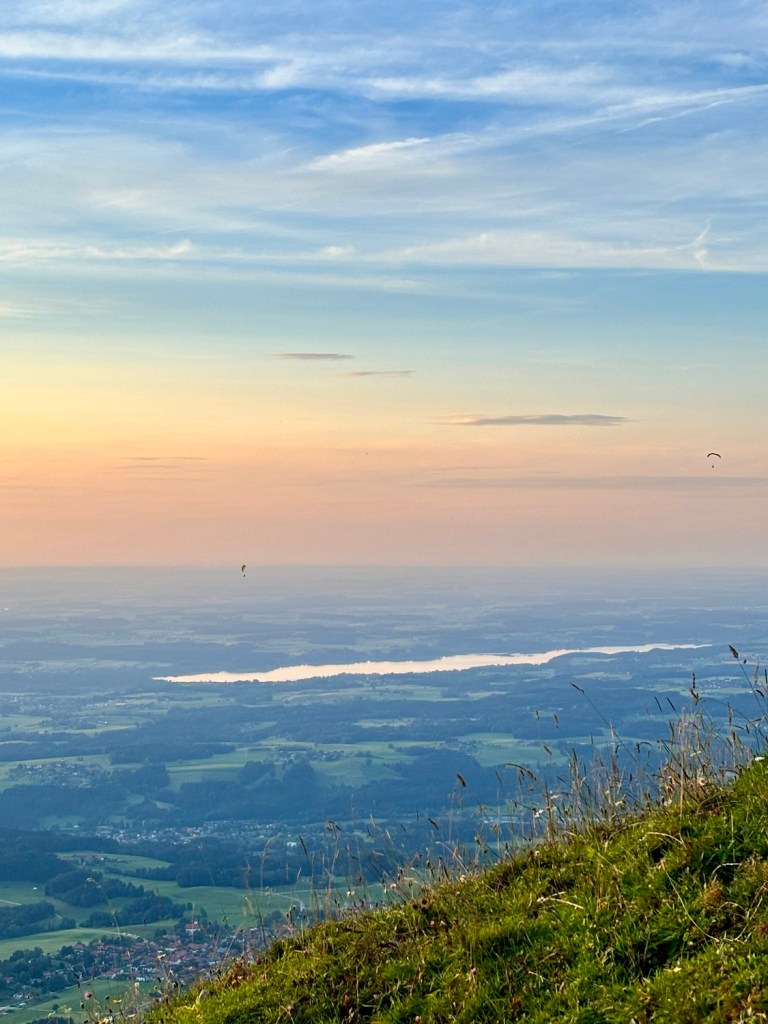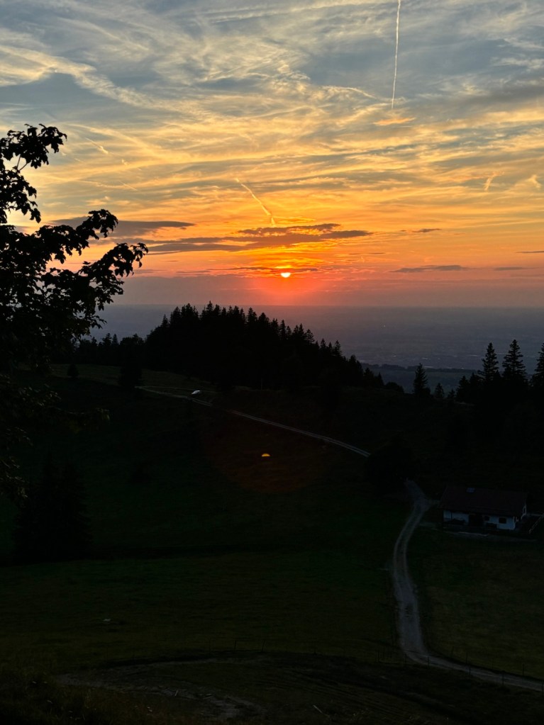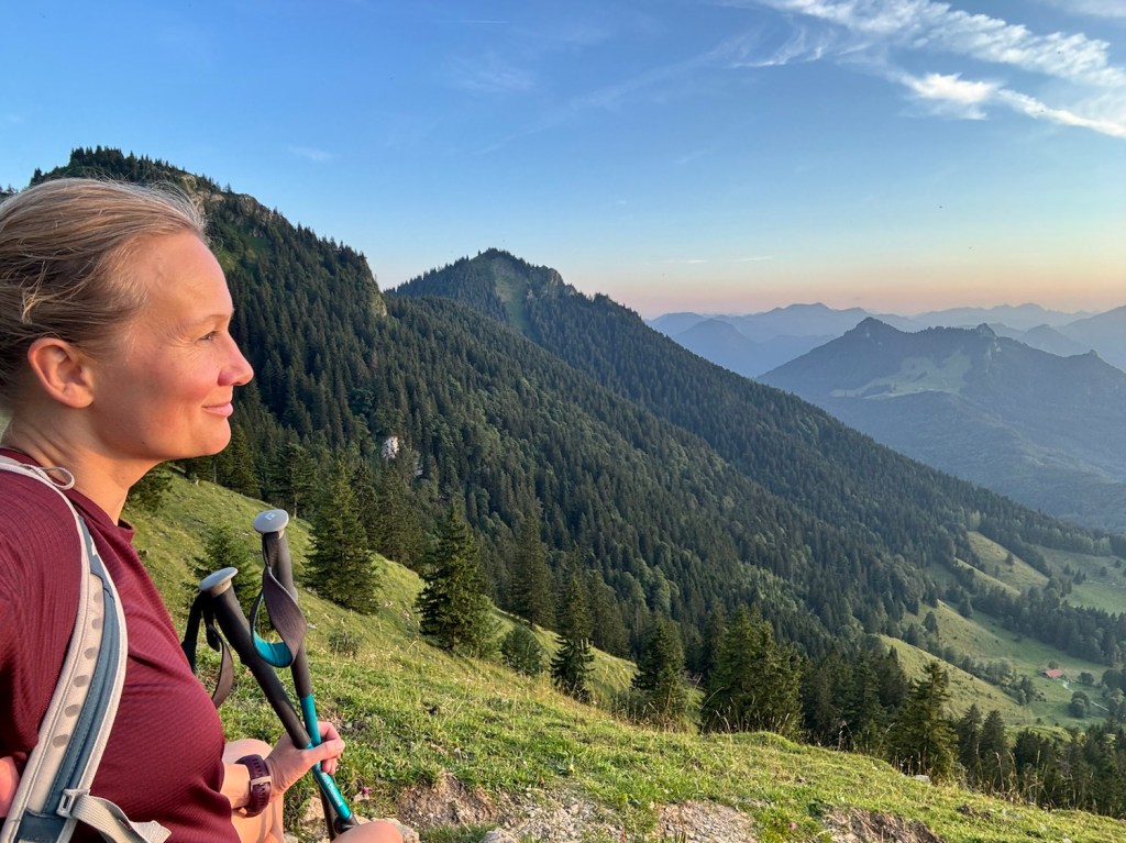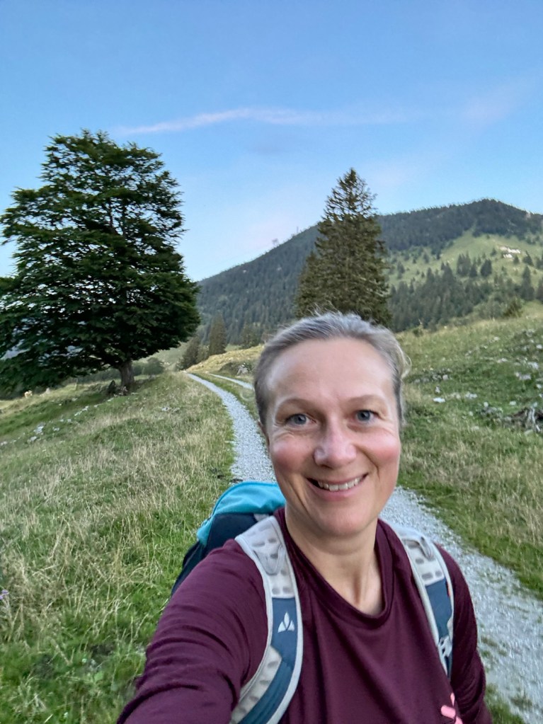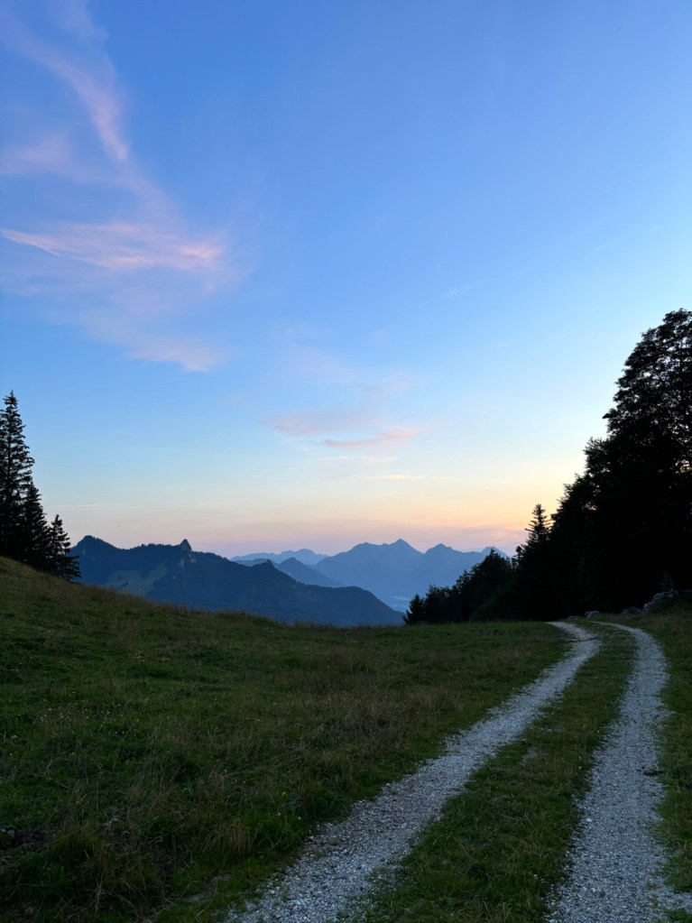 Czasem nawet jak plany się znienacka zmieniają, to uda się wykręcić jeszcze coś fajnego – i tak było tym razem. Piątunio, koniec roboty i początek urlopu, miałam iść z dziewczynami na zachód słońca na Wildalpjoch. Plany się wysypały, jak już byłam w drodze, więc zrobilam szybkie przekierowanie na Hochries – nigdy tam nie byłam, ale coś mi się kołatało, że jest kolejka i huta, więc będzie gdzie zajść na kolację. Ale, najpierw check in w Rosenheim – gdyż pogoda na sobotę piękna i nie ma co do domu wracać, lepiej spędzić czas nad jeziorem. Z hotelu szybki dojazd na parking Spatenau, przez absolutnie sielski bawarski krajobraz i o 17 ruszam w górę! Zamyślona jestem mocno, więc trasa idzie szybko. Po drodze rozważam jeszcze inne warianty, zerkając na czeską mapę, ale okoliczne Almy właśnie się zamykają, więc ostatecznie idę na Hochries. Trasa absolutnie przepiękna! Po 2h jestem u góry i zachwyca mnie widok na Wilder Kaiser 🤩