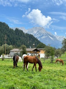 Widoki po drodze bajka – zwłaszcza, jak już się pojawi Wilder Kaiser. Samo jezioro Hintersee przepiękne i bardzo się cieszę, że wróciliśmy inną trasą, bo raz że objechaliśmy jezioro a 2, że powrót jeszcze ładniejszy! Po drodze: krówki, koniki oraz pawie. A następnym razem robimy SUP na jeziorze, idealne do tego jest 🩵