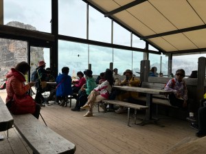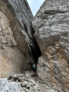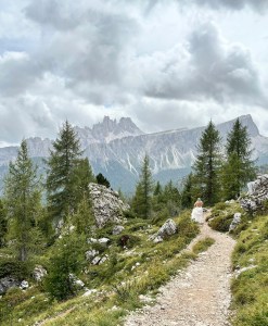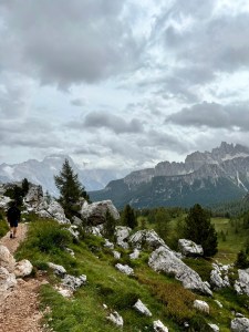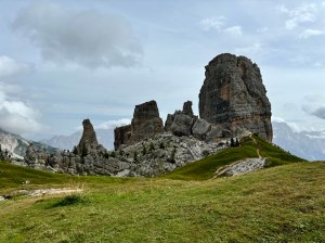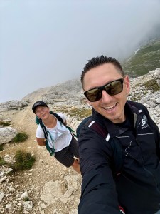 Niedzielka ze zmianą planów na ostatnią chwilę! Wczoraj umyśliłam, że w ramach chillu jedziemy na Pralongià, taka Siusia lokalna i dziś już spakowani i już prawie wychodzimy na busa, gdy wtem! Wyskoczył mi na fb post z 5 Torri i tak mi się spodobało, że nastąpiła Natychmiastowa Zmiana Planów 😅 Passo di Falzarego ino pół godzinki od nas, szkoda nie skorzystać. Tłum był, ale jeszcze udało się znaleźć miejsc na parkingu (i przytulić się do sąsiada, coby zrobić miejsce Pandzie) i cyk cyk i już siedzimy na emeryckiej kanapie na górę! Obeszliśmy wieże i bunkry (wojna jest grubo pojebana, jakby jej nie romantyzować) i jak już się zorientowałam, że to schronisko, które w górze widać, to Nuvolau czyli najstarsze działające schronisko w Dolo, to już nie było odwrotu – idziemy tam! 45min. wejście zmęczyło mnie bardziej, niż cała wczorajsza trasa na Sassonghera, dodam tylko – nie mam nic na swoje usprawiedliwienie 😂 Ale, warto było, gdyż widok zapewne przy dobrej pogodzie dech zapiera – czyli musimy wrócić, bo dziś większości można sie było jedynie li domyślać 😅 Rachu ciachu w dół i jeszcze szybki browarek w Scoiatello w tłumie skośnookich turystów (jak? czemu tu?!) i już można wracać emerycką kanapą w mżawce do auta. Jeszcze szybki pitstop w shopping center na Falzarego: magnesa brak, ale mamy 2025 kalendarz! I punktualnie 18.30 siedzimy w pizzerii pod domem, dzięki czujności M., ktory jeśli chodzi o pizzę czujny jest zawsze 😆