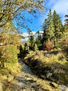 Pogoda w Monachium, jak to często bywa na jesień: toniemy we mgle. A góry ponad chmurami i tam jeszcze lato: wystarczy się wdrapać wyżej. Tym razem trzeba było wyjechać aż za Lenggries, żeby zobaczyć słońce! Przy okazji odkryłam zupełnie nową dla mnie okolicę, mianowicie tył Rofanów! Aachenkirch i Steinberg am Rofan: piękna dolinka, śliczne drewniane domki, sielsko na maxa!